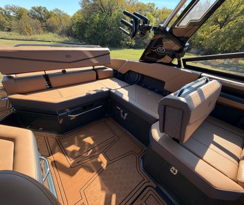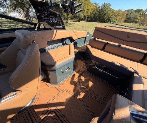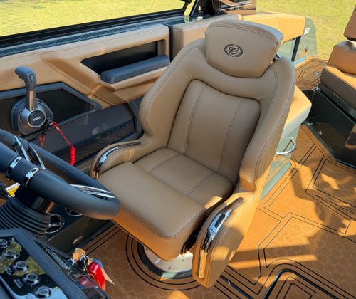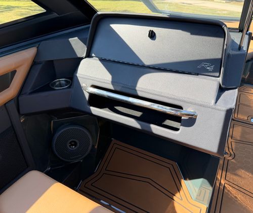 Step aboard the Cobalt R4 Surf and discover a host of premium features designed to enhance every moment on the water. The aft facing rumble seat provides a comfortable spot to relax and take in the scenery, while the aft shade sail in sleek black offers protection from the sun without sacrificing style. The air compressor with holder is perfect for inflating water toys or equipment, adding convenience to your adventures.A battery maintainer/charger (110V) ensures your boat is always ready to go, while bow filler cushions create a versatile lounging area up front. The rear-facing camera adds an extra layer of safety and convenience, making docking and maneuvering a breeze. The caramel, carbon, and ebony interior exudes sophistication, complemented by black satin Cobalt letters for a touch of elegance.Enjoy meals and snacks on the water with the solid teak dinette table, complete with a cockpit receptacle for easy setup. Stainless steel docking lights not only enhance visibility but also add a polished look to the boat’s exterior. Every detail of the R4 Surf is crafted with comfort, style, and functionality in mind, ensuring you get the most out of your time on the water.