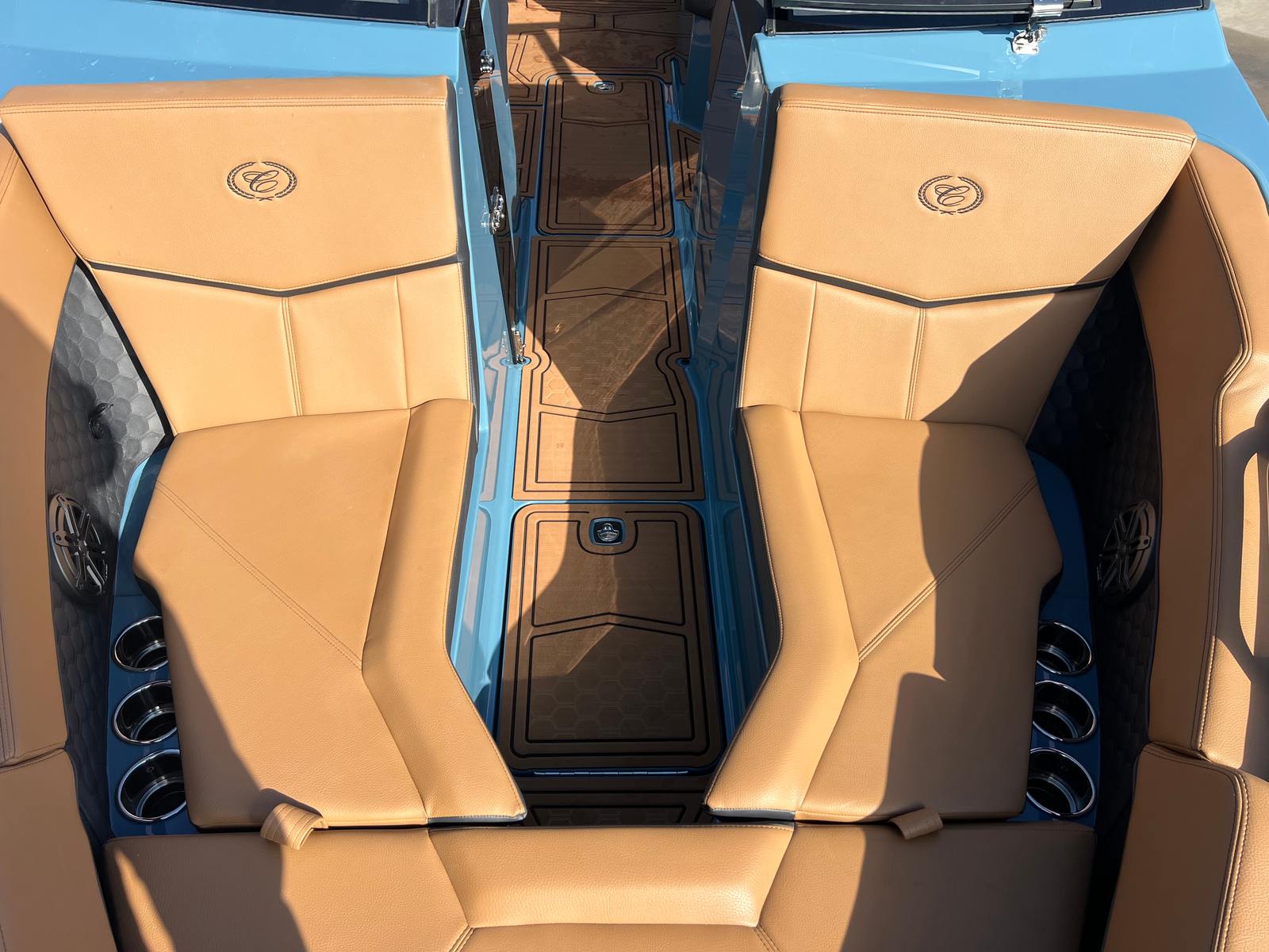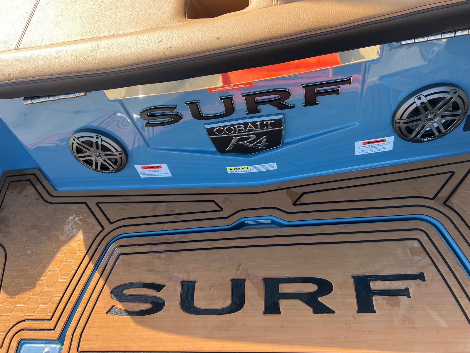 The 2026 Cobalt R4 Surf is packed with special features that set it apart from other boats in its class. The Bayside Blue upper surf accent and surf mid hull side, paired with the rich ebony accent stripe and hull bottom, give this boat a distinctive and eye-catching appearance. The swim platform extension in rich ebony provides extra space for relaxing, gearing up for water sports, or simply enjoying the view. Inside, the caramel, carbon, and ebony interior creates a welcoming and upscale atmosphere for you and your guests.The aft-facing rumble seat is a standout feature, offering a comfortable spot to watch the action behind the boat or to simply relax and soak up the sun. The battery maintainer/charger ensures your boat is always ready for your next adventure, while the Cobalt letters in black satin add a touch of elegance and brand prestige.