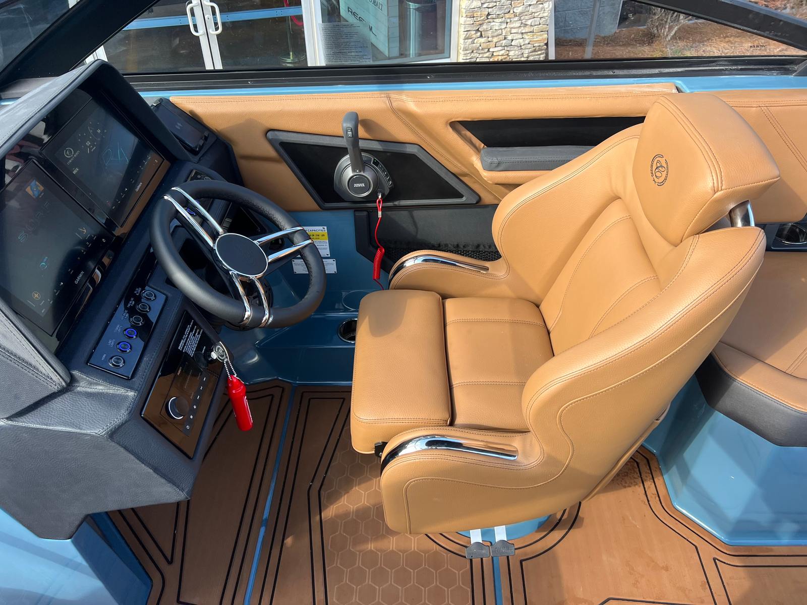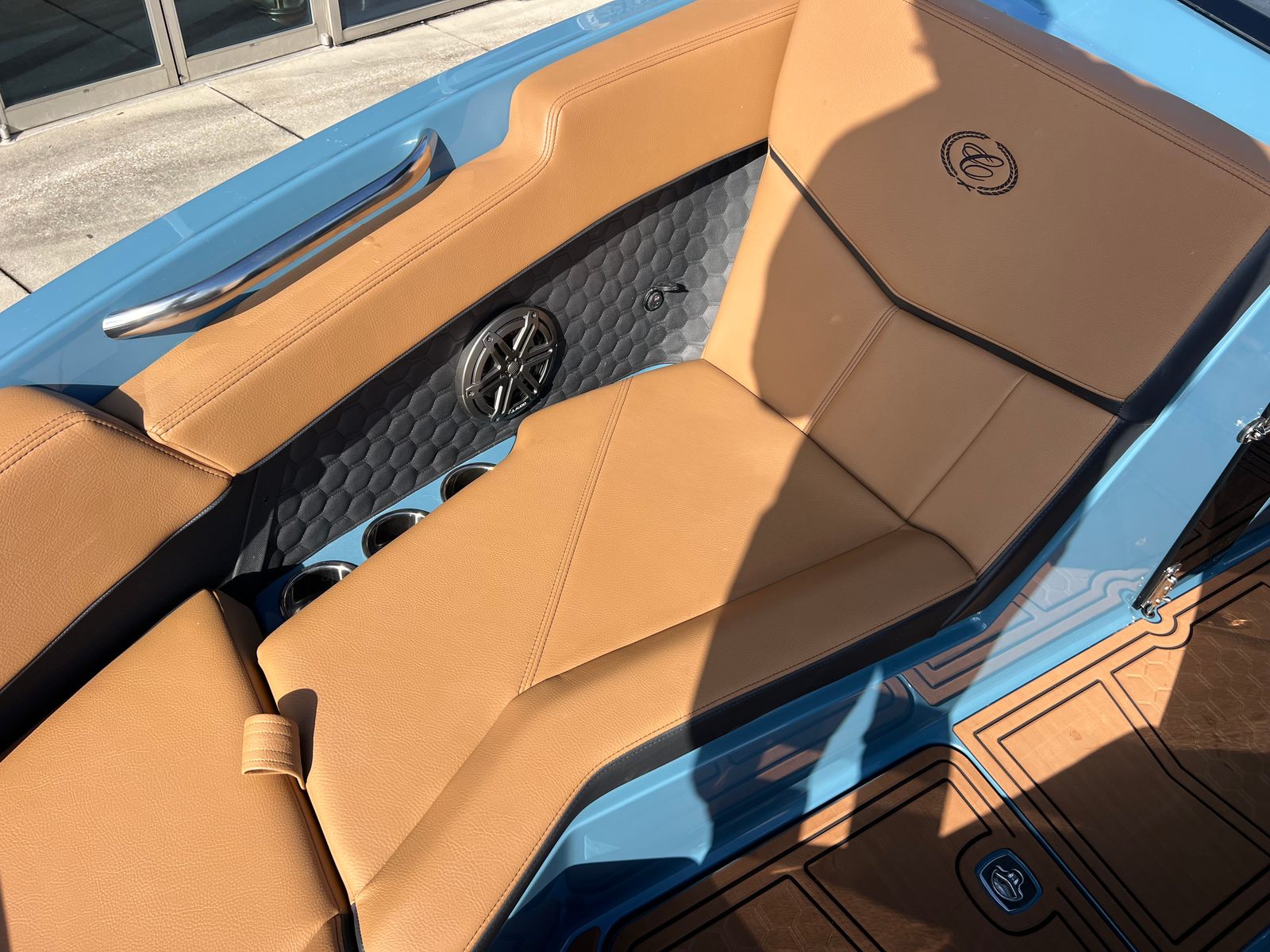 The 2026 Cobalt R4 Surf is a 24.25-foot bowrider that stands out with its sleek lines and modern design. As a brand-new model, it showcases the latest innovations in boating technology and style. The R4 Surf’s Bayside Blue upper surf accent and surf mid hull side, complemented by a rich ebony accent stripe and hull bottom, create a striking visual presence on the water. The swim platform extension in rich ebony further enhances both the look and functionality of this remarkable vessel. Step aboard and you’ll immediately notice the sophisticated interior, featuring a harmonious blend of caramel, carbon, and ebony tones, ensuring every journey is as comfortable as it is stylish.