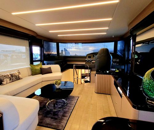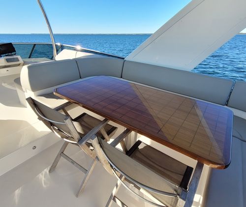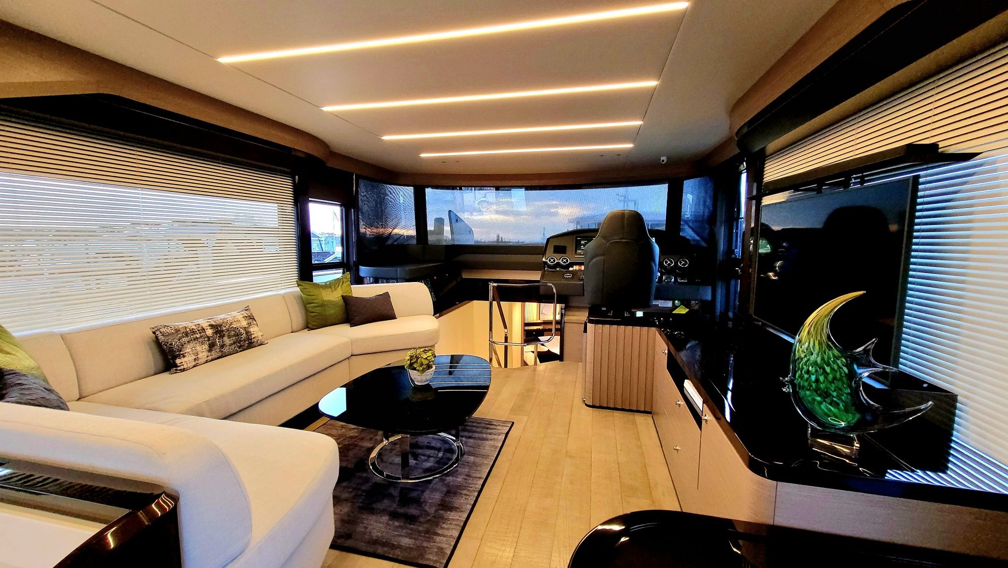 Hardtop on Flybridge with microfiber coated ceiling, elec opening and lighting