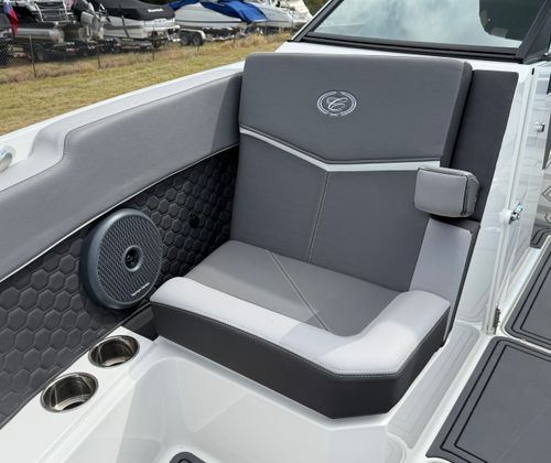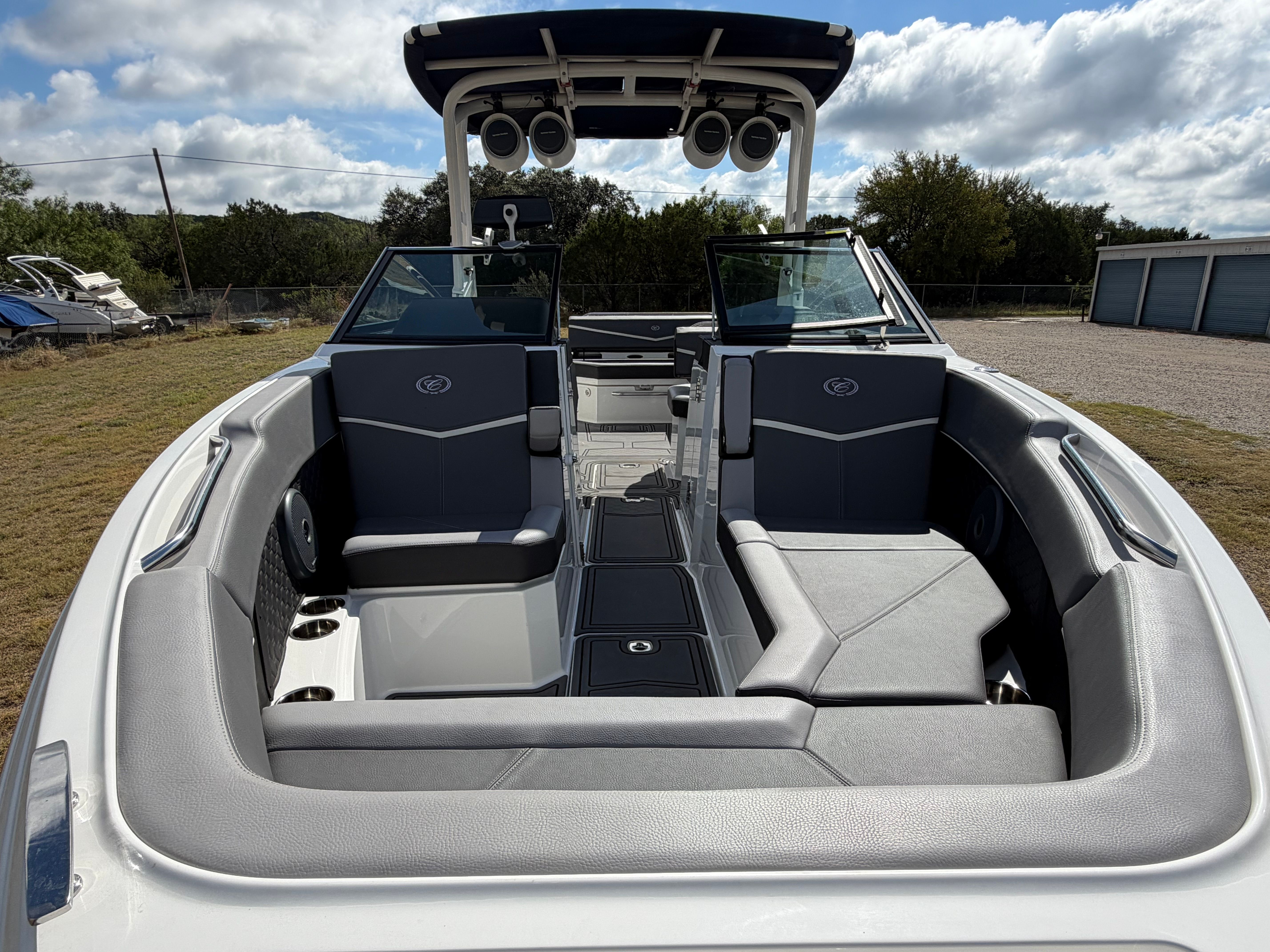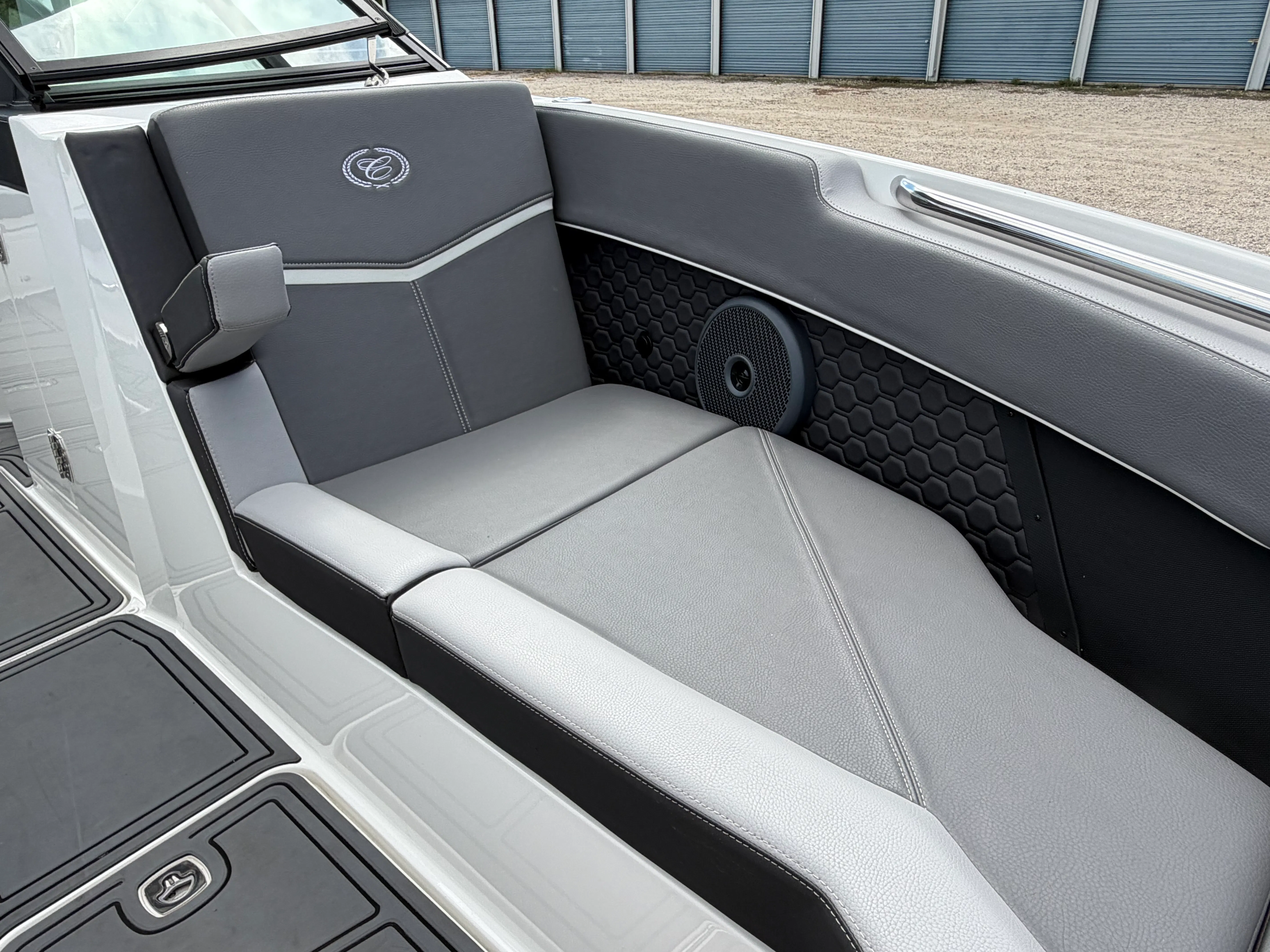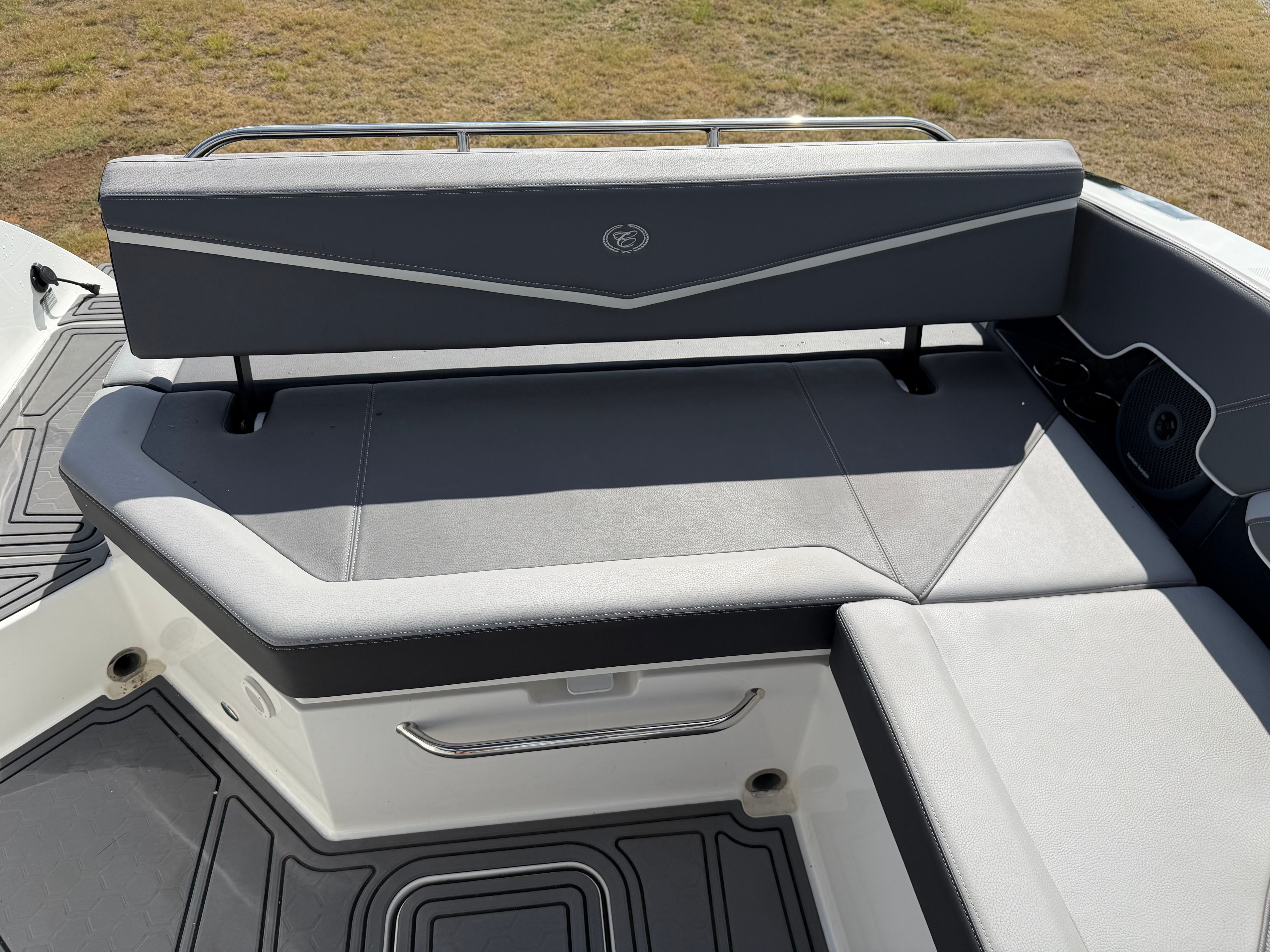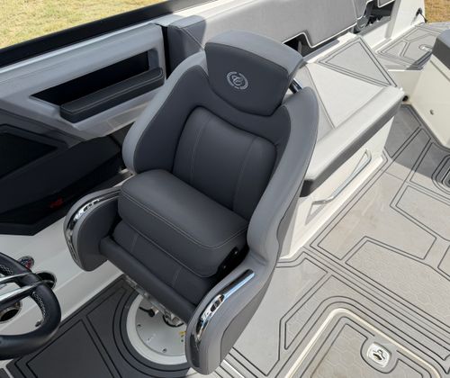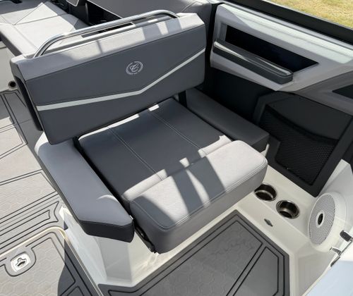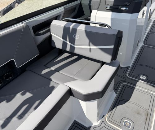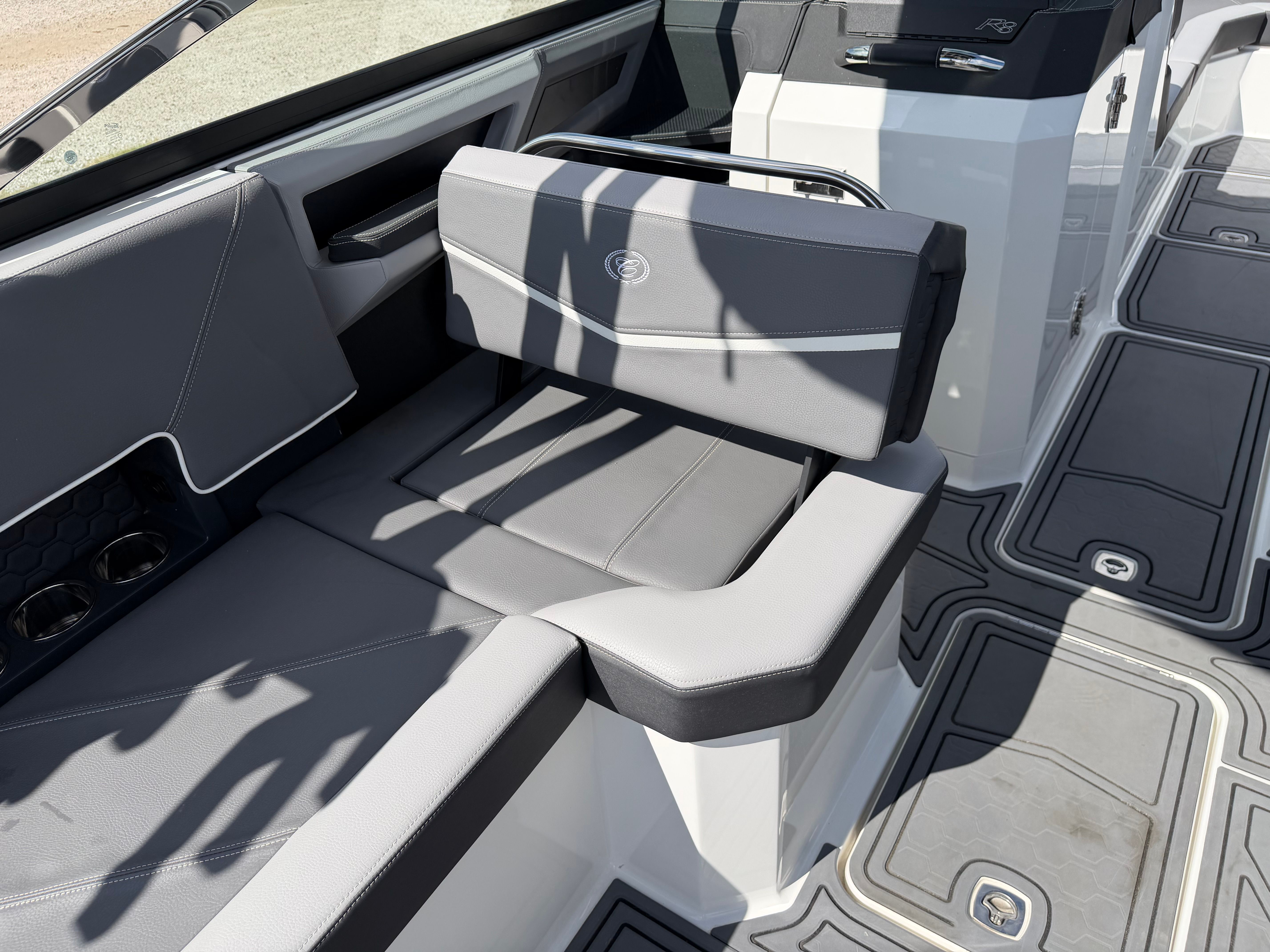 The Cobalt R8 Surf is packed with features that enhance both its functionality and enjoyment. As a bowrider, it offers an open and inviting layout, perfect for socializing and soaking up the sun. The spacious bow seating area provides a comfortable spot for passengers to relax, while the cockpit is designed for both convenience and luxury. High-quality materials and attention to detail are evident throughout, reflecting Cobalt’s commitment to craftsmanship and durability.This model’s surf capabilities set it apart from other bowriders. The R8 Surf is engineered for water sports enthusiasts, offering a smooth and customizable wake for surfing, wakeboarding, and more. The intuitive controls make it easy to adjust the wake to suit different skill levels, ensuring everyone can have a great time on the water. The boat’s length of just over 27 feet provides ample space for gear, coolers, and all the essentials needed for a day of fun.