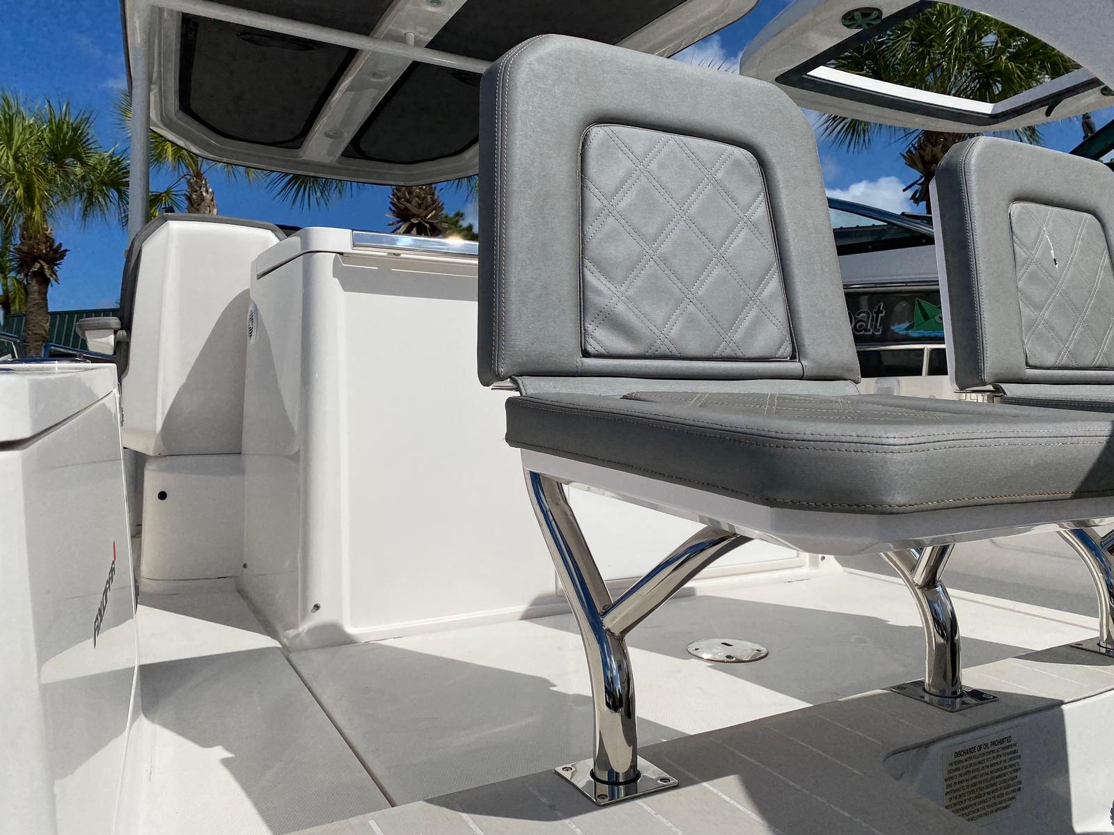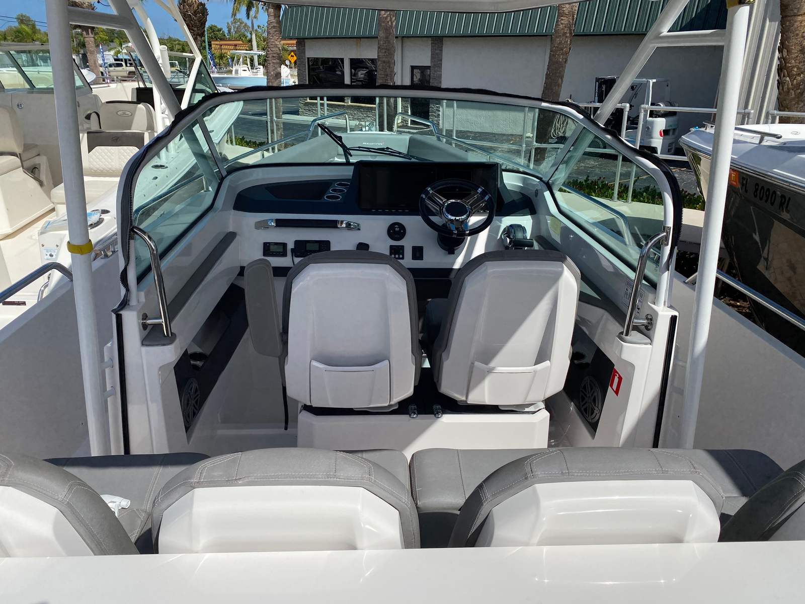 This Axopar boat for sale is designed with both functionality and leisure in mind. The 28.75-foot length provides ample space for socializing, relaxing, and enjoying the water. The T-Top design offers shade and protection from the sun, allowing you to stay comfortable during long days on the water. The layout is thoughtfully arranged to maximize seating and deck space, making it easy to move around and enjoy every inch of the cruiser. The high-quality materials and craftsmanship are evident throughout, ensuring durability and a premium feel.The Axopar 28 T-Top’s special features enhance the overall boating experience. The T-Top provides shelter and adds a sporty look, while the spacious deck allows for flexible seating arrangements and plenty of room for entertaining guests. The ergonomic helm station is designed for ease of use, giving the captain full control and excellent visibility. With its modern design and practical features, this cruiser boat for sale is ready to meet the demands of any adventure.