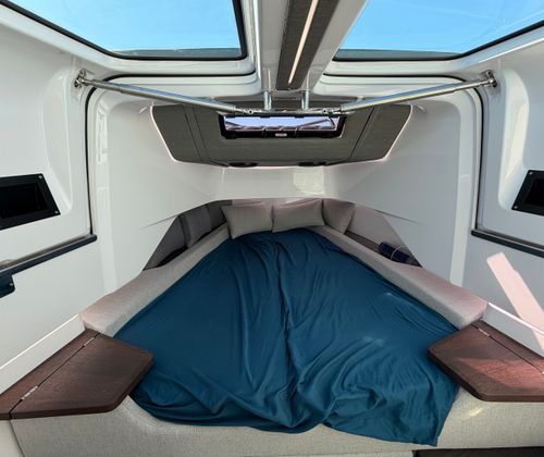 The Axopar 37 XC is packed with features designed to enhance your time on the water. Its spacious center console layout provides easy access around the deck, allowing for seamless movement whether you are fishing, entertaining, or simply relaxing. The enclosed helm offers protection from the elements, ensuring comfort during long days on the water or unexpected weather changes. The ergonomic helm station is thoughtfully designed for maximum visibility and control, putting all essential functions at your fingertips.Generous seating arrangements throughout the boat create inviting spaces for socializing and unwinding. The expansive bow area is perfect for sunbathing or enjoying panoramic views, while the aft deck offers plenty of room for fishing or setting up water sports equipment. Storage compartments are strategically placed to keep your gear organized and out of the way, maximizing usable space without sacrificing convenience.