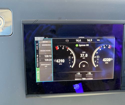 Power and precision are at the heart of the Axopar 37 XC. Equipped with twin engines delivering a combined 600 horsepower, this center console boat offers thrilling acceleration and impressive top speeds. With only 100 engine hours, the motors are in excellent condition, providing reliable performance for many adventures to come. The dual-engine setup ensures smooth handling and responsive maneuverability, making docking and navigating tight spaces a breeze. Whether you are chasing the horizon or exploring hidden coves, the Axopar 37 XC delivers a dynamic and enjoyable ride every time you take the helm.