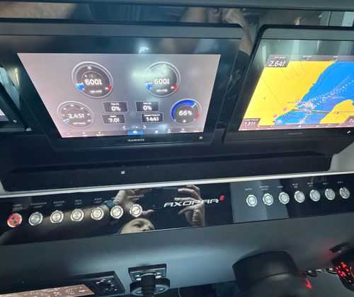 This stunning Axopar 37XC Cross Cabin (BRABUS Trim) represents the pinnacle of all-weather performance, sporty design, and exceptional comfort. With only 100 hours and fresh service recently completed, this vessel is turn-key and loaded with premium upgrades including dual A/C units, full Garmin electronics, night vision, and factory trailer.
