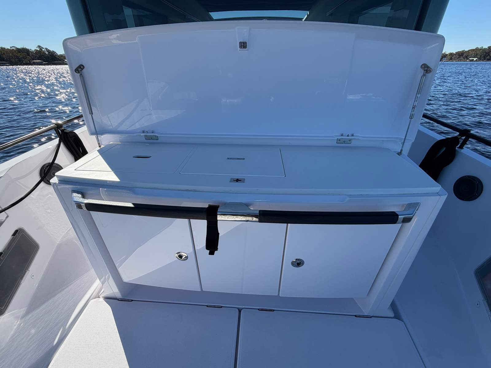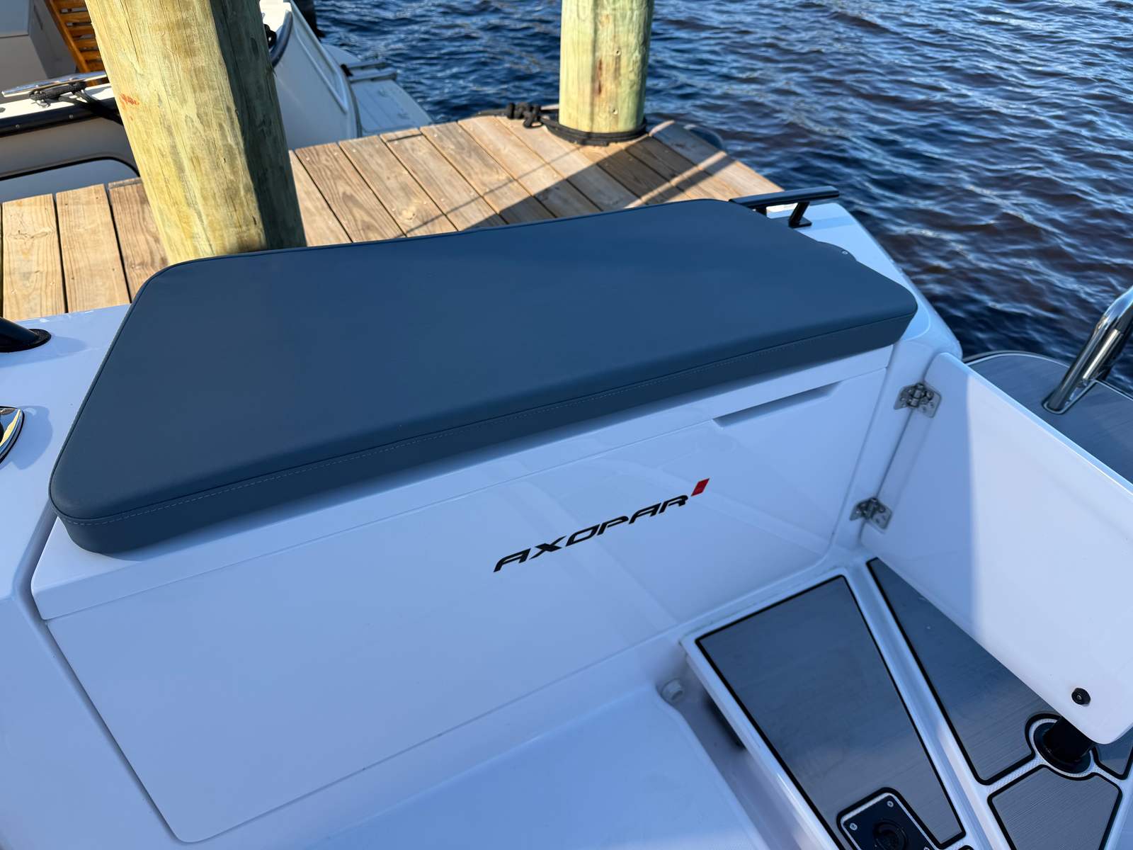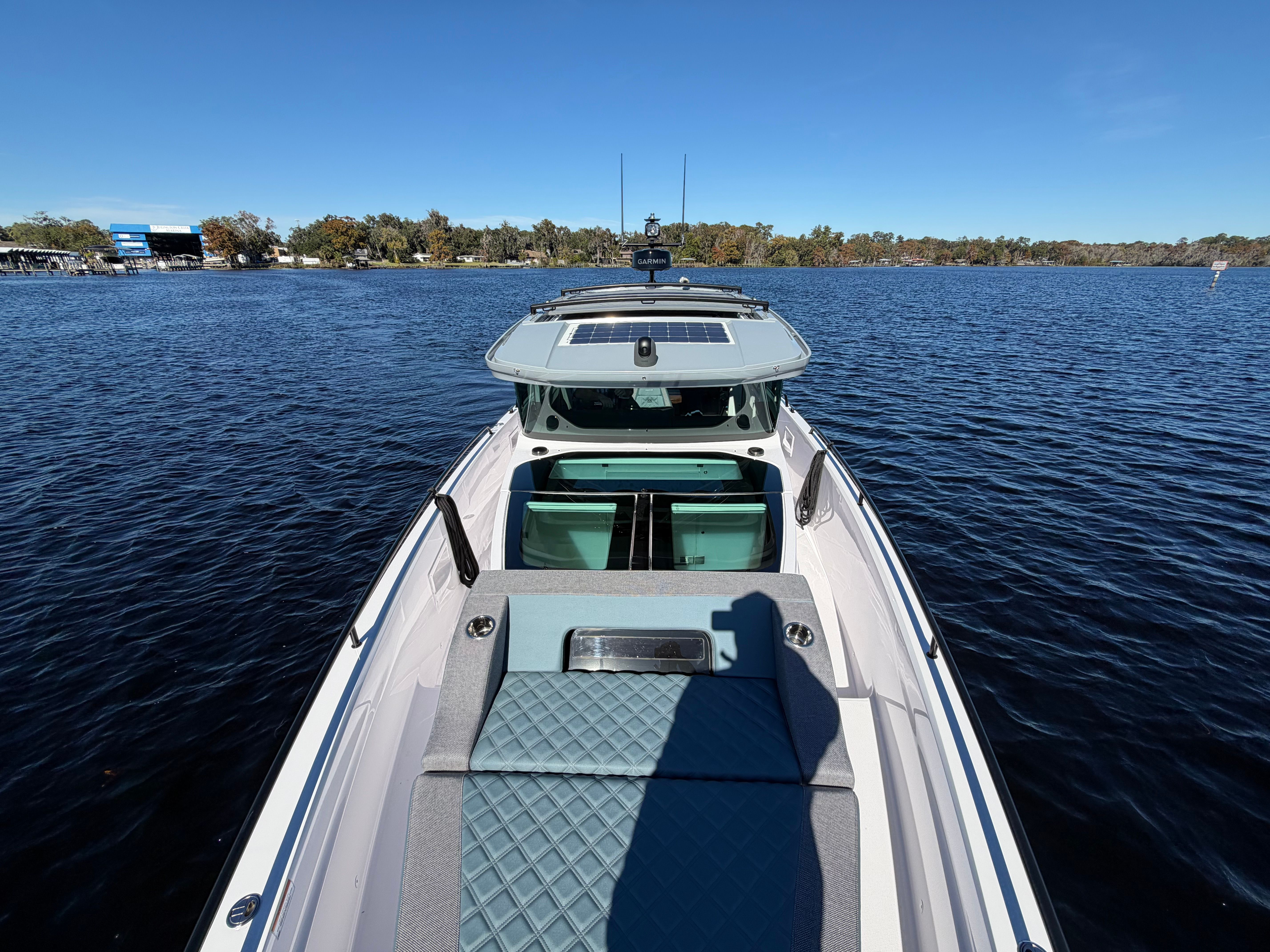 This boat has lived on a lift in the St. Johns River predominantly in fresh and brackish water. This Axopar 37XC has been meticulously maintained
