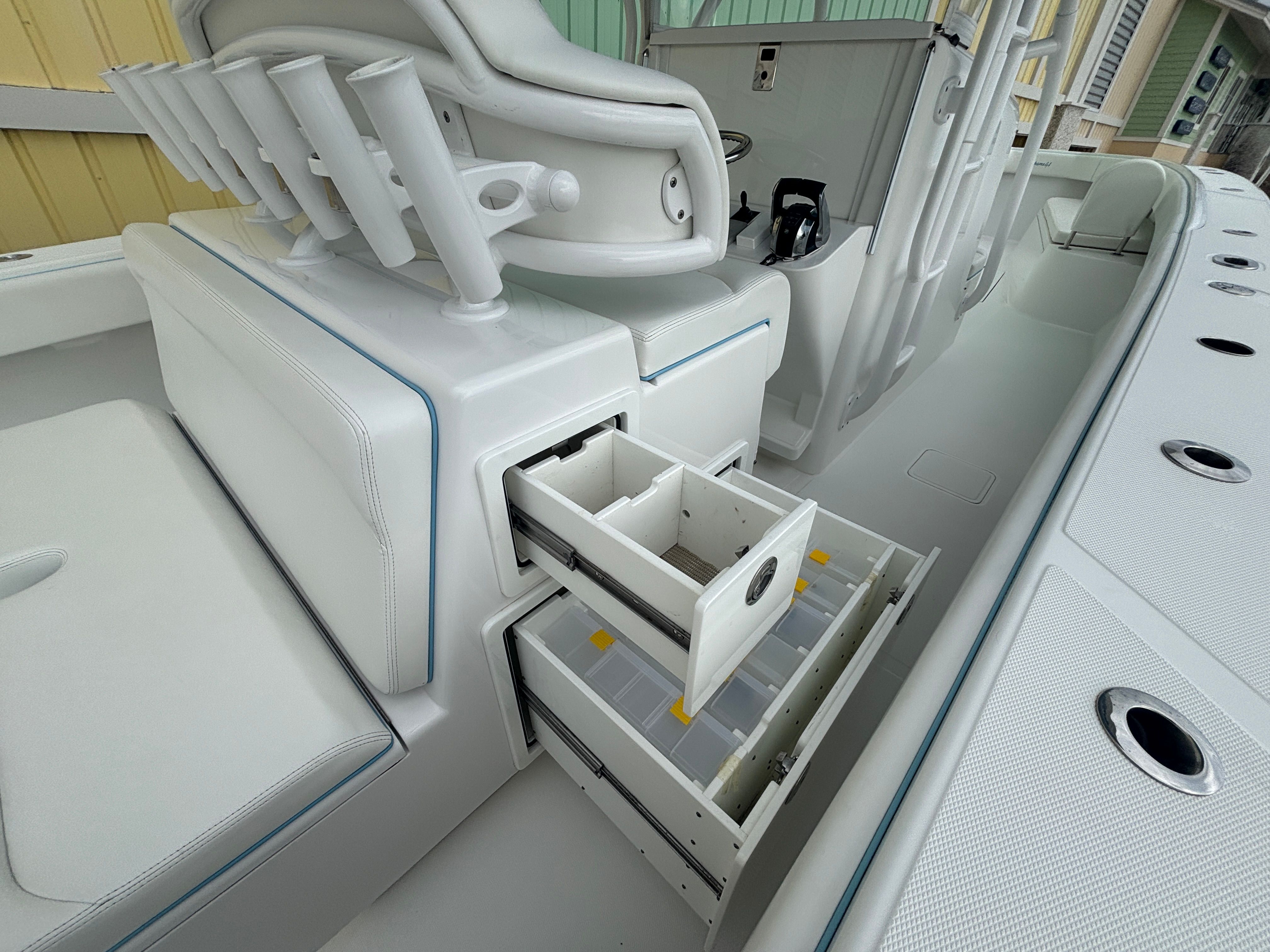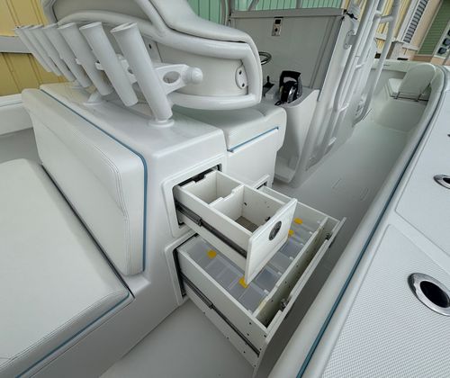 The Bahama 41 Center Console is engineered to provide a superior boating experience, with features that cater to both leisure and adventure. Its spacious deck layout offers plenty of room for guests to move comfortably, whether you’re hosting a social gathering or preparing for a day of fishing. The Center Console design maximizes visibility and accessibility, allowing for easy navigation and quick access to all areas of the boat. With its generous length, the Bahama 41 provides ample seating and open space, ensuring everyone onboard can relax and enjoy the ride.Special features of the Bahama 41 include its advanced quad-engine setup, which not only enhances performance but also adds a layer of safety and redundancy for longer journeys. The boat’s construction reflects Bahama’s commitment to durability and quality, with materials and finishes that withstand the rigors of saltwater environments. Every detail, from the helm station to the storage compartments, is thoughtfully designed to enhance convenience and enjoyment on the water.