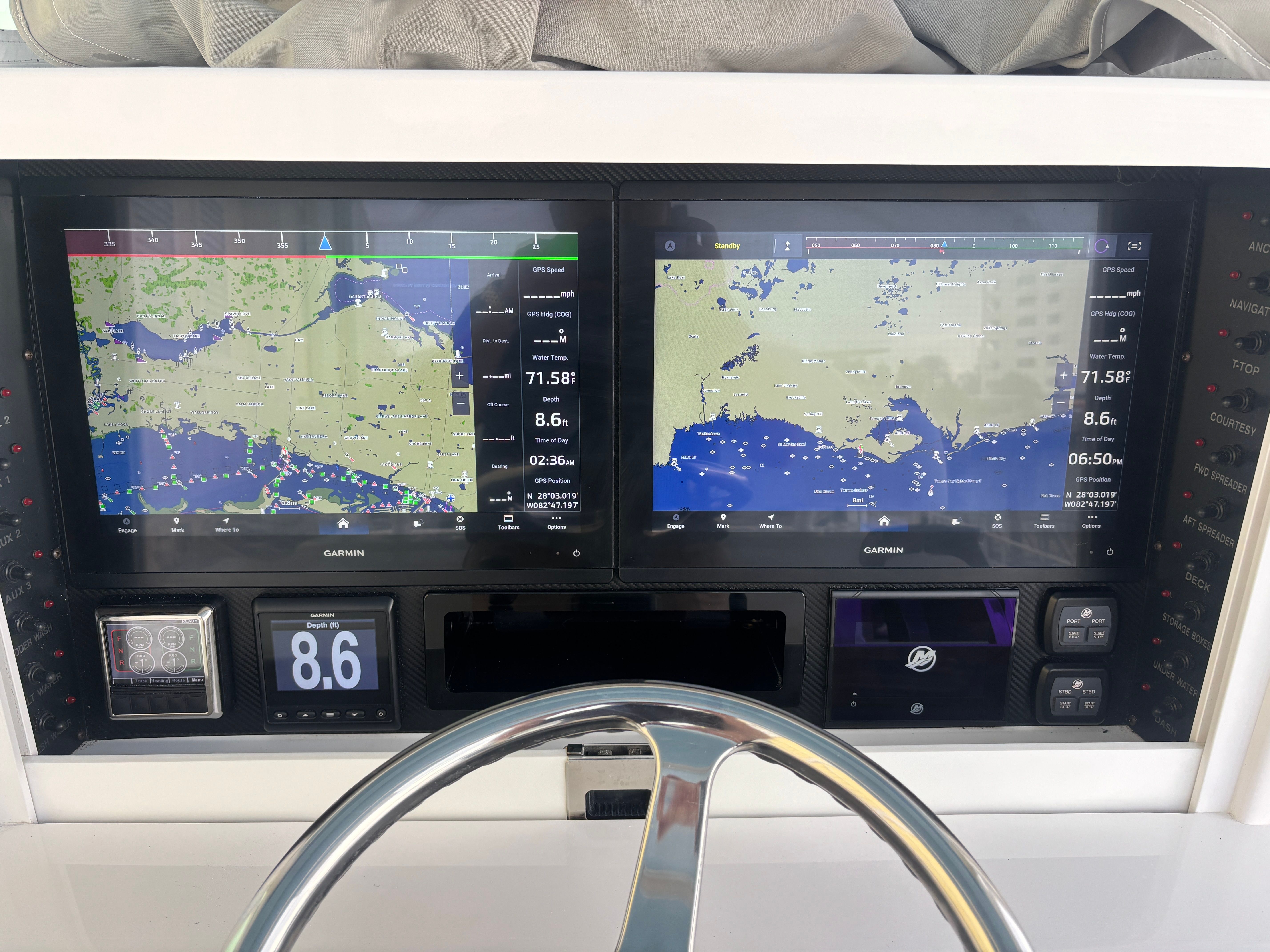 - Dual Rule™ 2,000 GPH bilge pumps with Ultra Safety Systems™ automatic switches with manual overrides