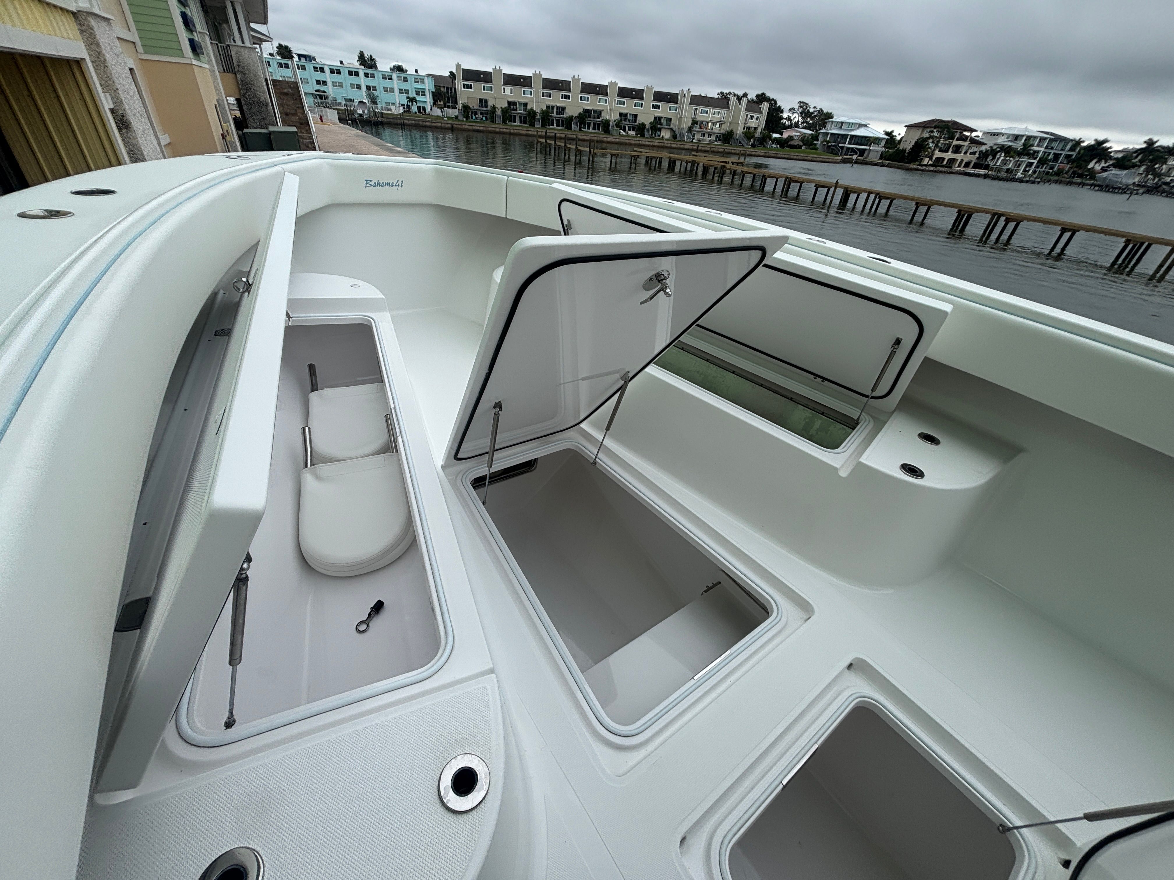 In addition to its recreational appeal, the Bahama 41 Center Console offers a range of practical benefits that make ownership a pleasure. The boat’s generous storage options allow you to stow gear, supplies, and personal items securely, keeping the deck uncluttered and organized. Its design facilitates easy docking and maneuvering, even in busy marinas or tight spaces. The quad-engine setup not only provides impressive speed but also contributes to fuel efficiency, as you can optimize engine use based on your cruising needs.The Bahama 41’s robust construction and thoughtful layout make it a reliable companion for extended trips, whether you’re exploring new coastlines or heading out for a weekend getaway. Its versatility means you can adapt the boat to suit a variety of activities, from fishing expeditions to leisurely cruises. With this Center Console boat for sale, you’ll enjoy the freedom to pursue your boating passions with confidence and ease.
