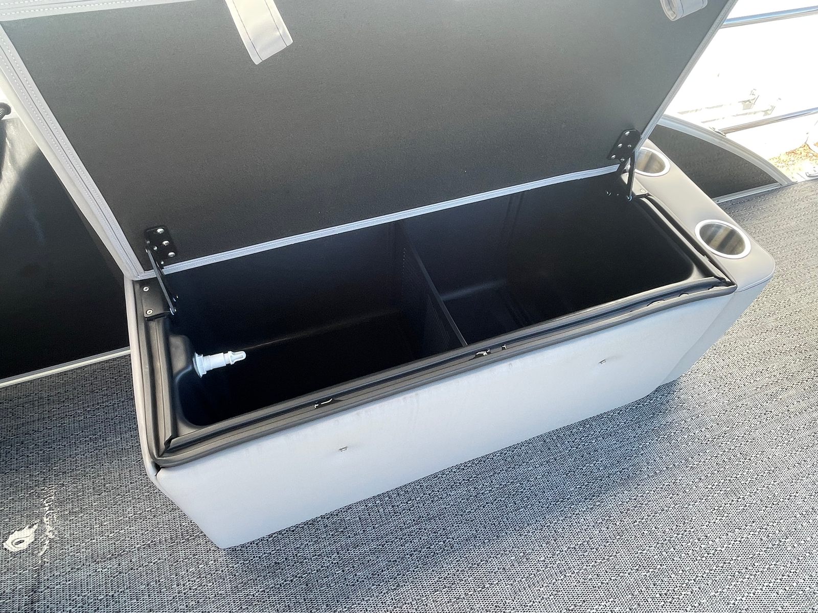 The Barletta Aria A22CC is as practical as it is beautiful. Its spacious layout provides plenty of room for gear, coolers, and water toys, making it easy to prepare for a day of adventure. The sturdy construction and triple toon design offer excellent stability, making docking and maneuvering straightforward, even for less experienced boaters. The efficient Mercury engine is designed for fuel economy, allowing you to spend more time on the water and less time at the pump.Maintenance is simplified with high-quality materials and thoughtful engineering, so you can focus on enjoying your boat rather than worrying about upkeep. The combination of comfort, performance, and practicality makes the Aria A22CC a smart investment for anyone seeking a versatile and reliable pontoon boat.