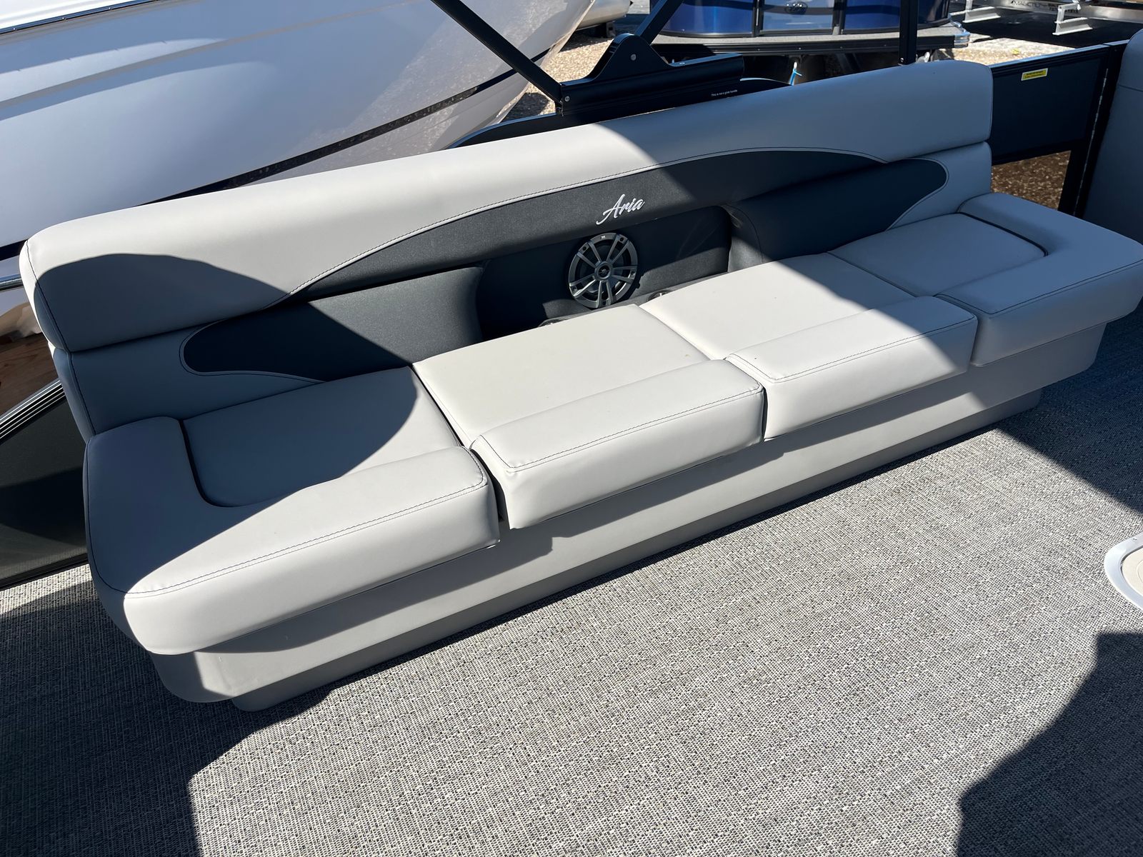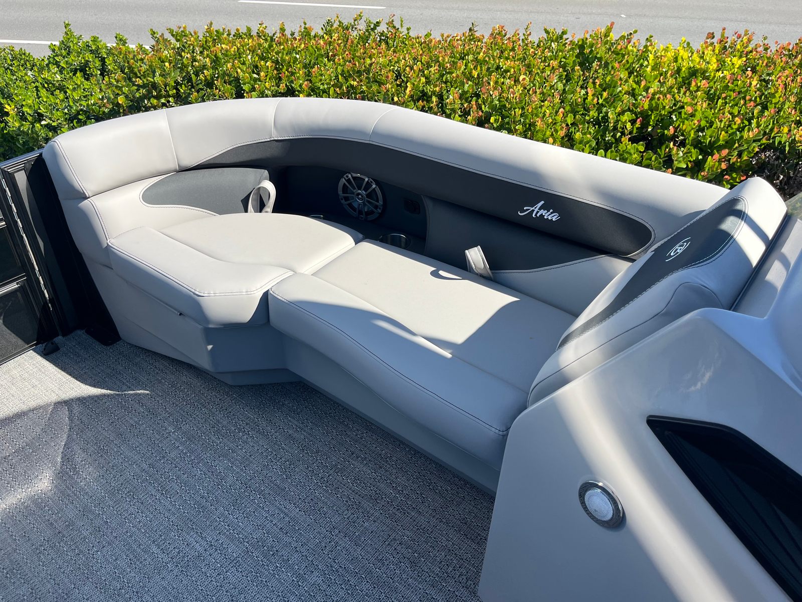 The Barletta Aria A22CC is packed with features that elevate your boating experience. Its spacious deck layout is designed for maximum comfort and social interaction, with plush seating and ample room to move about. The pontoon’s innovative design ensures stability and safety, making it an ideal choice for families and groups of all ages. The Aria A22CC’s construction utilizes high-quality materials and advanced engineering, providing durability and longevity for years of enjoyment.Special features of the Barletta Aria A22CC include a contemporary helm station, ergonomic seating arrangements, and versatile deck space that can be customized for lounging, dining, or entertaining. The pontoon’s thoughtful design allows for easy access to all areas, ensuring everyone on board can relax and enjoy the ride. With its modern aesthetic and attention to detail, this Barletta boat for sale stands out as a top choice for discerning boaters.