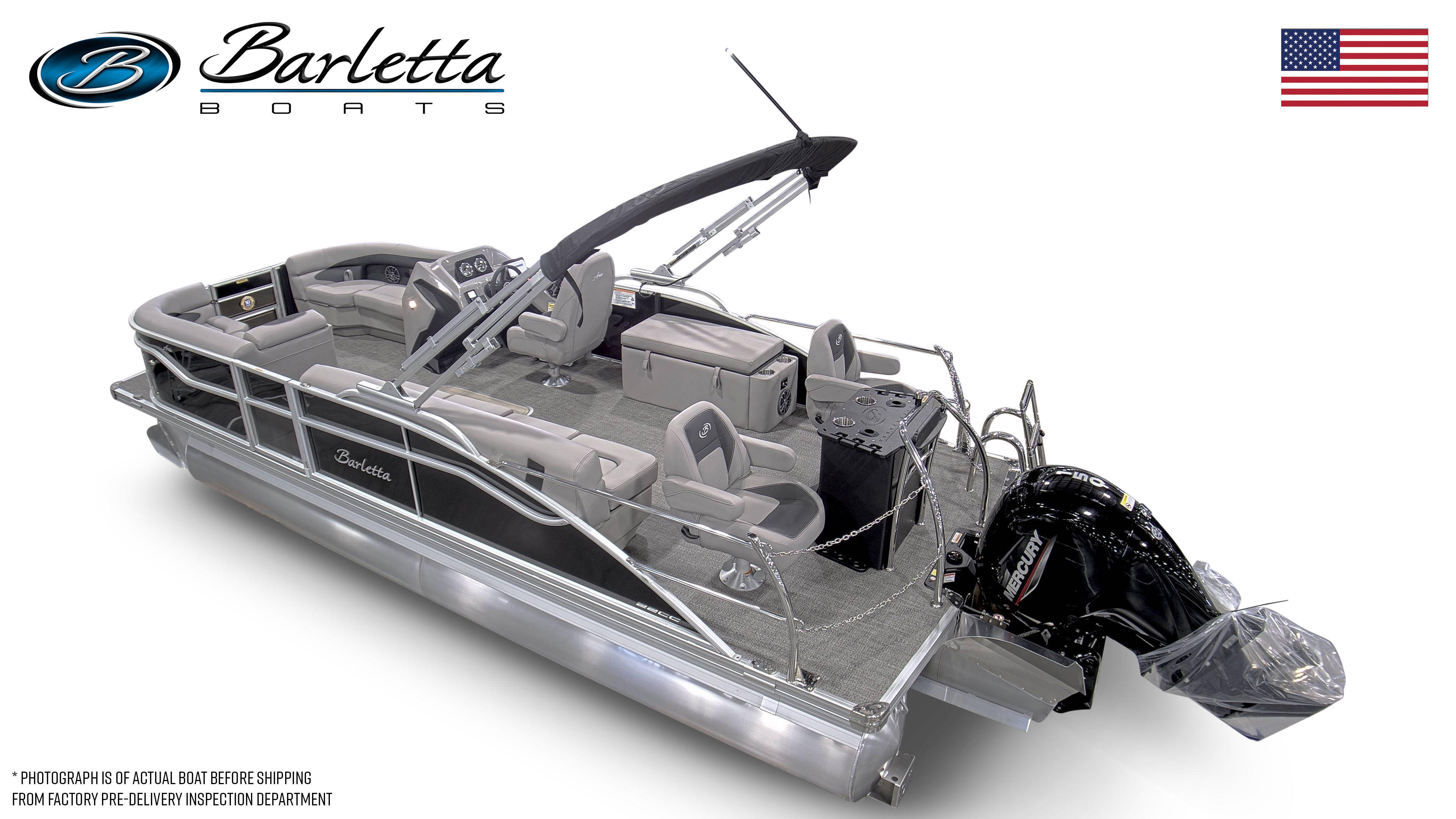 In summary, the 2026 Barletta Aria A22CC is a standout pontoon boat for sale that combines style, performance, and versatility in one impressive package. With its powerful Mercury 150L Four Stroke engine, Triple Toon Package Aria, and a host of special features—including Black Diamond Railskin, Tempest Gray furniture, Amore Gray flooring, onboard battery charger, stainless steel flag pole with American flag, and in-floor midship storage with rod storage—this Barletta boat for sale is designed to deliver unforgettable experiences on the water.Whether you are planning family outings, fishing trips, or social gatherings, the Barletta Aria A22CC offers the comfort, convenience, and excitement you desire. Do not miss your chance to own this exceptional pontoon boat. Contact your local dealer today to learn more and start your next adventure with the Barletta Aria A22CC!