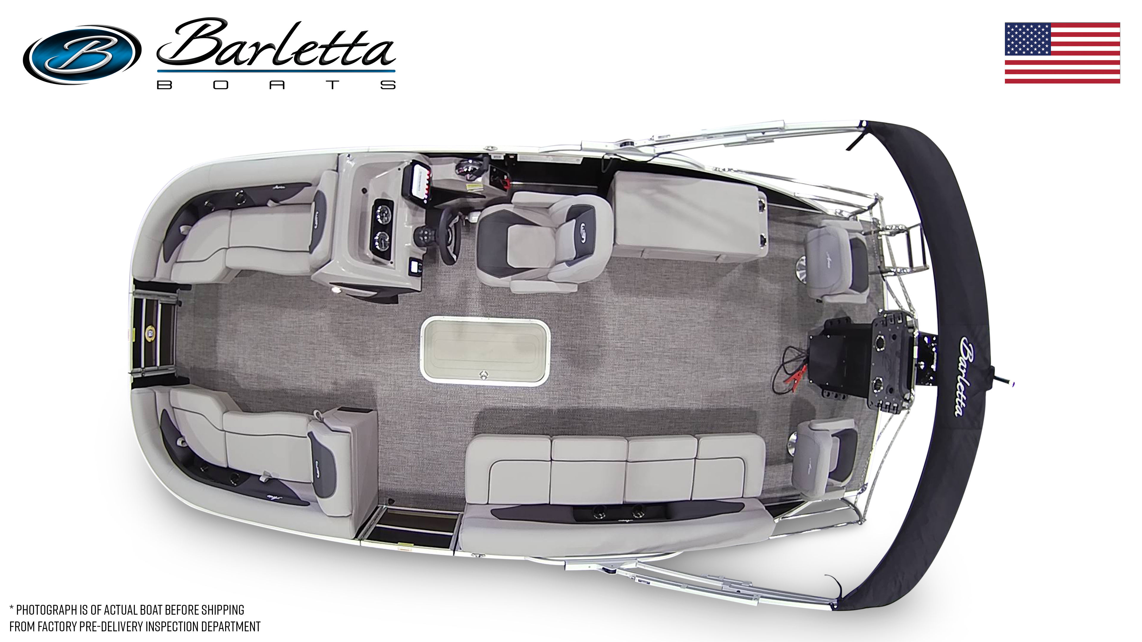 The Barletta Aria A22CC is packed with special features that elevate your boating experience. The striking Black Diamond Railskin gives the boat a modern, sophisticated look, while the Tempest Gray furniture provides a comfortable and inviting space for you and your guests. The Amore Gray flooring is not only visually appealing but also easy to maintain, ensuring your boat stays looking pristine trip after trip.For those who appreciate convenience and functionality, the onboard battery charger keeps your power supply ready for action, and the in-floor midship storage with rod storage offers ample space for all your gear. The stainless steel flag pole with an American flag adds a patriotic touch, perfect for holiday weekends and special occasions. The Triple Toon Package Aria delivers enhanced buoyancy and stability, making this pontoon boat a top choice for families and groups who value safety and comfort.