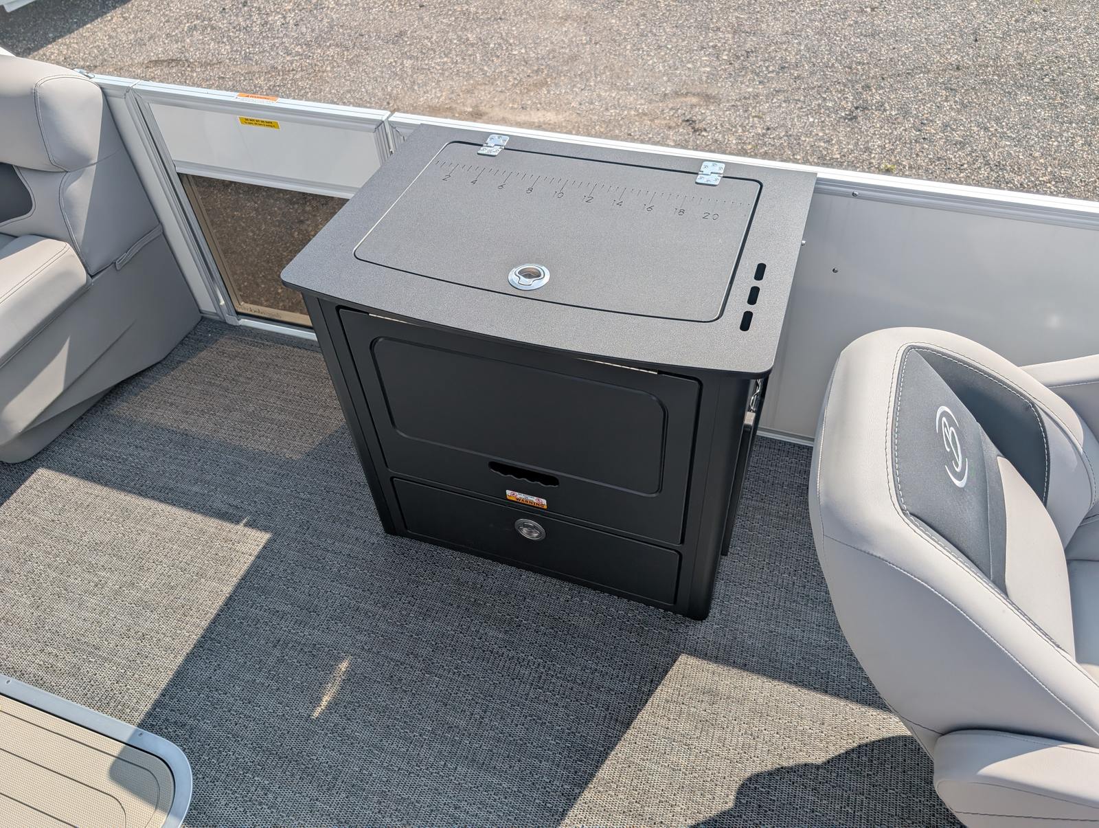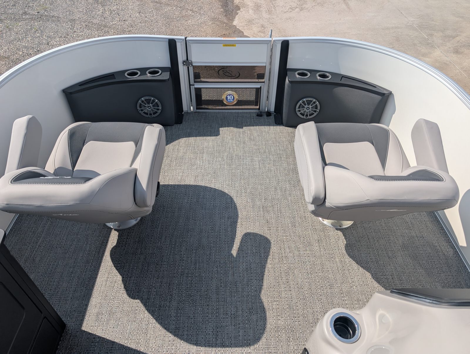 Owning the Barletta Aria A22F means embracing a lifestyle of fun, relaxation, and social connection. The spacious deck layout provides ample room for family and friends to gather, lounge, and enjoy the sunshine. The plush Tempest Gray furniture invites you to sit back and unwind, while the open floor plan encourages easy movement and interaction.The Triple Toon Package not only enhances performance but also contributes to a smoother, more stable ride, reducing the impact of waves and making it comfortable for passengers of all ages. The in-floor midship storage ensures that your gear is always within reach yet out of the way, allowing you to focus on making memories rather than managing clutter.With the Simrad 7 G07 XSE at the helm, navigation becomes effortless, whether you’re exploring new waters or returning to your favorite spots. The combination of advanced technology, premium materials, and thoughtful design makes every outing on the Aria A22F a truly enjoyable experience.