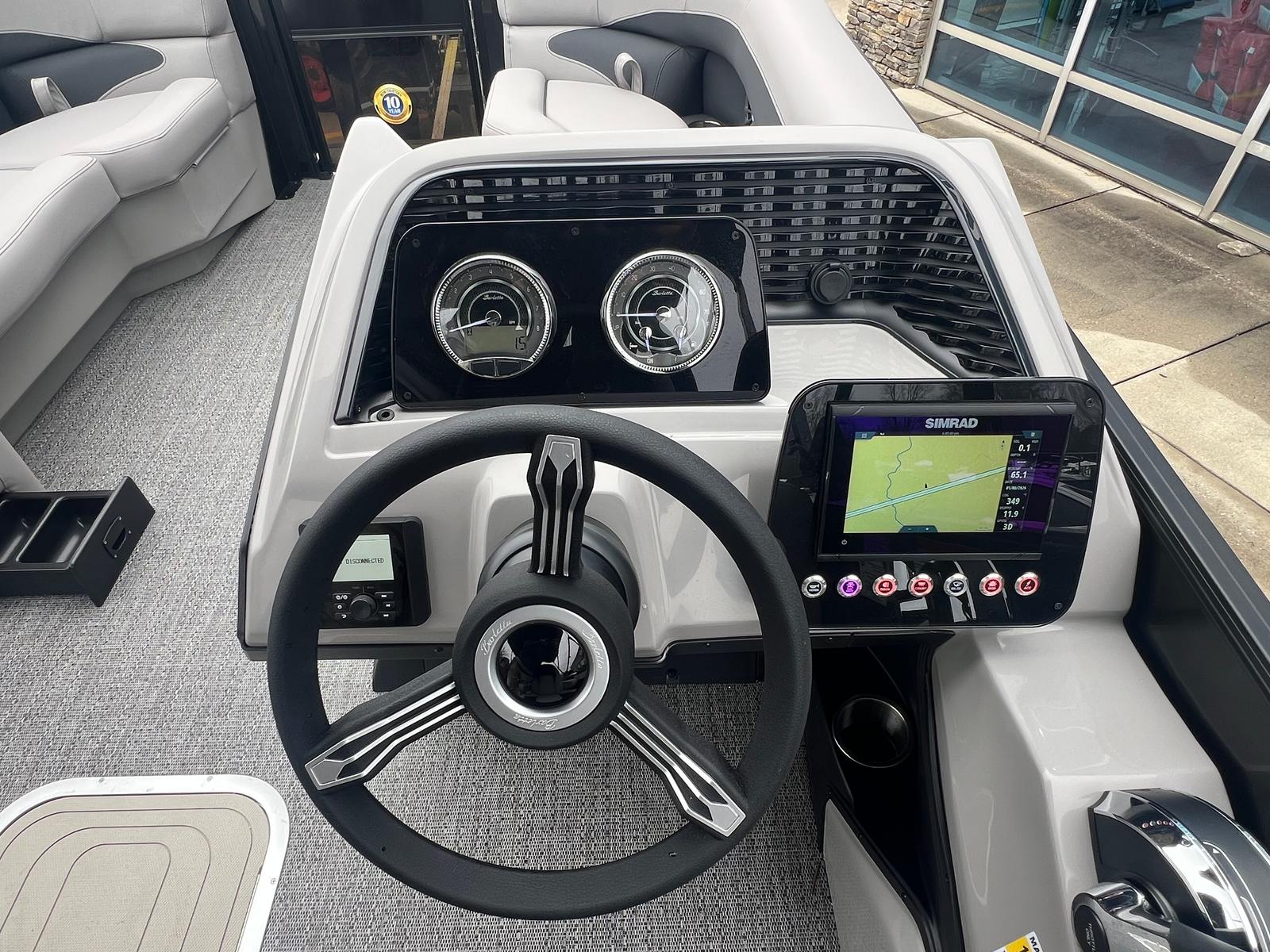 Powering the Barletta Aria A22QC-Platinum is a robust Mercury (M) 200L FourStroke engine, delivering an impressive 200 horsepower. This single-engine setup provides smooth acceleration, responsive handling, and reliable performance, whether you are cruising across the lake or towing water toys for a day of fun. The Mercury - Mechanical w/Power Assist ensures effortless steering and maneuverability, making docking and navigating tight spaces a breeze. With the Rig Engine w/ Stainless Steel Prop, you can expect enhanced durability and optimal efficiency, allowing you to enjoy more time on the water with less worry.