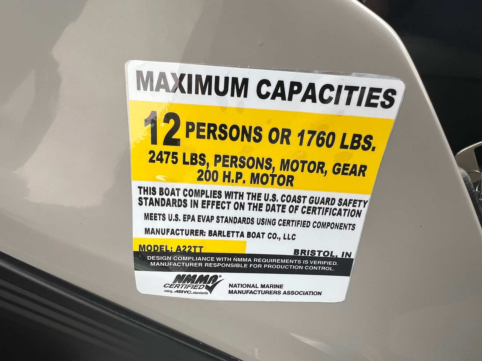 The Barletta Aria A22QC-Platinum comes loaded with special features that elevate your boating experience. The Railskin Color Aria in Black Diamond, paired with the Blackout Package Aria, gives this pontoon a bold and sophisticated appearance that is sure to turn heads. Inside, the Tempest Gray furniture offers both style and comfort, creating an inviting space for you and your guests to relax. The Amore Gray flooring is not only visually appealing but also practical, providing a durable and easy-to-clean surface for all your adventures.The Triple Toon Package Aria enhances stability and performance, ensuring a smooth and enjoyable ride even in choppier waters. The on-board battery charger for a single battery keeps your power needs covered, so you can focus on making memories. A stainless steel flag pole with an American flag adds a patriotic touch, making this pontoon boat a true standout on any waterway.