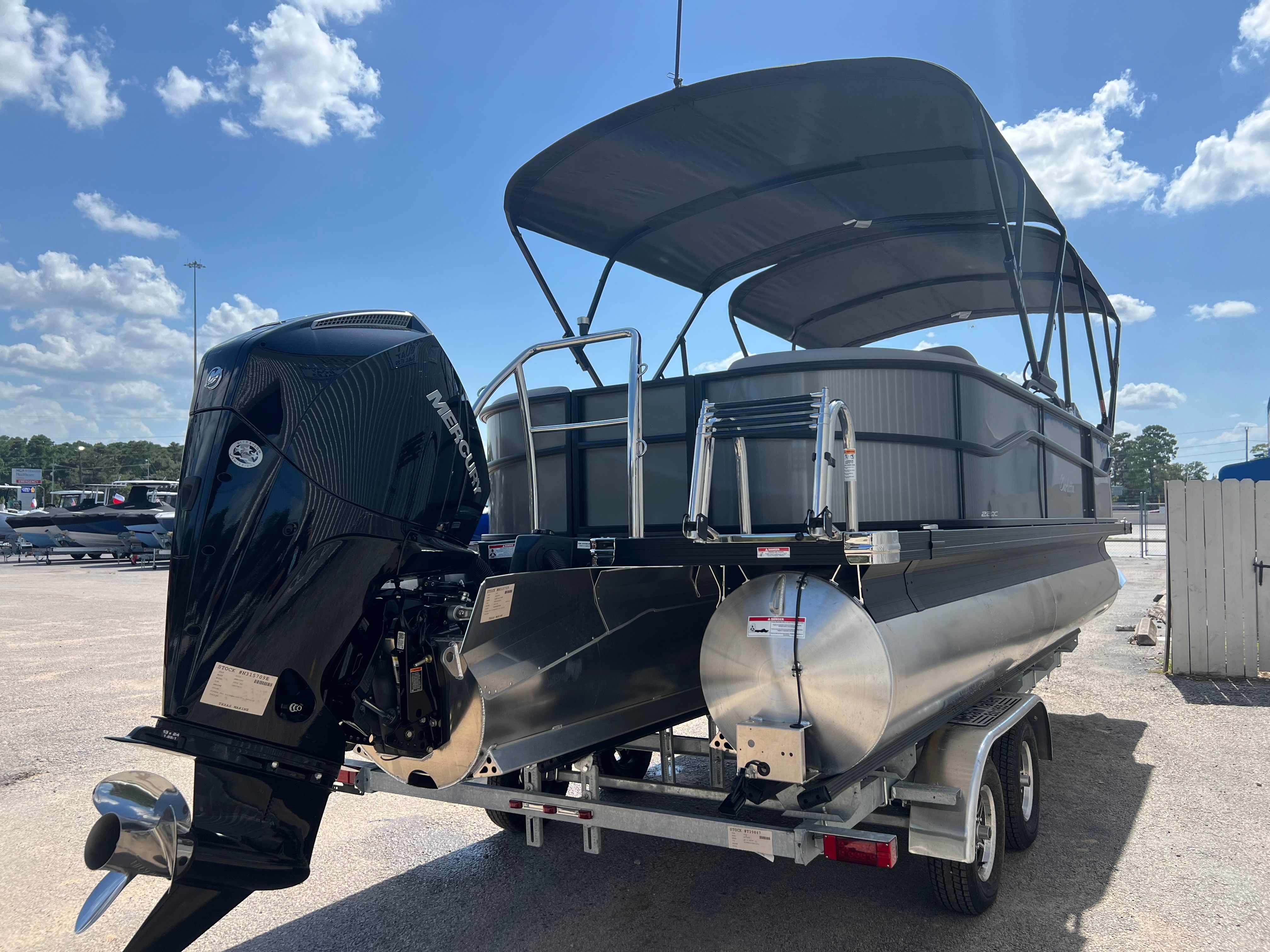 At the heart of the Aria A22QC-Platinum is a single Mercury (M) 200L FourStroke engine, delivering a robust 200 horsepower for smooth and reliable performance. The Mercury engine is paired with mechanical pre-rigging and power assist, ensuring effortless handling and responsive control. The rigging includes a stainless steel prop, enhancing durability and efficiency while maximizing your time on the water. With the Triple Toon Package Aria, this pontoon offers enhanced stability and superior ride quality, making it perfect for both leisurely cruises and more spirited outings. Whether you’re navigating calm lakes or tackling choppier waters, the Barletta Aria A22QC-Platinum provides the power and agility you need for a truly enjoyable boating experience.