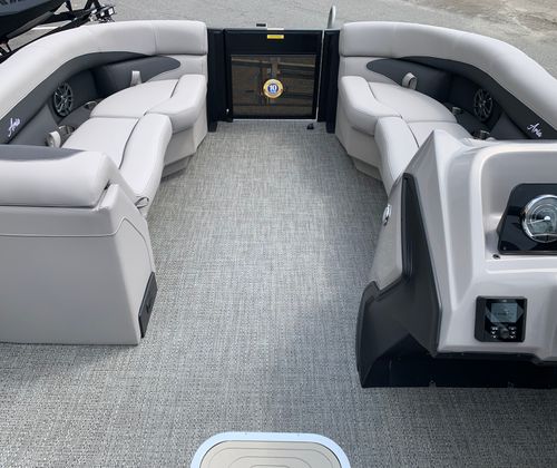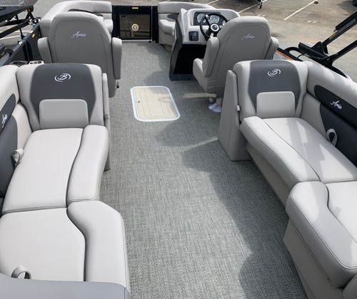 The Barletta Aria A22QC-Platinum is packed with premium features designed to enhance comfort, convenience, and style. The Blackout Package Aria offers a bold and contemporary aesthetic, while the Stainless Steel Flag Pole with American Flag adds a touch of patriotic flair to your vessel. At the helm, the Simrad 7" G07 XSE provides advanced navigation and system monitoring, keeping you informed and in control at all times.Inside, the Tempest Gray furniture creates a welcoming and luxurious atmosphere, perfect for relaxing or entertaining guests. The Triple Toon Package Aria not only improves stability and performance but also enables the inclusion of In Floor Midship Storage, offering ample space for gear, water toys, and personal belongings. Every detail is thoughtfully designed to ensure your time on the water is as enjoyable and stress-free as possible.