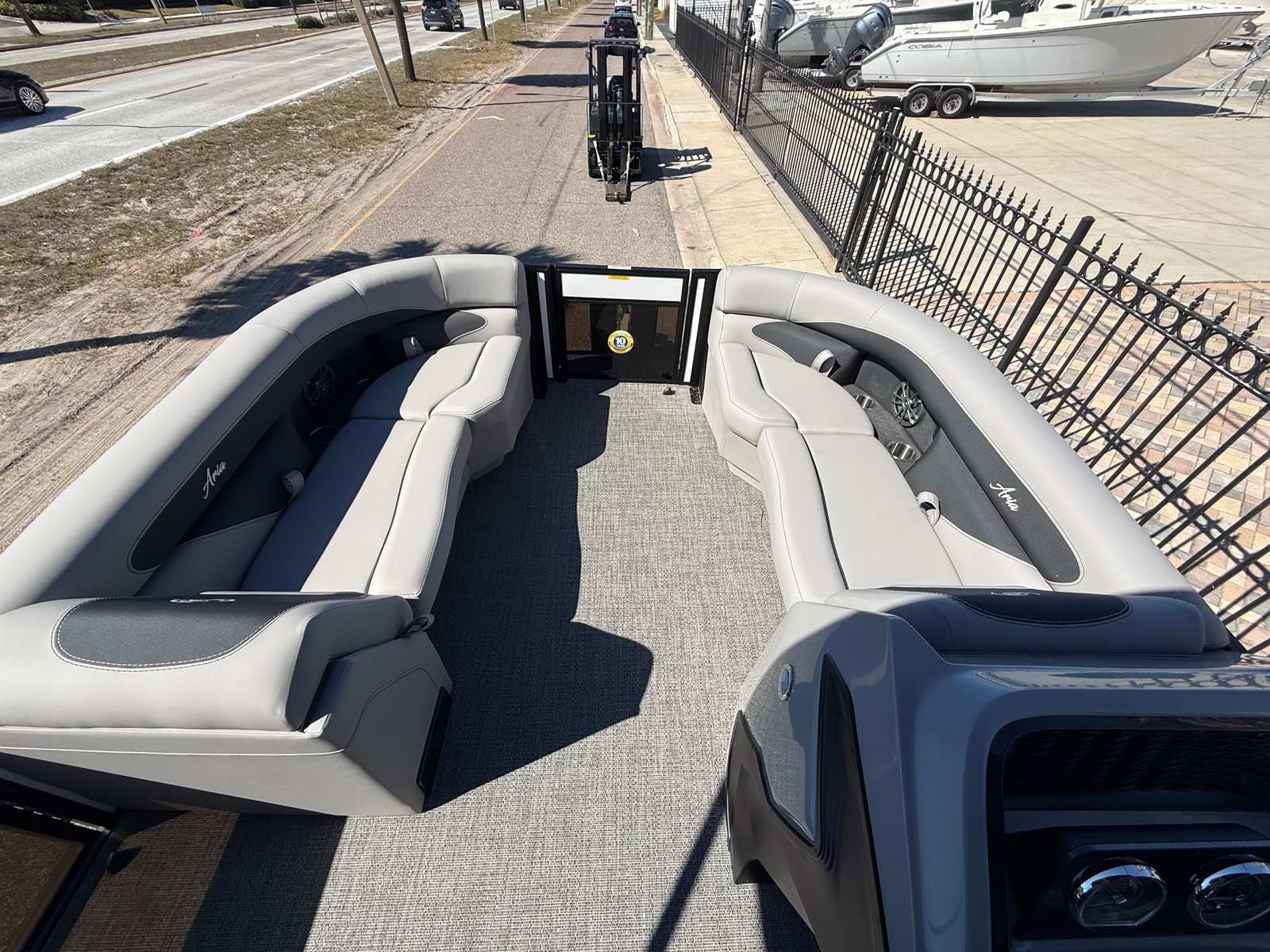 The 2026 Barletta Aria A22QC-Platinum is a new pontoon boat that measures just over 21 feet in length, offering ample space for family and friends to relax and enjoy the water. With its sleek lines and modern design, this Barletta boat for sale stands out from the crowd. The Aria A22QC-Platinum is crafted with attention to detail, ensuring both durability and aesthetic appeal. Whether you are cruising on a serene lake or hosting a lively gathering, this pontoon delivers the perfect blend of functionality and sophistication.