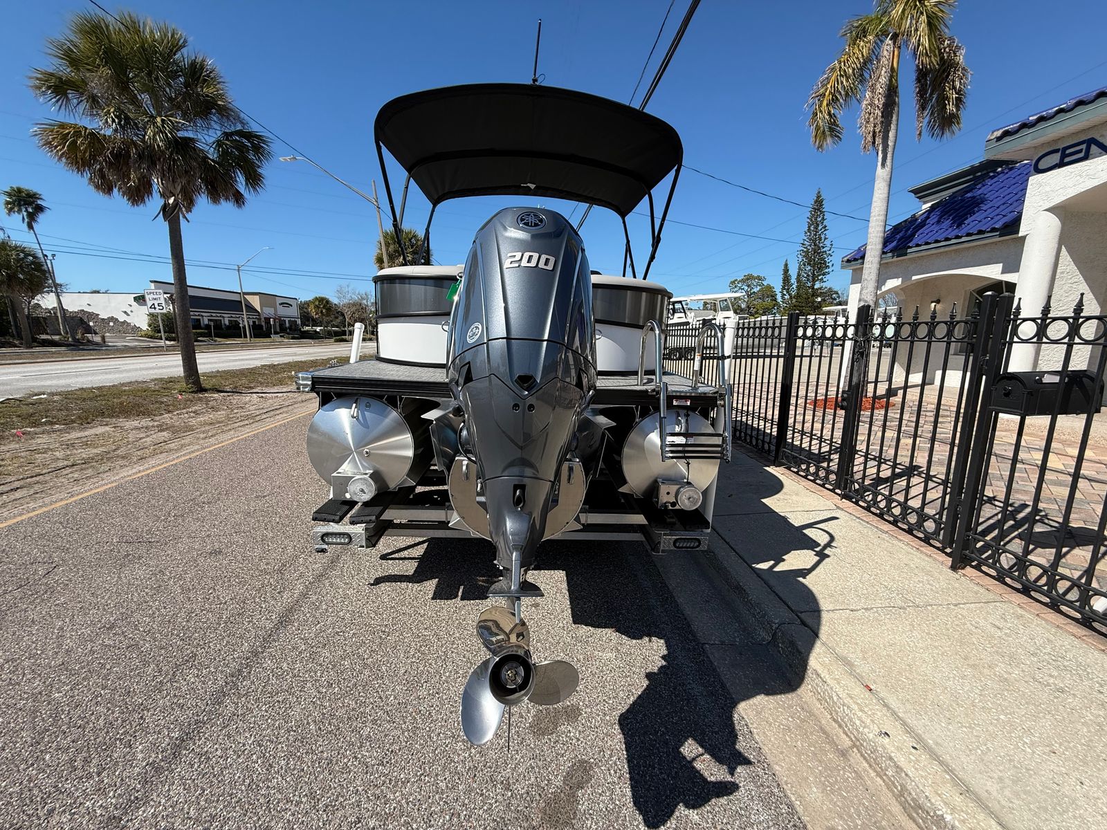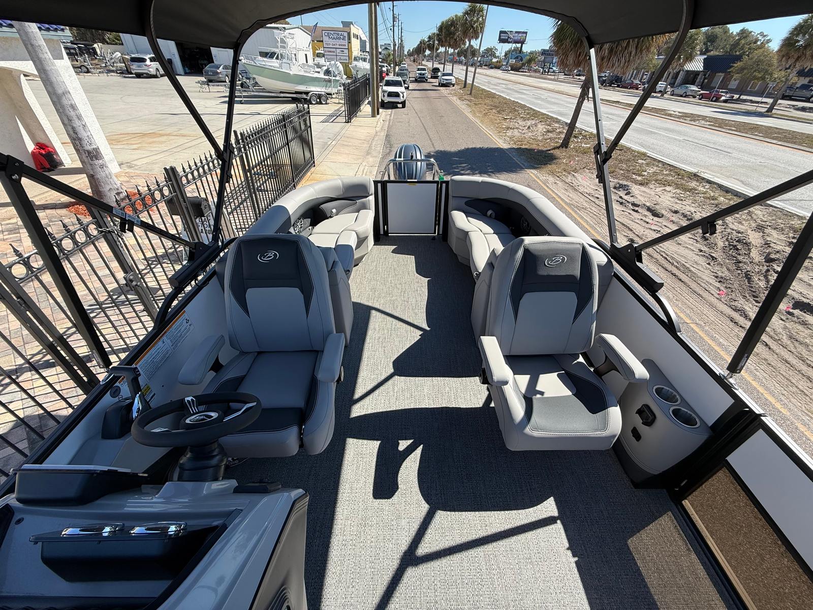 This Barletta boat for sale is the perfect companion for a wide range of activities. Imagine gathering your family for a day of swimming and picnicking, or inviting friends aboard for an evening cruise under the stars. The spacious deck and comfortable seating make it ideal for socializing, while the powerful engine and Triple Toon Package open up opportunities for water sports and exploring new waterways. Whether you are planning a relaxing weekend getaway, a fishing trip, or a celebration on the water, the Aria A22QC-Platinum adapts to your needs and enhances every experience.
