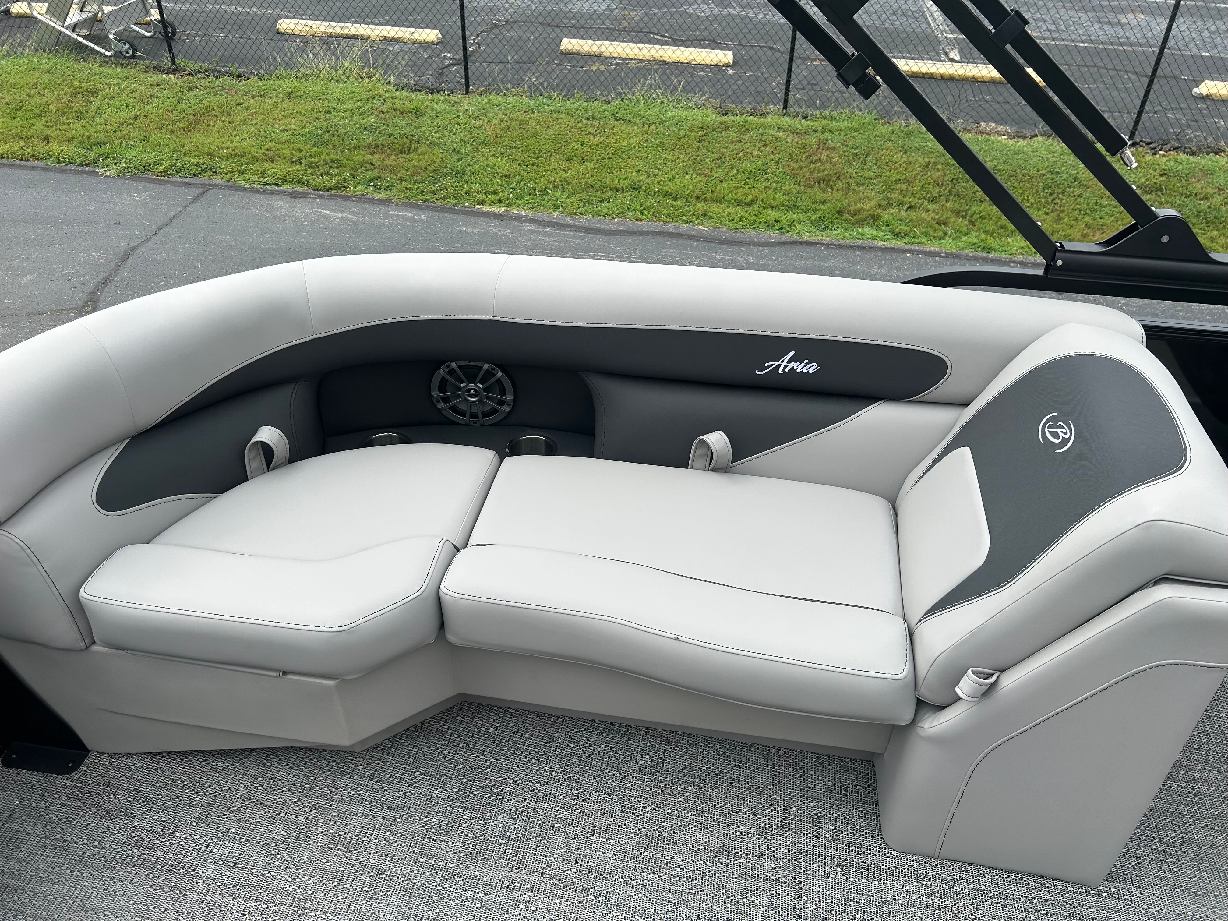This Barletta pontoon boat is the ultimate platform for a wide range of activities. Imagine hosting lively gatherings with friends, where everyone has plenty of room to relax and enjoy the ride. For families, the spacious layout and comfortable seating make it easy to bring everyone along for a day of swimming, picnicking, or exploring new destinations.Fishing enthusiasts will appreciate the stability and space offered by the Triple Toon Package Aria, providing a steady platform for casting lines and reeling in the catch of the day. If you are seeking a luxurious getaway, the elegant design and premium features of the Aria A22QC-Platinum create the perfect setting for romantic sunsets, quiet mornings, or leisurely cruises along scenic shorelines.