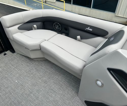 The Barletta Aria A22QC-Platinum is packed with features designed to elevate your boating experience. The Triple Toon Package Aria provides enhanced buoyancy and stability, making it ideal for a variety of water conditions. The furniture, finished in Tempest Gray, offers both comfort and contemporary style, creating an inviting space for relaxation and socializing. The Railskin Color Aria in Black Diamond, complemented by the Railskin Accent Aria in Gray Moonstone, gives this pontoon a striking and modern appearance. The Blackout Package Aria adds a touch of sophistication, ensuring your boat stands out wherever you go.The Amore Gray flooring is not only visually appealing but also practical, providing a durable and easy-to-clean surface that stands up to the demands of active days on the water. The Simrad 7" G07 XSE navigation system brings advanced technology to your fingertips, offering intuitive controls and clear displays to help you navigate with confidence.