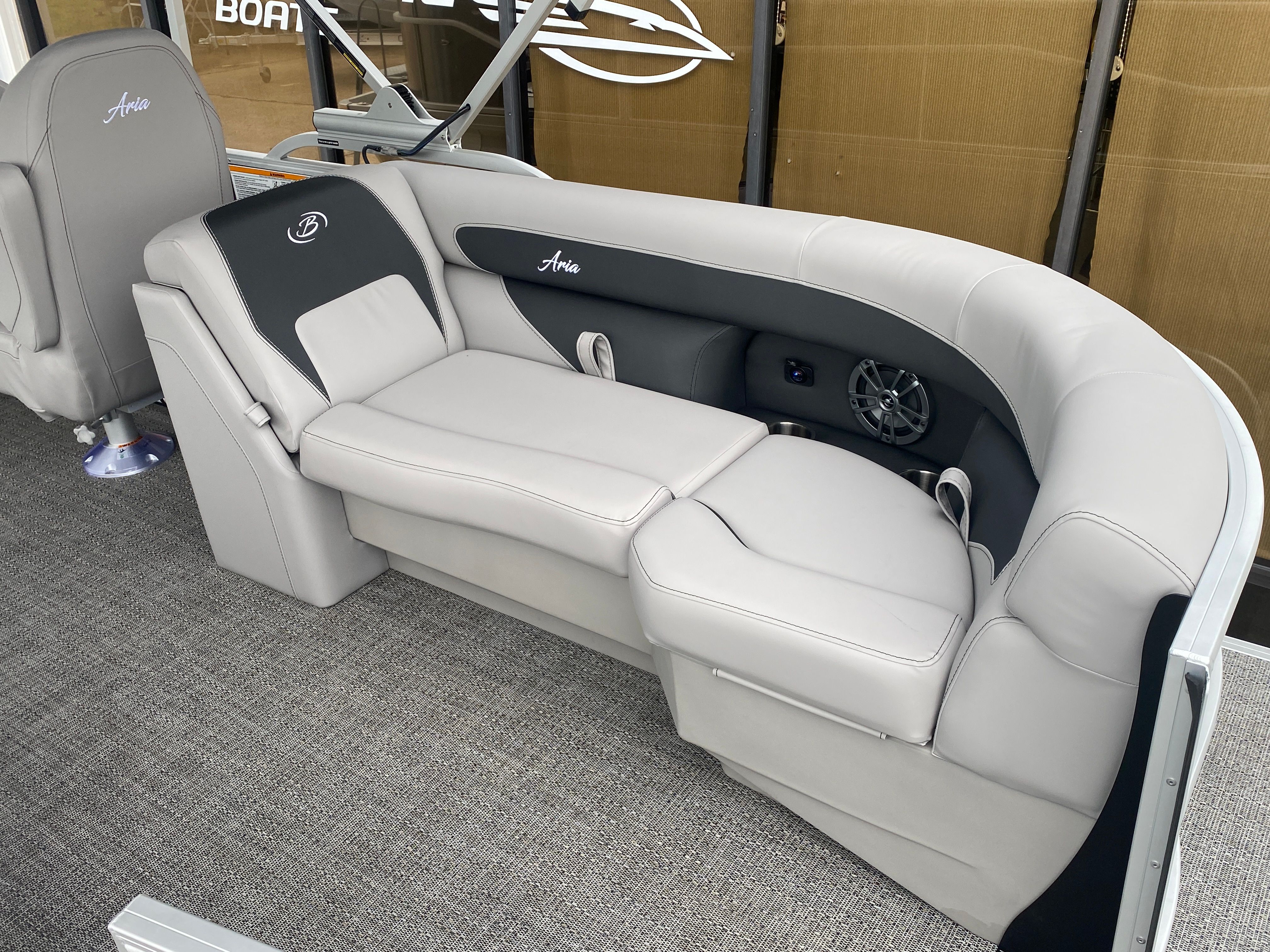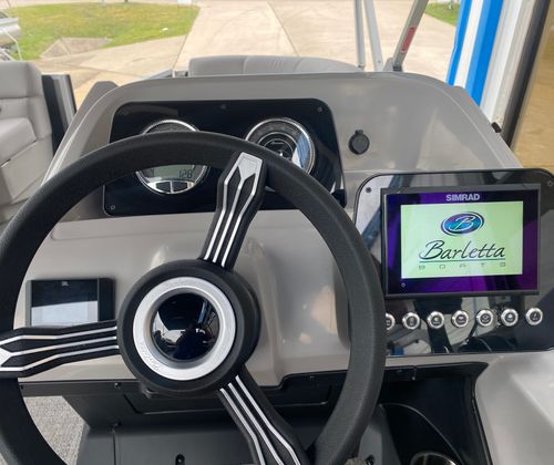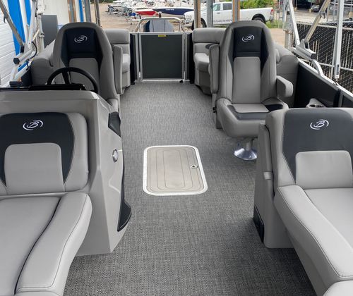 Step aboard the Barletta Aria A22QC-Platinum and discover a world of thoughtful features designed to elevate your boating experience. The Tempest Gray furniture offers plush, supportive seating for you and your guests, while the Amore Gray flooring provides a stylish and durable foundation underfoot. Entertain with ease thanks to the interior table, pedestal, and base, complete with a Yeti-ready cupholder for your favorite beverages. The in-floor midship storage ensures that all your gear and essentials are neatly stowed yet easily accessible, keeping the deck clutter-free.At the helm, the Simrad 7" G07 XSE display puts navigation and system controls at your fingertips, enhancing safety and convenience on every journey. The double bimini canvas offers generous shade, allowing you to enjoy long days on the water in comfort, while the stainless steel flag pole with an American flag adds a patriotic touch to your vessel. The pre-rig Mercury mechanical setup ensures seamless integration with your engine, providing reliable performance and peace of mind.