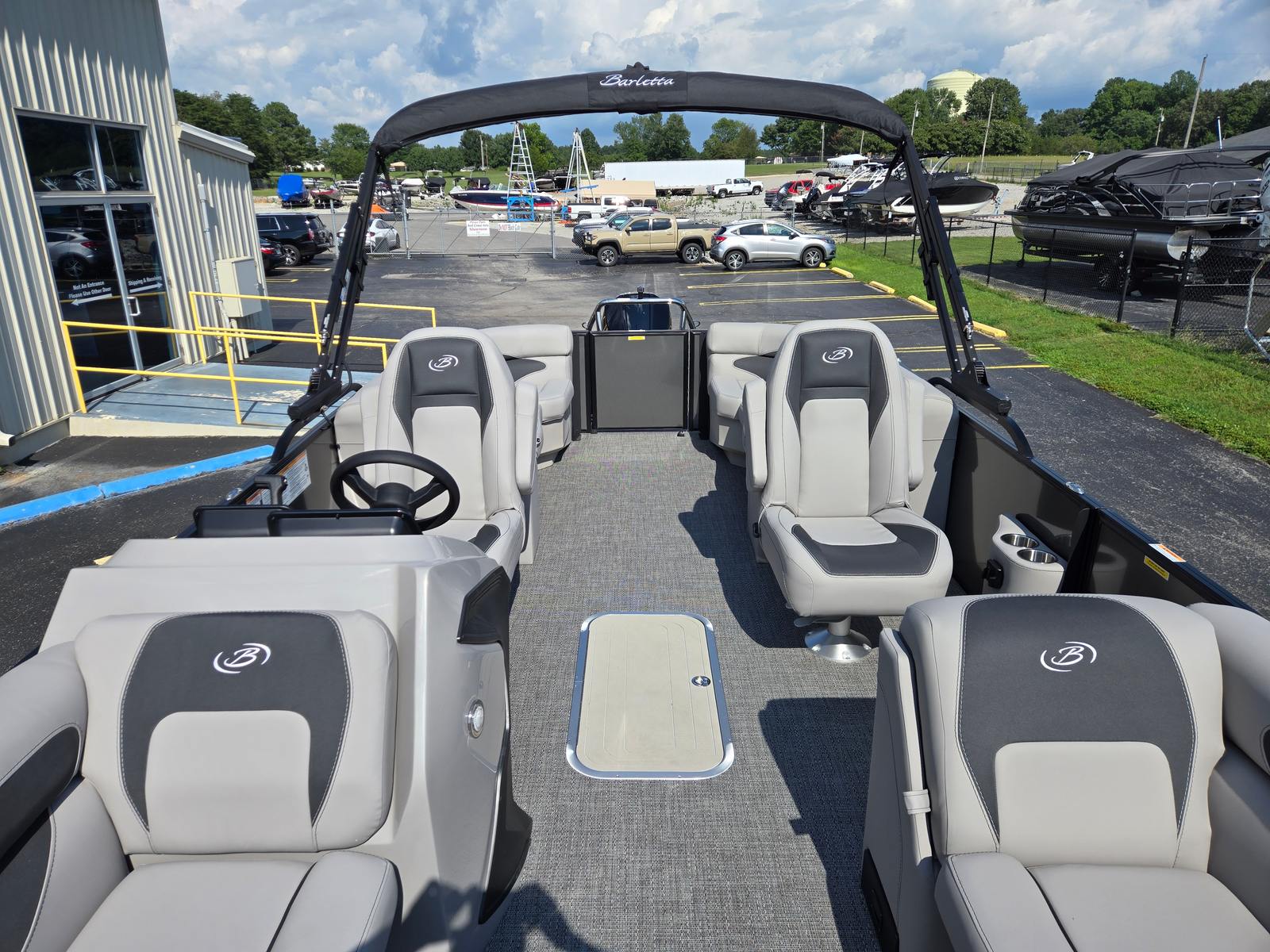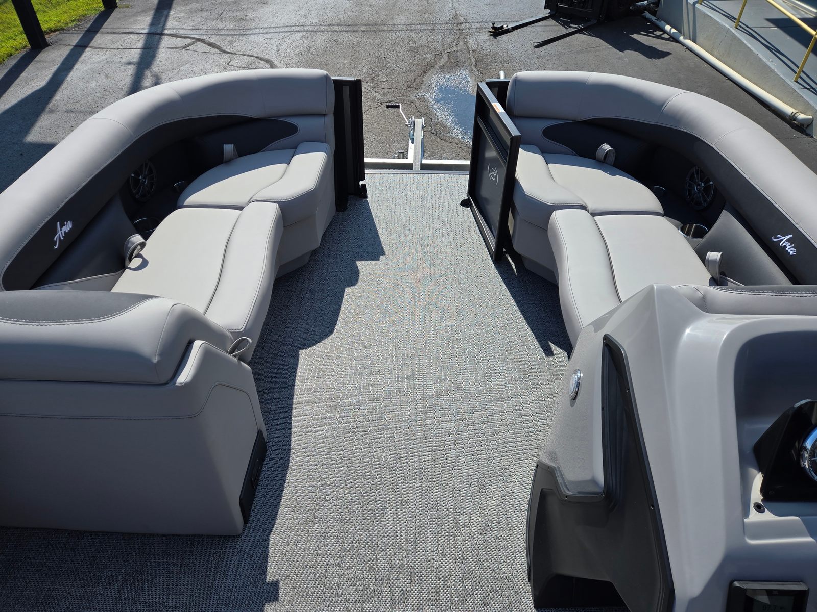 The Barletta Aria A22QC-Platinum is as practical as it is stylish. Its thoughtfully designed layout makes storage and organization a breeze, allowing you to keep gear, snacks, and personal items neatly stowed away. The ease of docking and maneuvering, thanks to the power assist steering and responsive engine, means you can confidently approach marinas, docks, and tight spaces without stress. The efficient Mercury FourStroke engine is engineered for optimal fuel economy, helping you spend more time on the water and less time refueling.Maintenance is straightforward, with durable materials and finishes that are built to withstand the elements. The sturdy construction and triple toon package provide added peace of mind, ensuring your investment remains in top condition for years to come. Whether you’re a seasoned boater or new to pontoon ownership, the Aria A22QC-Platinum offers a hassle-free experience that lets you focus on enjoying every moment.