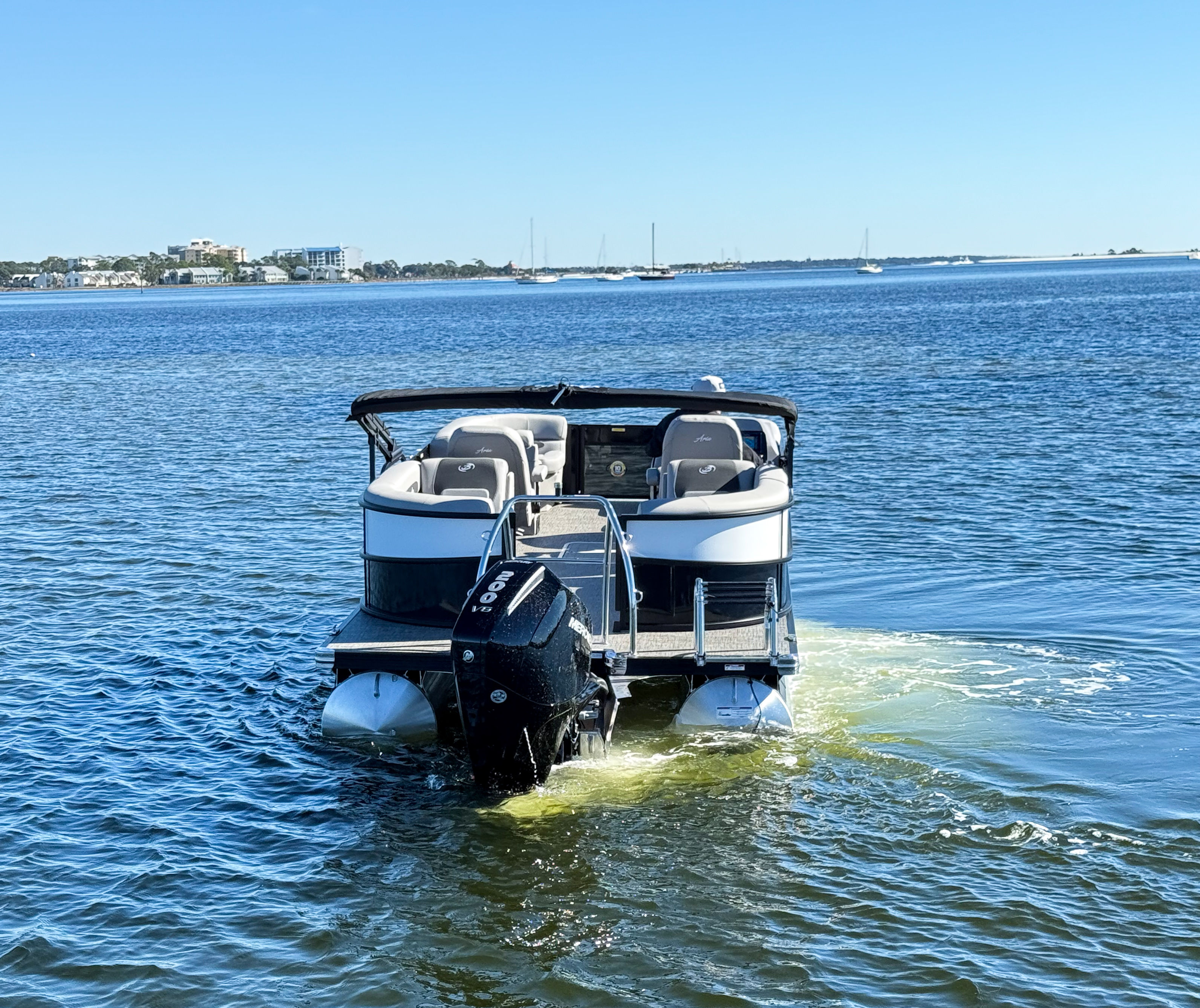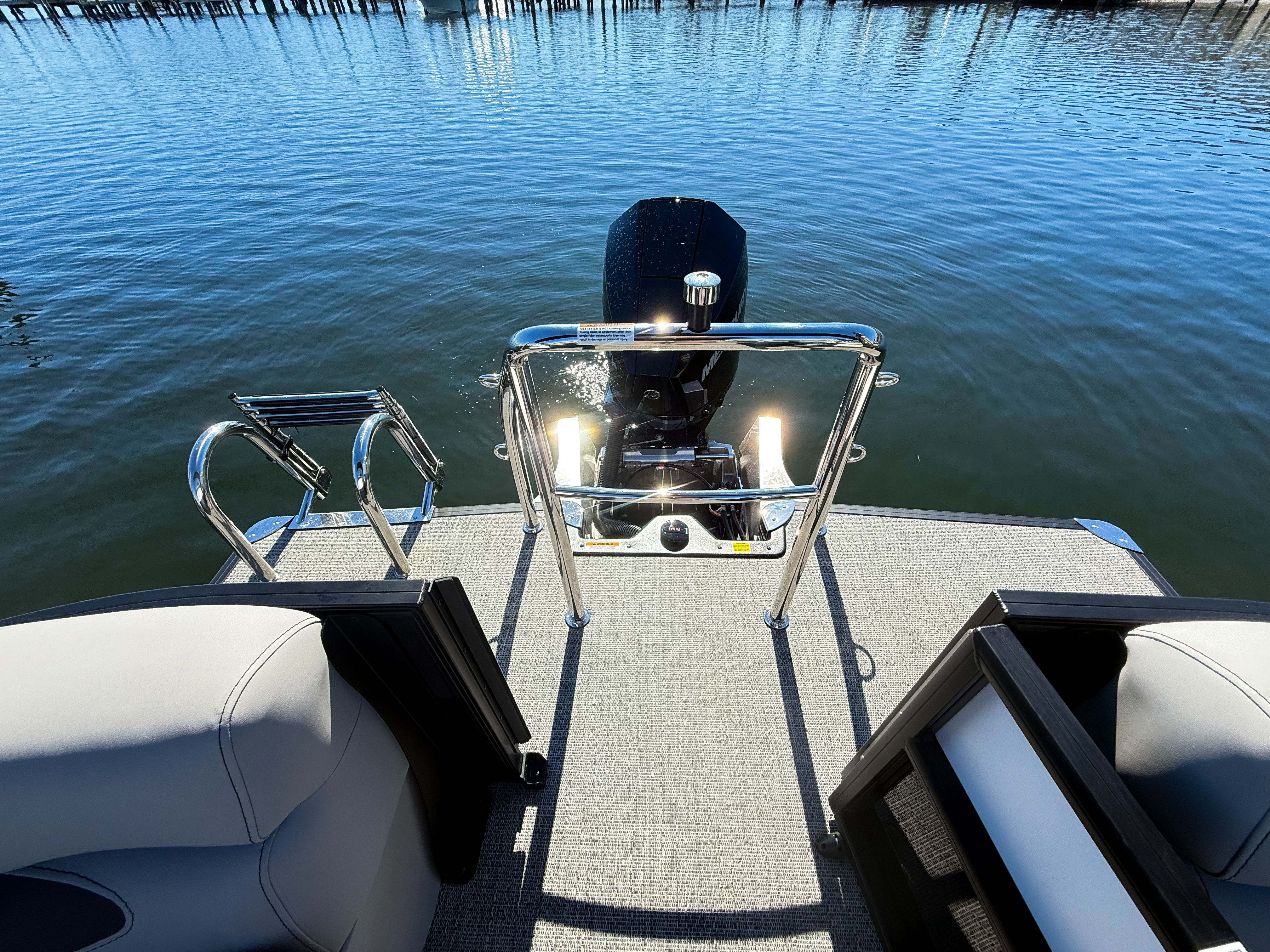 This pontoon boat is designed with practicality in mind, making ownership both easy and rewarding. The ample deck space allows for convenient storage of gear, coolers, and water toys, keeping everything organized and accessible. The power assist steering and mechanical rigging simplify docking and maneuvering, even in crowded marinas or tight spaces. The efficient Mercury 200L 4S engine offers excellent fuel economy, so you can spend more time on the water and less time refueling. The durable stainless steel prop and high-quality construction ensure low maintenance and long-lasting performance, giving you peace of mind and more time to enjoy your investment.