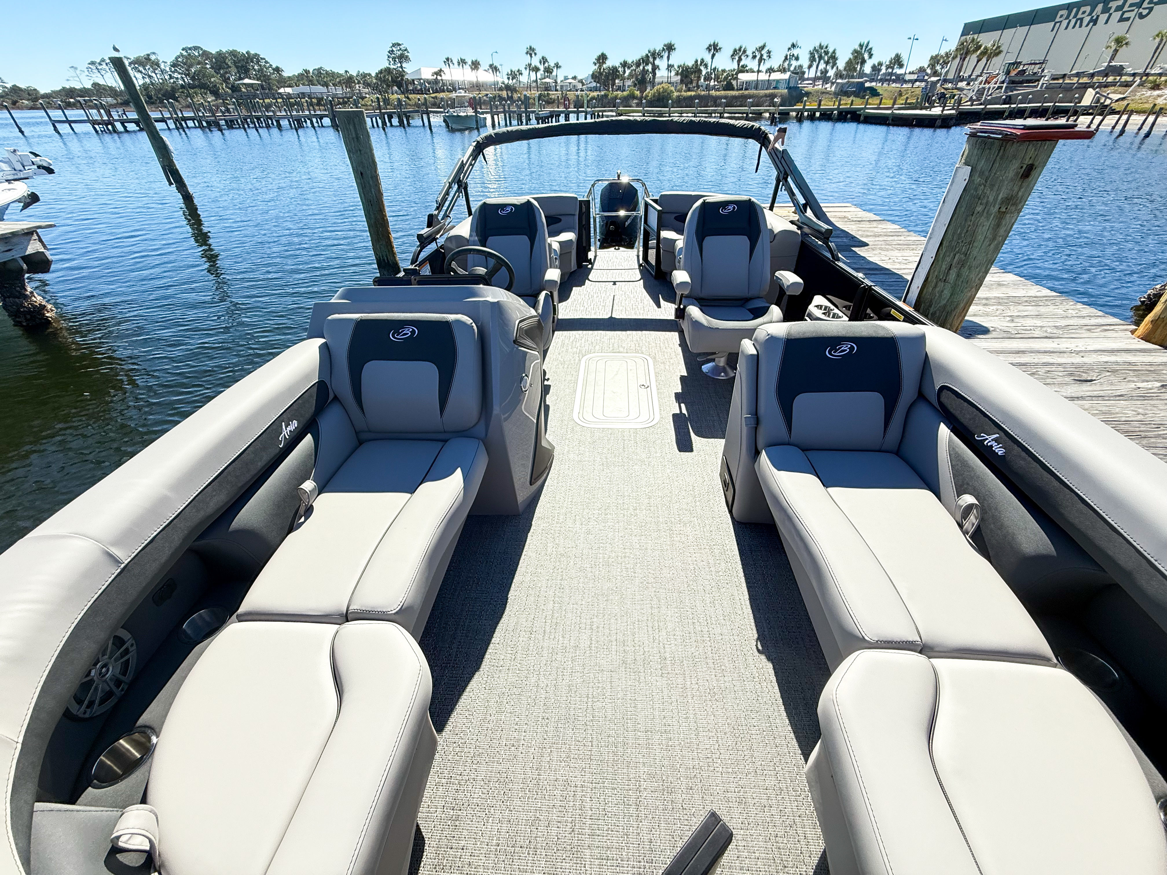 Owning the Barletta Aria A22QC-Platinum means embracing a lifestyle of fun, relaxation, and social connection. The spacious deck layout provides plenty of room for family and friends to spread out, relax, and enjoy the scenery. The plush Tempest Gray furniture invites you to unwind in comfort, while the stylish flooring and railskin accents create an atmosphere of luxury. With powerful performance and easy handling, you can explore new destinations, participate in water sports, or simply soak up the sun. The advanced engineering and thoughtful design ensure that every outing is safe, enjoyable, and memorable.