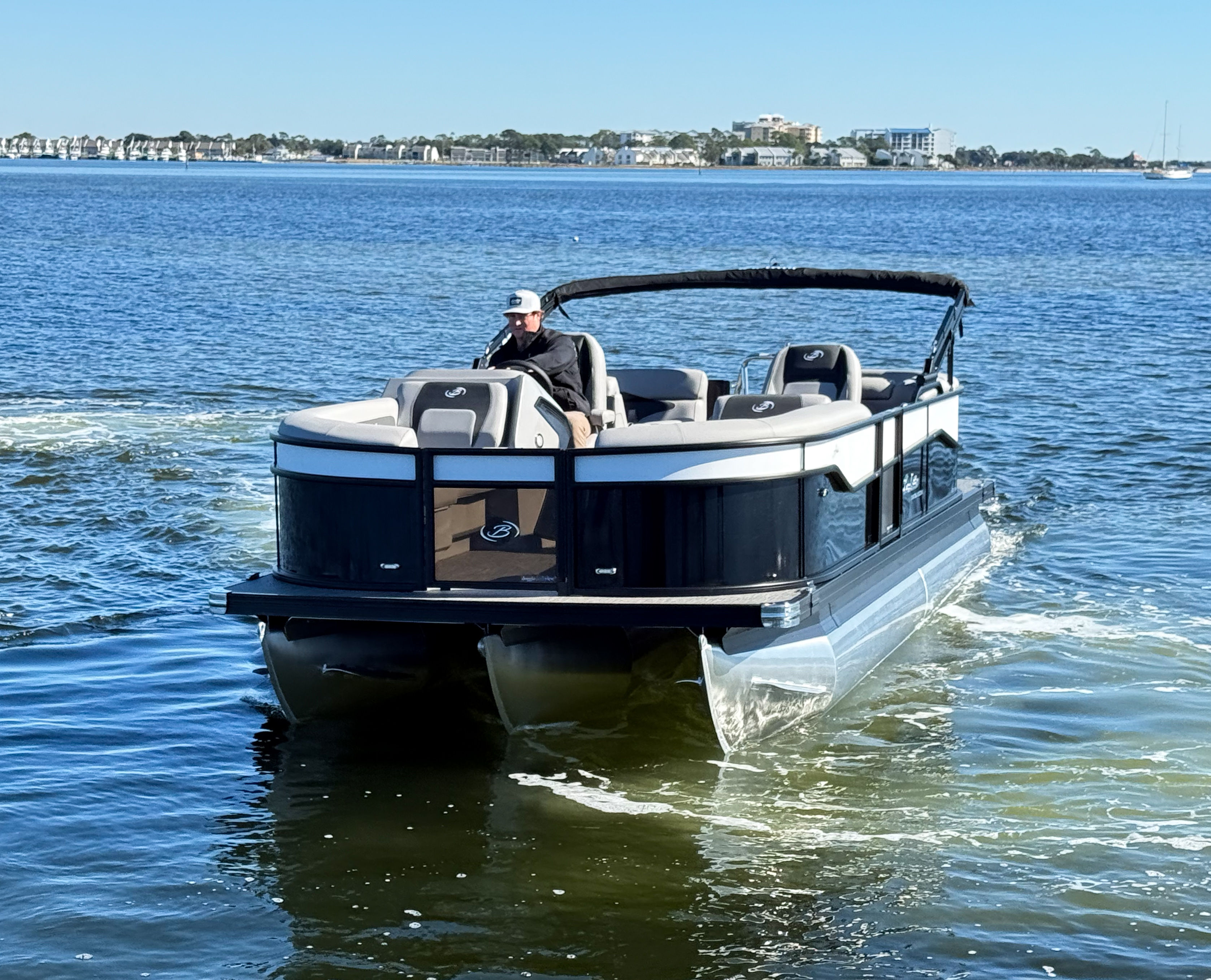 The Barletta Aria A22QC-Platinum is packed with premium features designed to elevate your time on the water. The Railskin Color Aria in Black Diamond, paired with the Winter White accent, creates a striking visual appeal, while the Blackout Package Aria adds a touch of modern elegance. Inside, the Tempest Gray furniture offers plush comfort and sophisticated style, perfectly complemented by the Amore Gray flooring for a cohesive and inviting atmosphere. The Coastal Edition Aria brings added versatility, making this pontoon boat ideal for a variety of water conditions. The Triple Toon Package Aria enhances stability and ride quality, ensuring a smooth and enjoyable journey for all passengers. Rigging with a stainless steel prop further boosts performance and longevity, making this Barletta boat for sale a smart investment for years of enjoyment.
