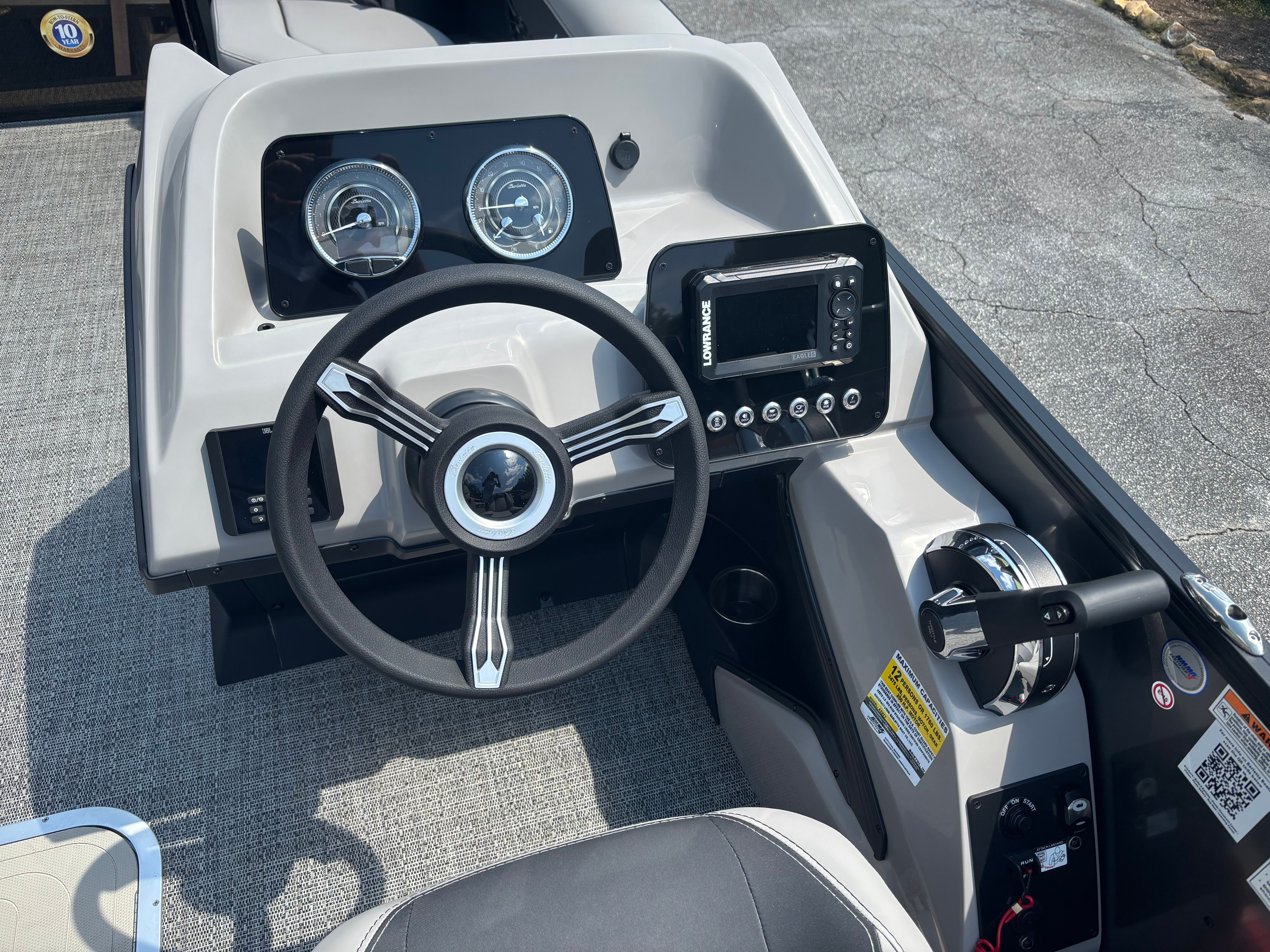 Powering the Aria A22QC-Platinum is a robust Mercury 200L 4S engine, boasting an impressive 200 horsepower and only 1 engine hour. This setup ensures reliable and exhilarating performance, whether you’re cruising across the lake or towing water toys for added excitement. The Pre-Rig: Mercury - Mechanical with Power Assist (200HP) enhances handling, providing smooth and responsive control at any speed. The Triple Toon Package Aria further boosts stability and ride quality, making this pontoon boat a pleasure to operate in various water conditions.