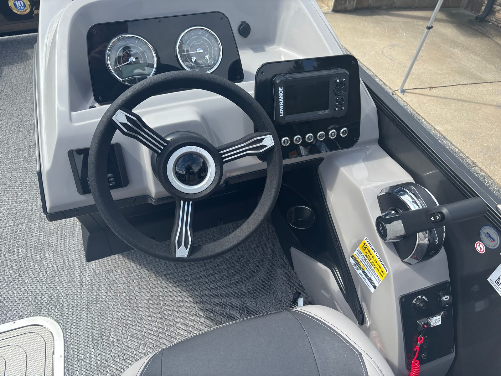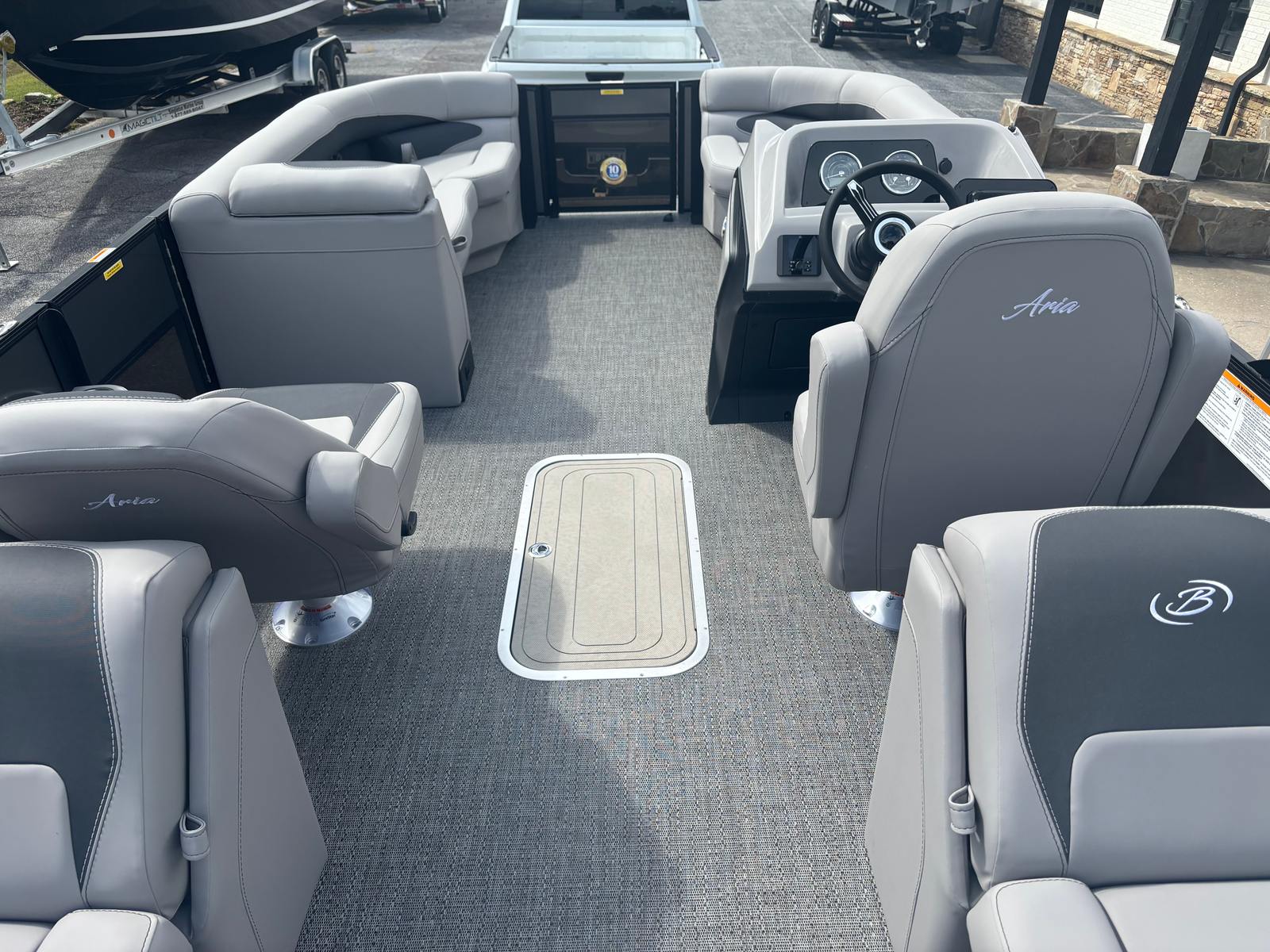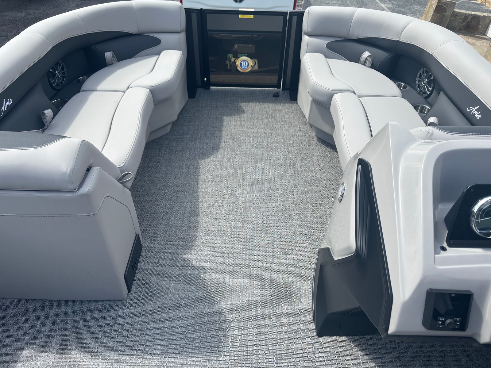 The Barletta Aria A22QC-Platinum is packed with premium features designed to maximize comfort, convenience, and enjoyment. The flooring is finished in Amore Gray, offering a stylish and easy-to-clean surface that complements the boat’s sophisticated interior. The Tempest Gray furniture provides plush seating for passengers, creating a welcoming environment for relaxation and socializing.A standout feature of this model is the In Floor Midship Storage, available with the Triple Toon Package Aria. This innovative storage solution allows you to stow away gear, water toys, and personal items securely, keeping the deck clutter-free and organized. The Triple Toon Package also enhances stability and handling, making the boat ideal for a variety of water conditions.On the exterior, the Stainless Steel Flag Pole with an American Flag adds a touch of patriotic flair and elegance, while the Railskin Color Aria in Gray Moonstone gives the boat a modern, upscale appearance. The helm is equipped with the Eagle 5 GPS, providing advanced navigation capabilities and ensuring you stay on course during your adventures.