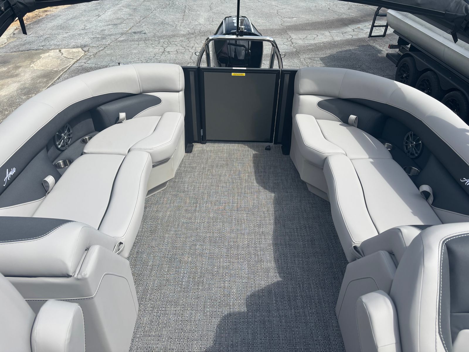 This Barletta pontoon boat for sale is perfect for a wide range of activities and occasions. Imagine spending a sunny afternoon cruising with family, sharing laughter and stories as you glide across the water. The spacious deck is ideal for hosting gatherings, from casual get-togethers to celebratory events. Fishing enthusiasts will appreciate the stability and ample space for casting lines and storing gear, while those seeking relaxation can stretch out on the comfortable seating and soak up the sun.The Aria A22QC-Platinum also excels as a platform for luxury getaways, offering a private retreat where you can unwind and enjoy the beauty of nature. Whether you’re exploring hidden coves, anchoring for a swim, or simply drifting with the current, this pontoon boat provides the perfect setting for creating lasting memories.