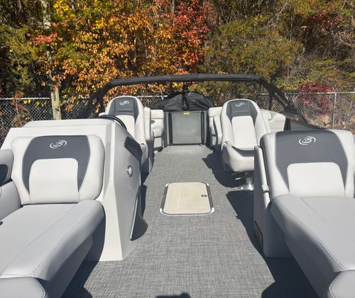 The 2026 Barletta Aria A22QC is a stunning pontoon boat that measures just over 21 feet in length, making it the perfect size for a variety of on-water activities. Its sleek profile and modern design are complemented by the Gray Moonstone Railskin color and the Blackout Package Aria, giving this pontoon a sophisticated and contemporary look that is sure to turn heads at any marina or lake. As a new model, this Barletta boat for sale offers the latest in design innovation and quality craftsmanship, ensuring you enjoy years of reliable performance and enjoyment.