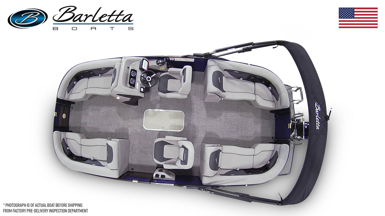 The Barletta Aria A22QC is packed with features designed to enhance your time on the water. The helm is equipped with the advanced Eagle 5 GPS, providing intuitive navigation and essential information at your fingertips. The flooring features luxurious Amore Gray material, offering both style and comfort underfoot. The Tempest Gray furniture invites you and your guests to relax in plush seating, while the Bohemian Blue Railskin Color Aria adds a touch of sophistication to the boat's exterior.For those who appreciate thoughtful details, the Blackout Package Aria delivers a bold, modern look with its sleek railskin packages. The stainless steel flag pole with an American flag adds a patriotic flair, making your boat stand out wherever you go. The in-floor midship storage (requires triple toon) provides ample space for stowing gear, water toys, and personal items, keeping the deck clutter-free and organized.
