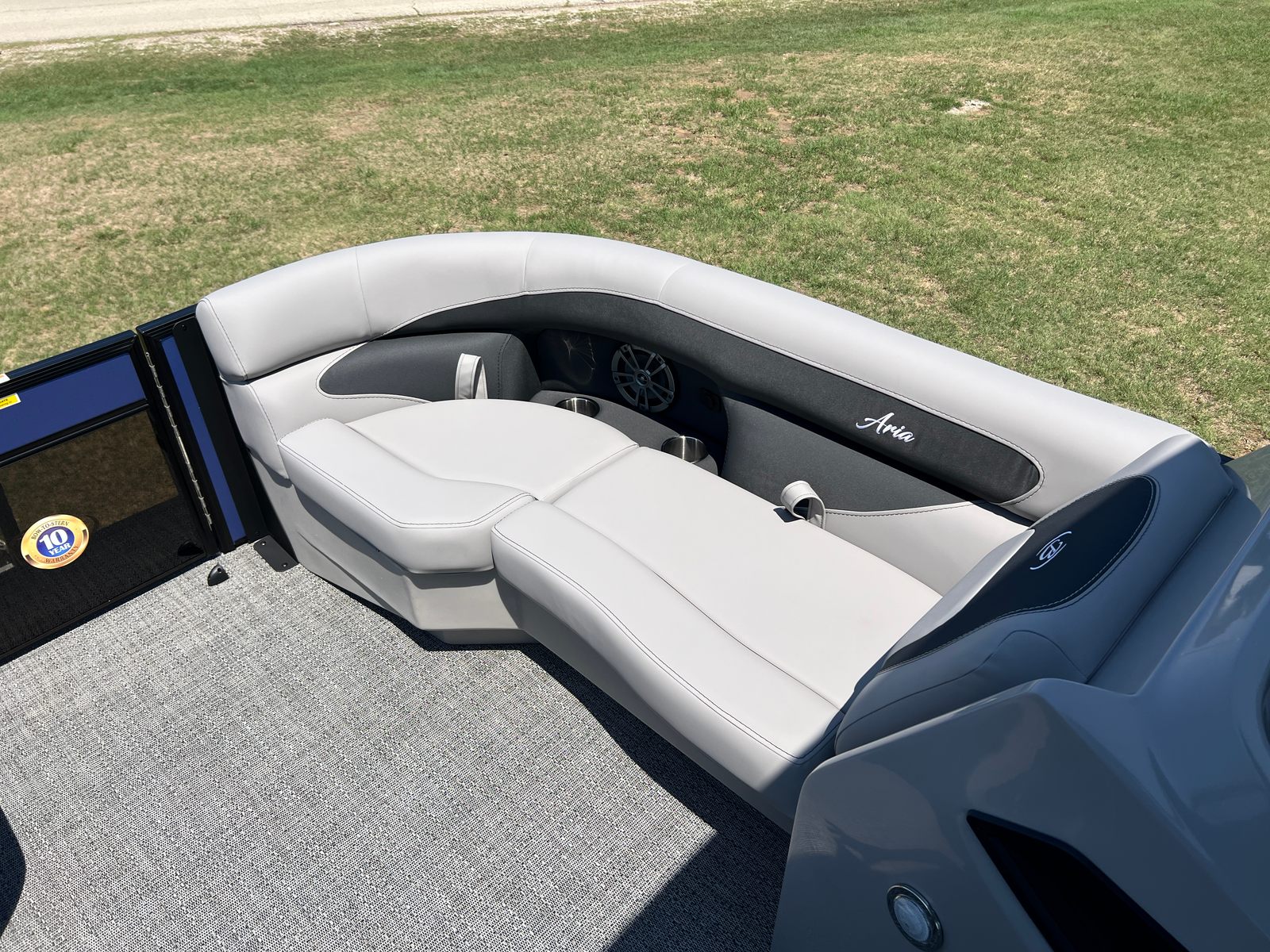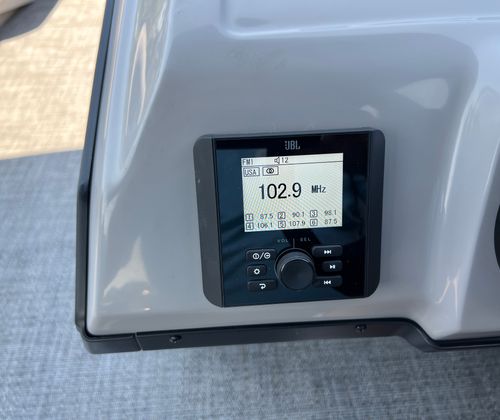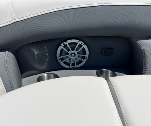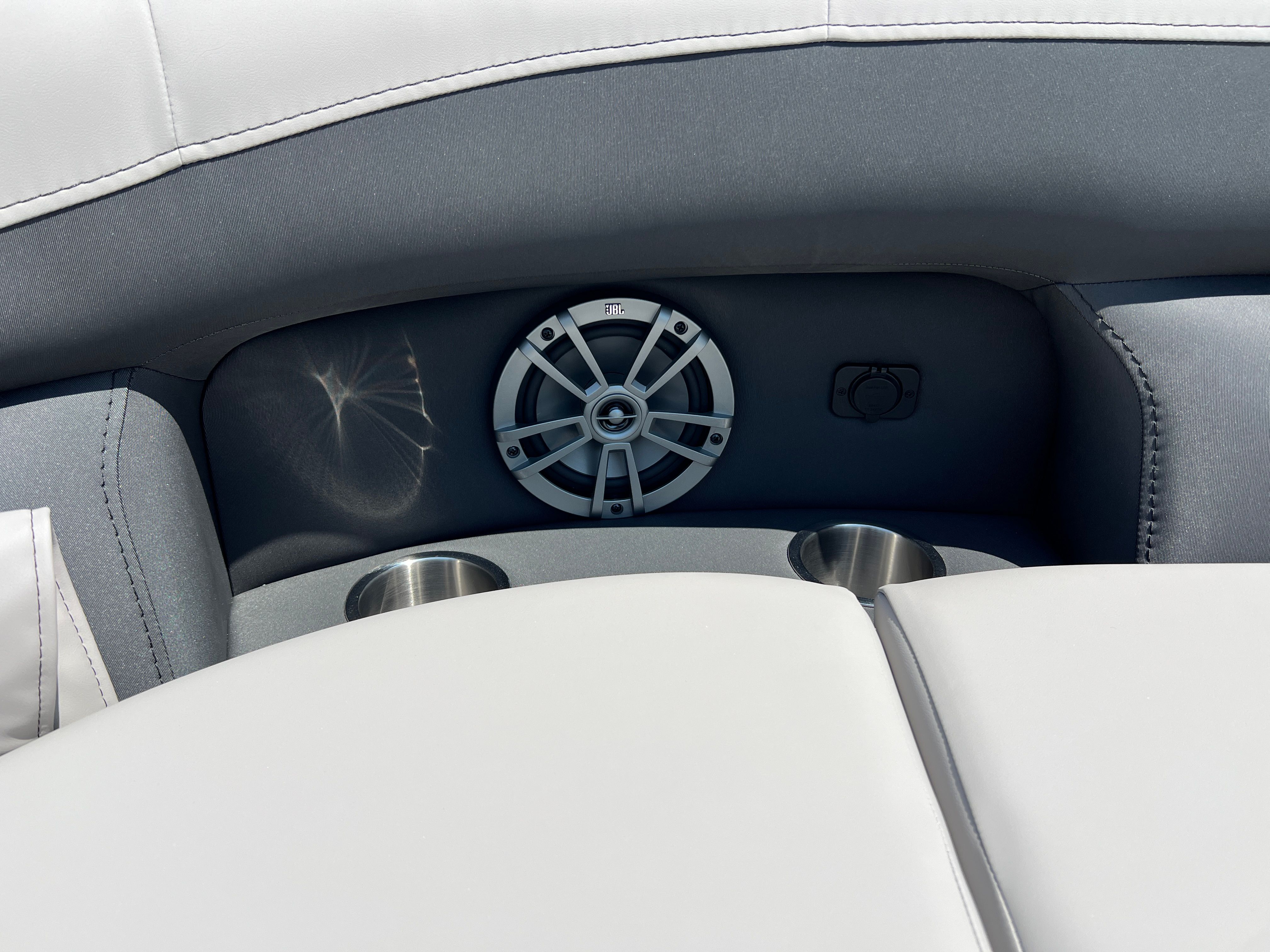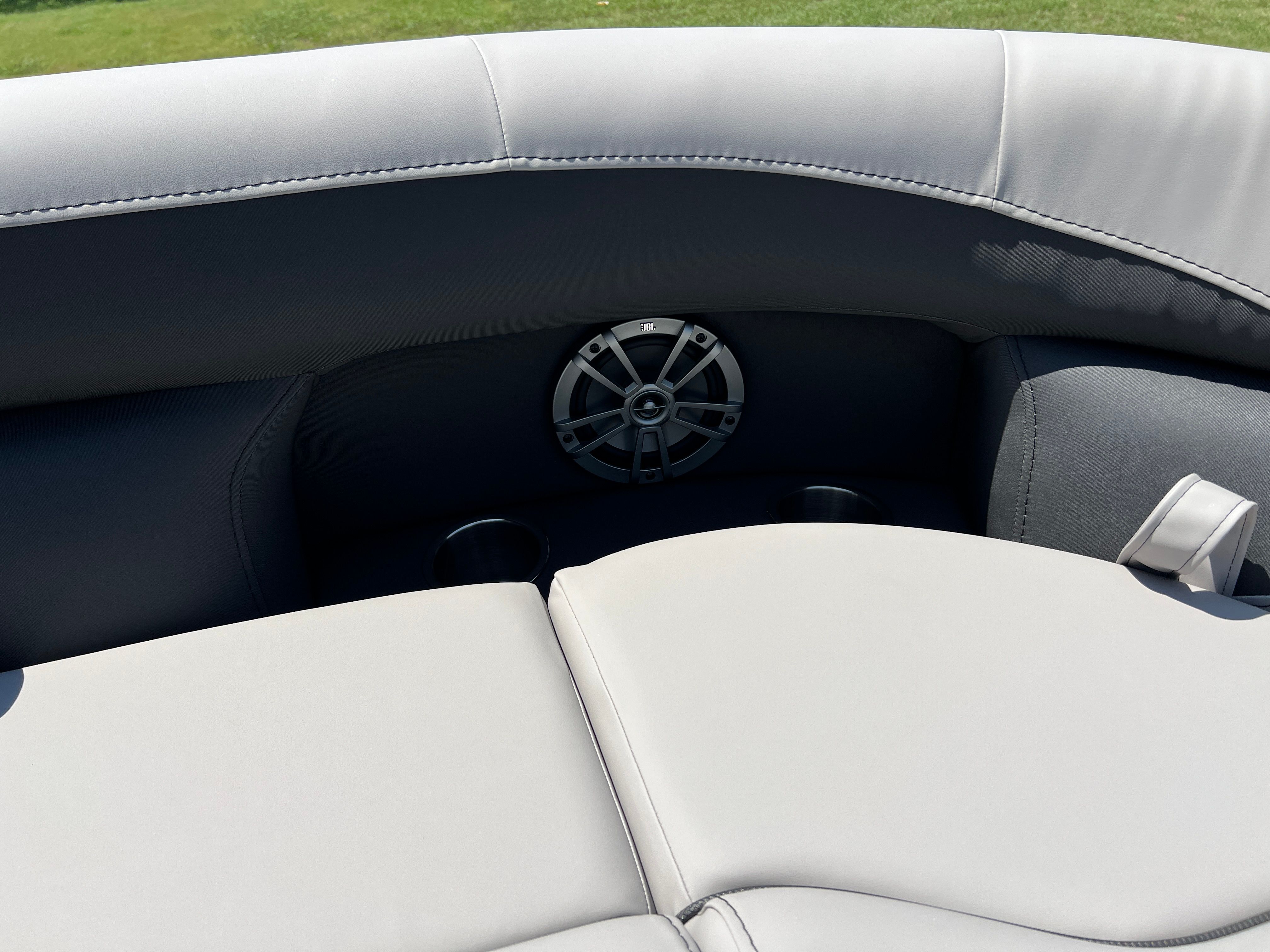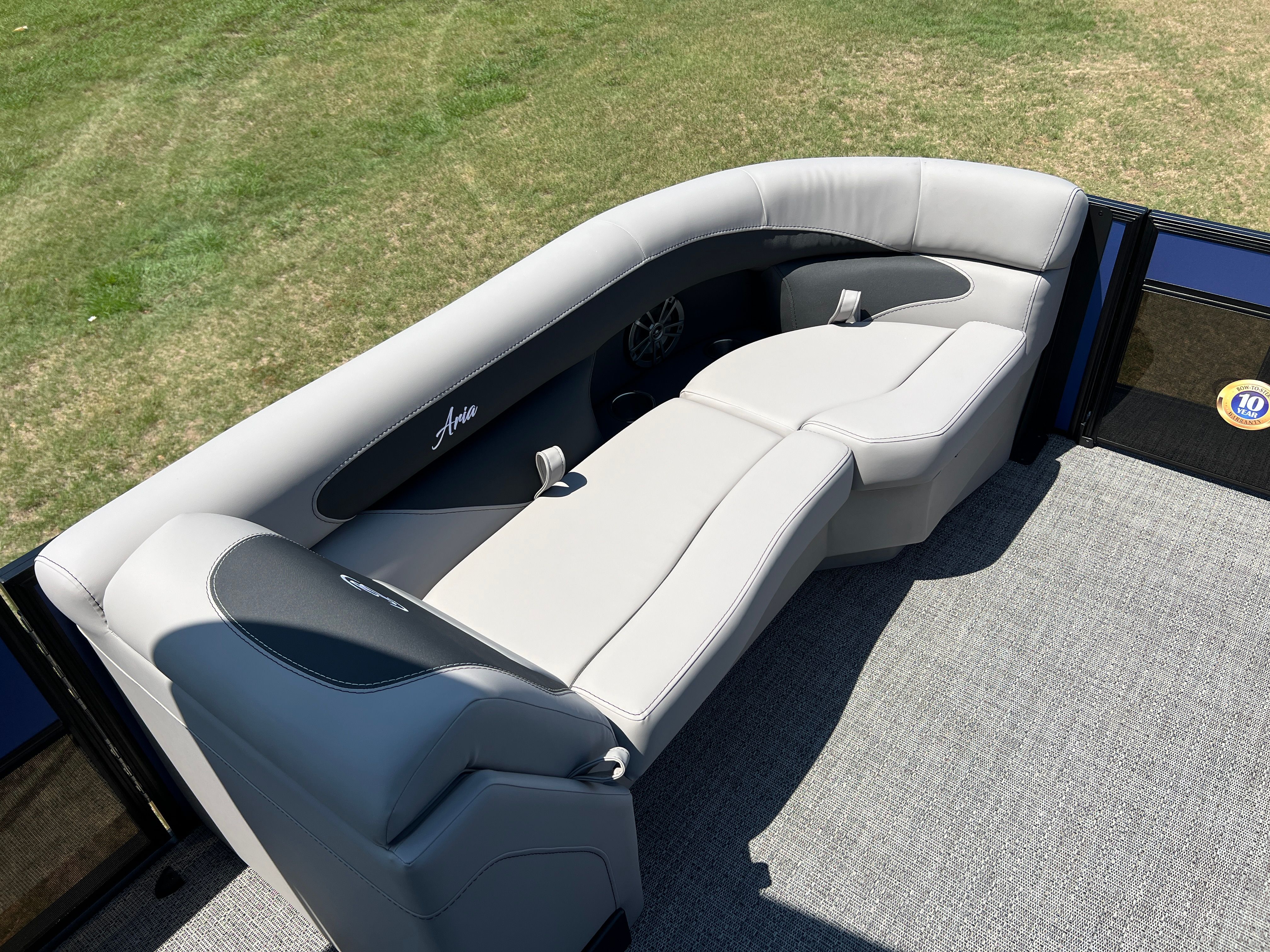 The Barletta Aria A22QC is packed with special features that elevate your boating experience. The Railskin Color Aria in Pacific Matte Blue gives the boat a sophisticated, modern look, while the Blackout Package Aria adds a bold, distinctive touch. Inside, the Tempest Gray furniture provides plush, comfortable seating for you and your guests, complemented by Amore Gray flooring that’s both stylish and easy to maintain. The triple toon package enhances stability and performance, ensuring a smooth and enjoyable ride.Practicality meets elegance with the in-floor midship storage, offering convenient space for stowing gear, water toys, and personal items. The stainless steel flag pole with an American flag adds a patriotic flair, making your boat stand out at every marina or dock. Every detail, from the premium materials to the thoughtful layout, is designed to maximize comfort, convenience, and enjoyment on the water.