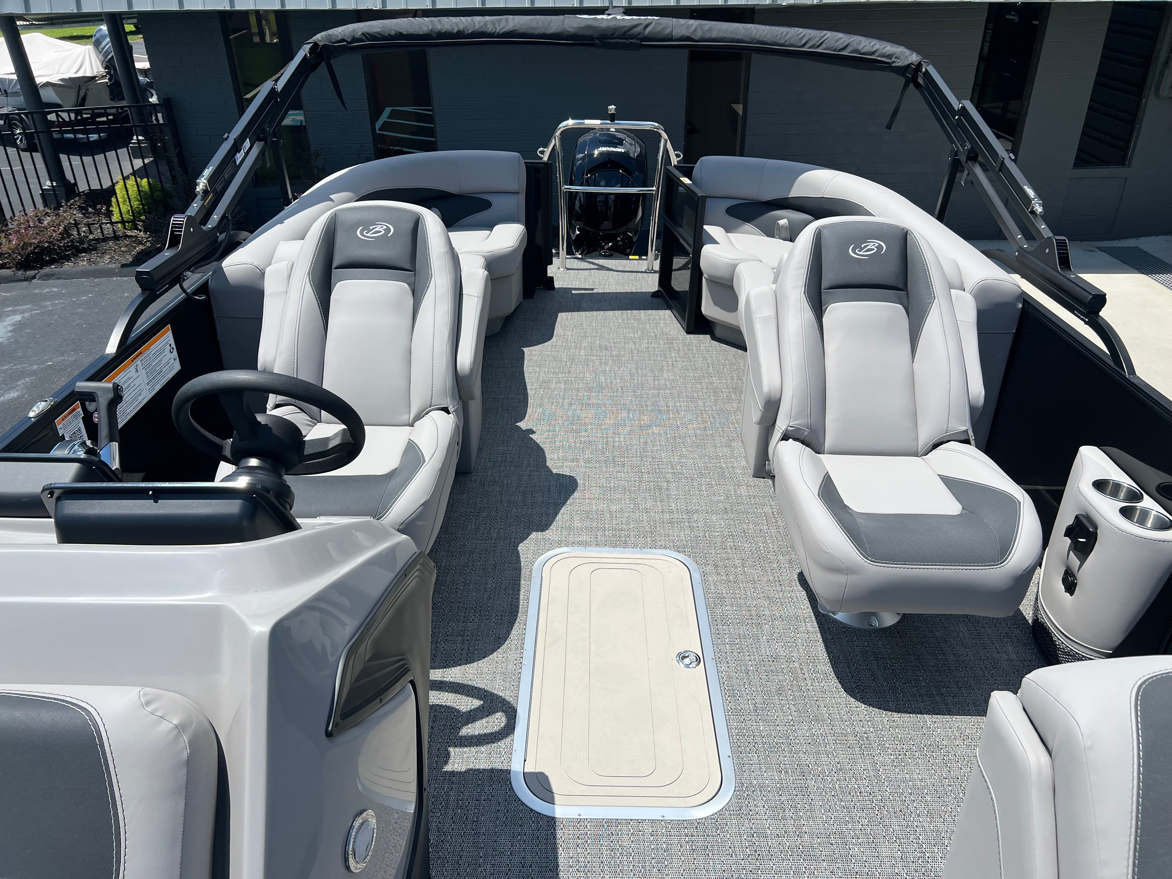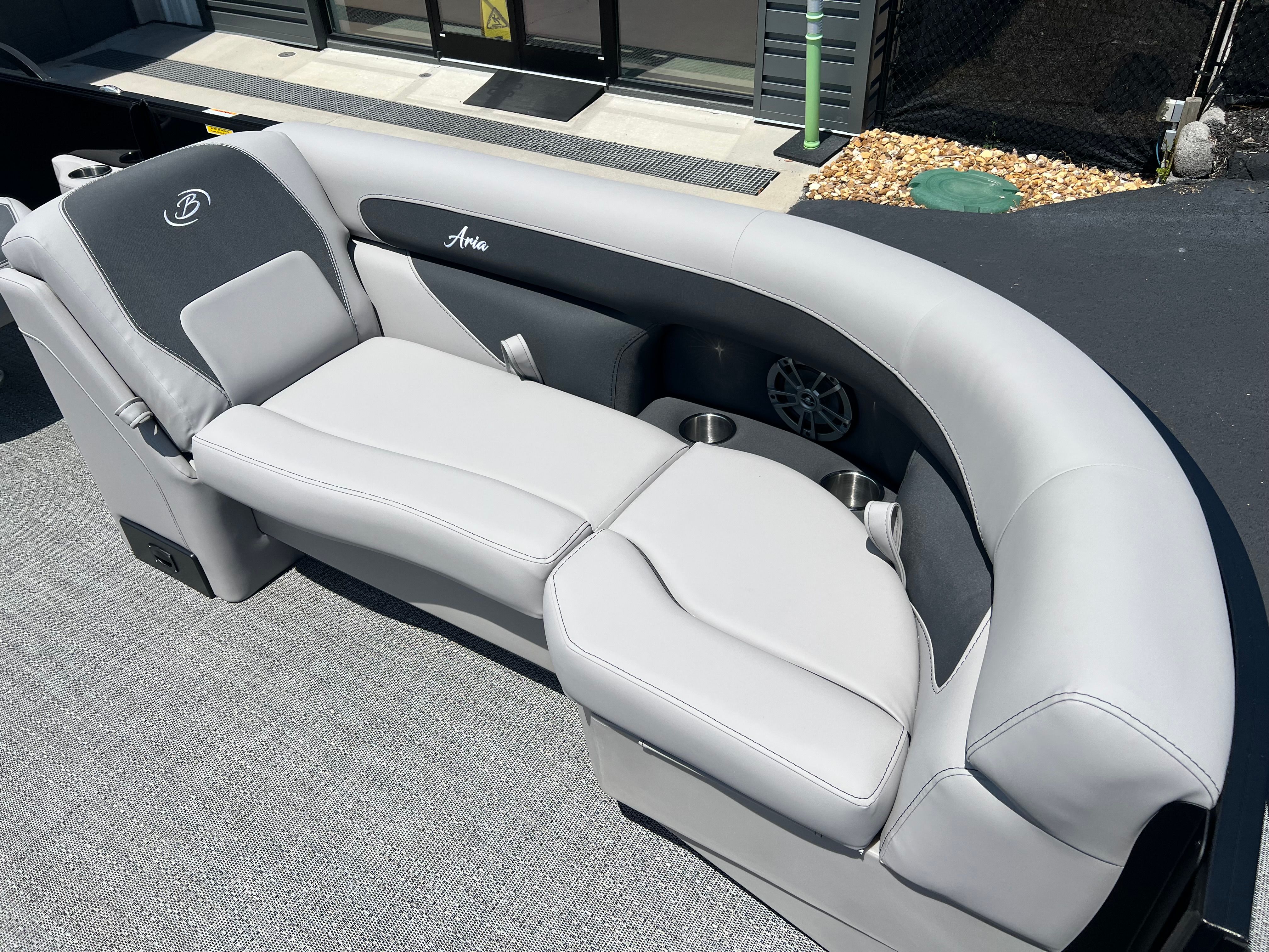 The Barletta Aria A22QC shines in a variety of scenarios, making it a versatile choice for any boater. Imagine gathering your family for a sun-soaked day of swimming, tubing, and picnicking, with plenty of space for everyone to relax and play. Host unforgettable parties with friends, enjoying music, snacks, and laughter as you cruise your favorite waterways. For those who love fishing, the stable platform and ample storage make it easy to bring along all your gear and enjoy a peaceful morning on the lake.This Barletta boat for sale is also perfect for luxury getaways, offering a comfortable and stylish retreat for couples or small groups. The elegant design and premium features create an inviting atmosphere, whether you’re celebrating a special occasion or simply escaping the everyday routine. With its patriotic flag pole and sophisticated Railskin packages, the Aria A22QC is always ready to make a statement, no matter where your adventures take you.