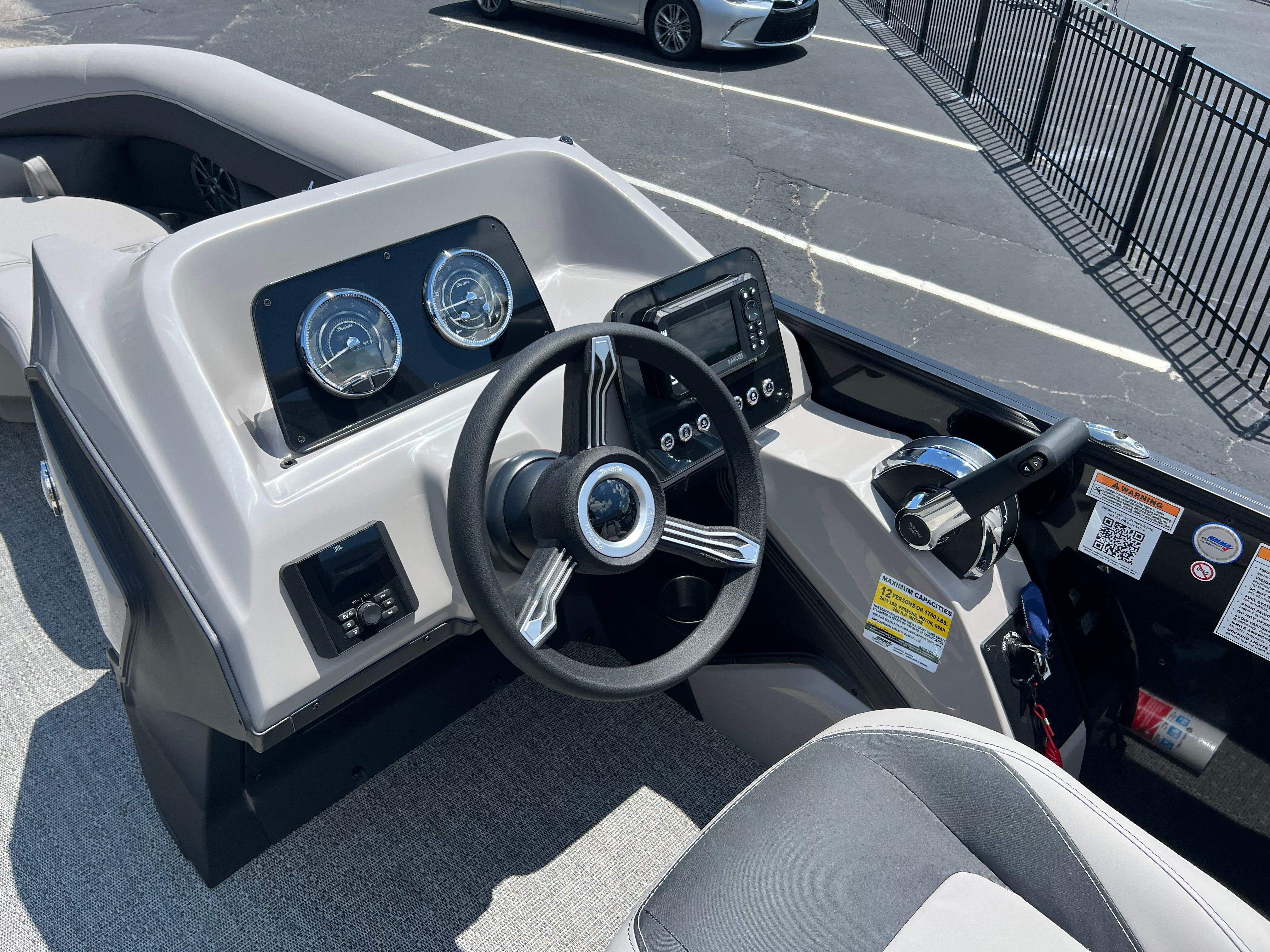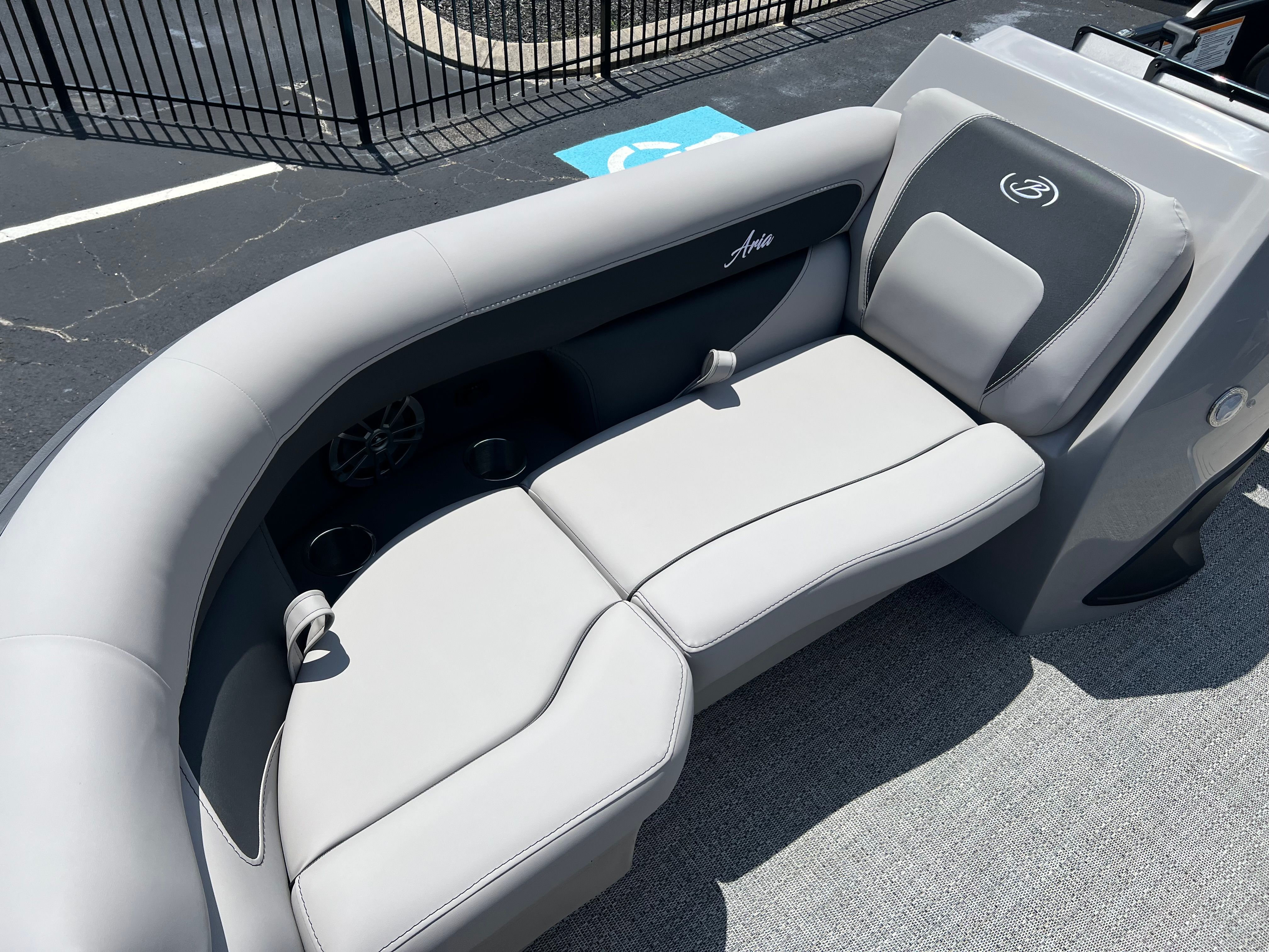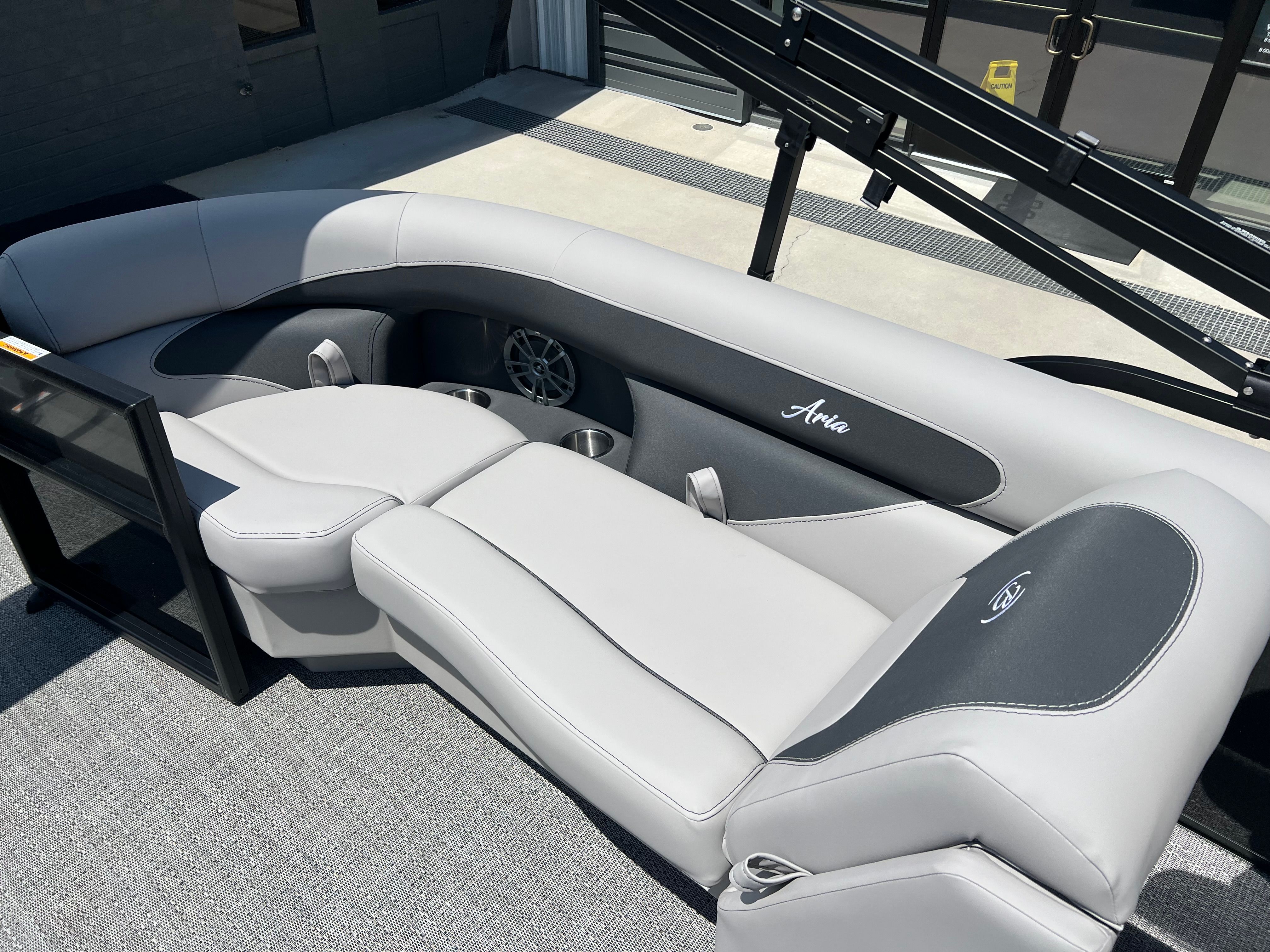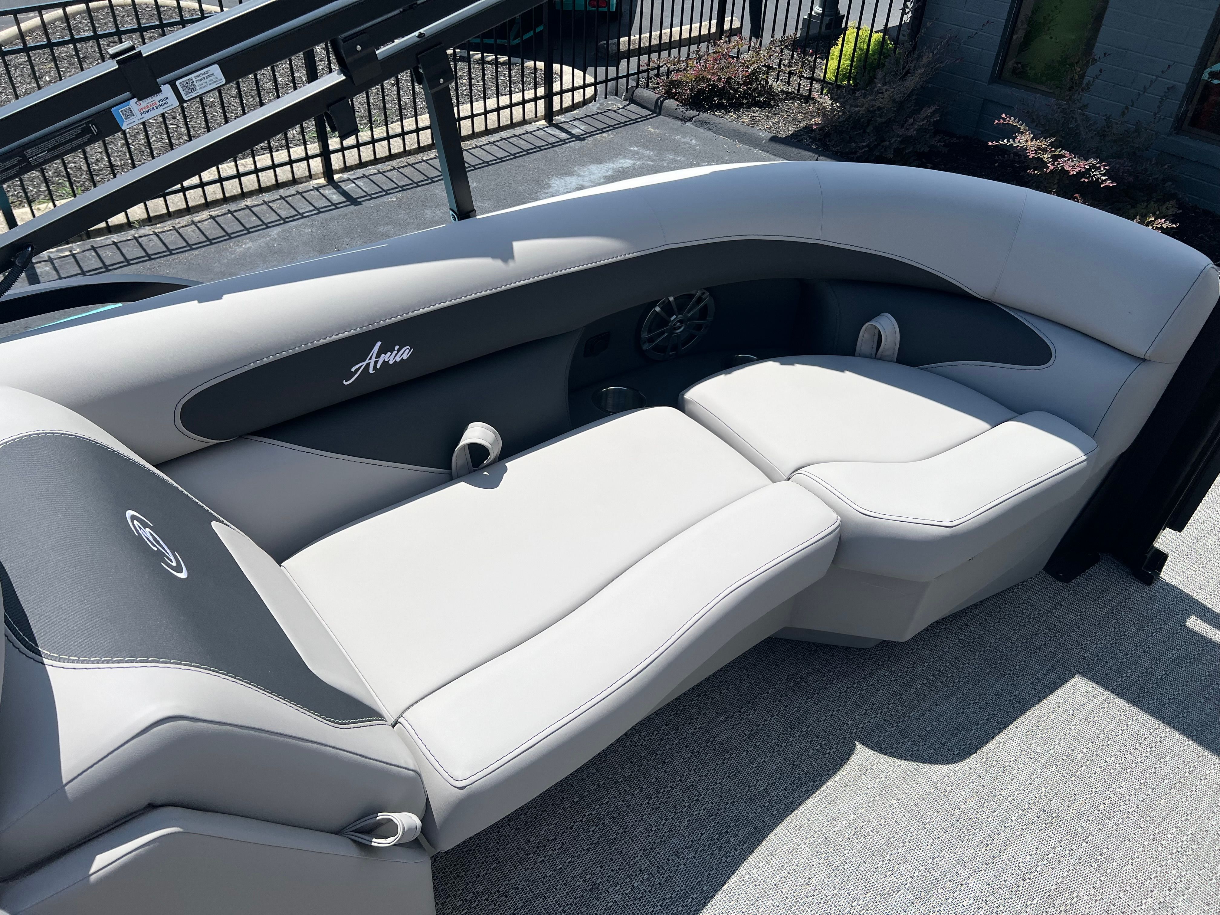The Barletta Aria A22QC Pontoon is as practical as it is luxurious. The in-floor midship storage provides ample room for life jackets, fishing gear, and other essentials, making it easy to keep your boat organized and ready for any activity. The sturdy construction and Triple Toon Package Aria ensure stability when docking, loading, or unloading, while the efficient Mercury engine helps you make the most of your time on the water.This pontoon boat for sale is perfect for those who value convenience and ease of ownership. The intuitive layout and thoughtful features make it simple to prepare for a day out, whether you’re planning a quick afternoon cruise or a full day of fun. The Eagle 5 GPS streamlines navigation, while the stylish Railskin packages require minimal maintenance to keep your boat looking its best.