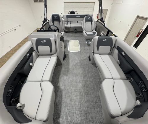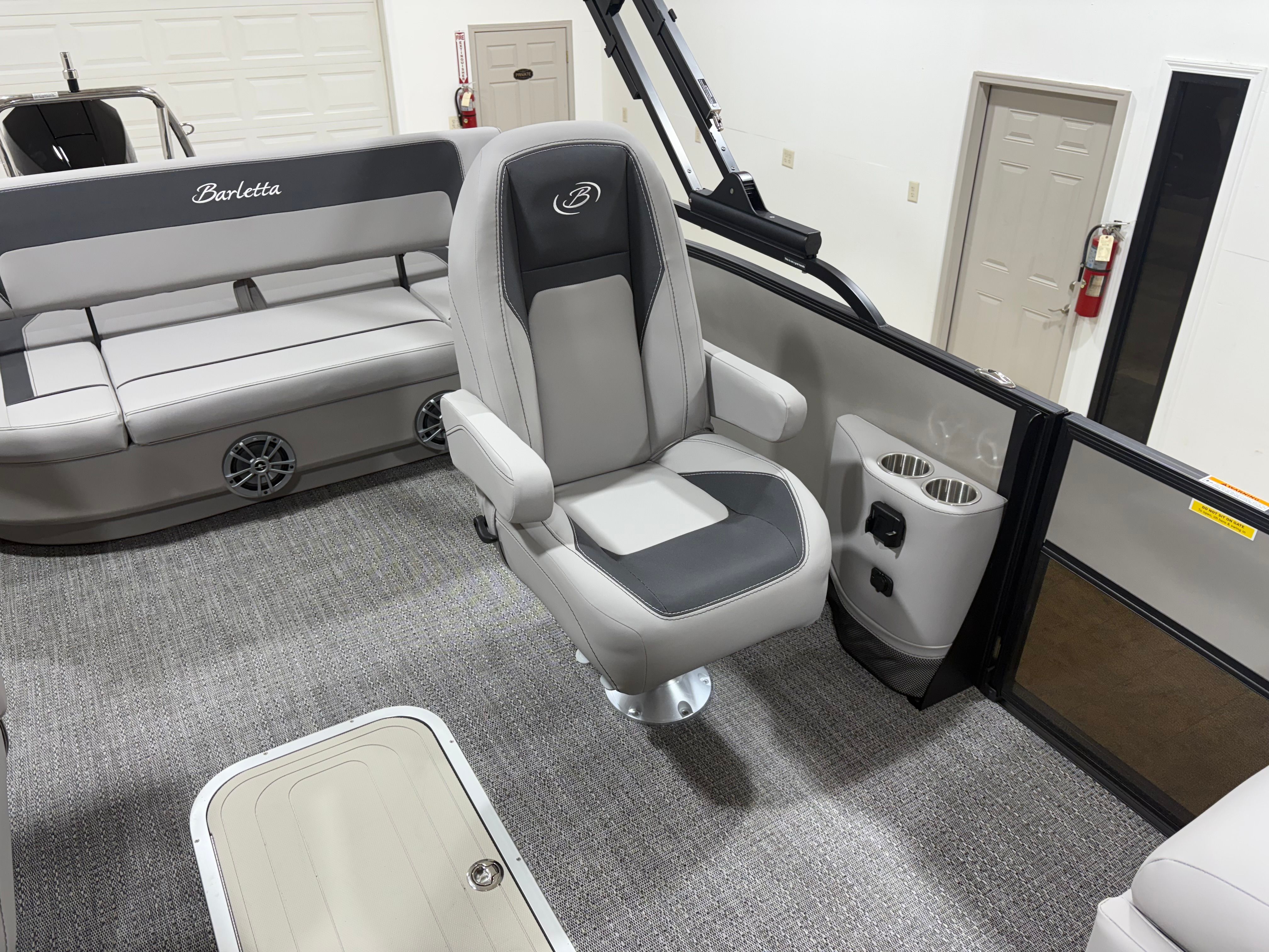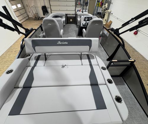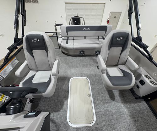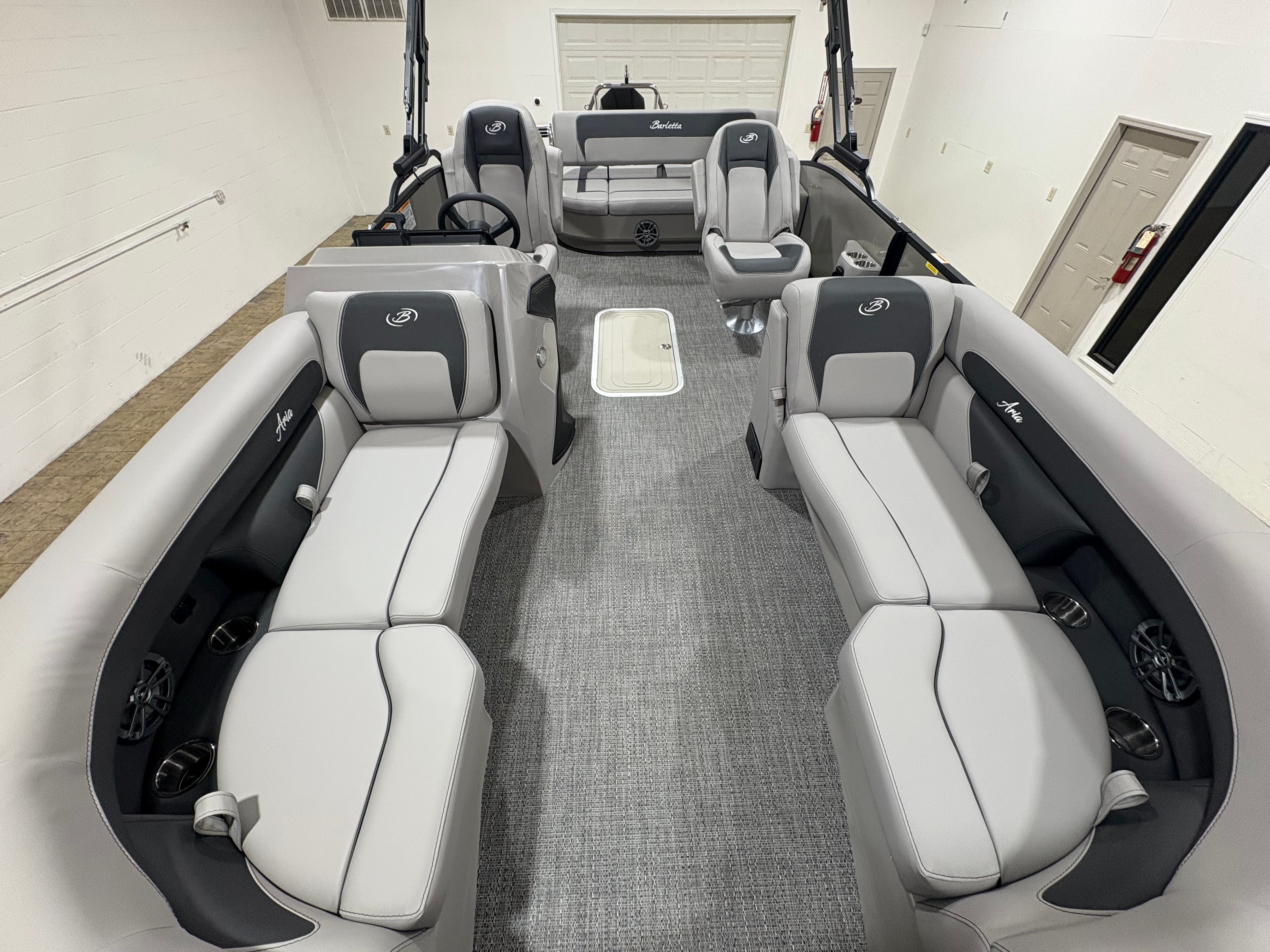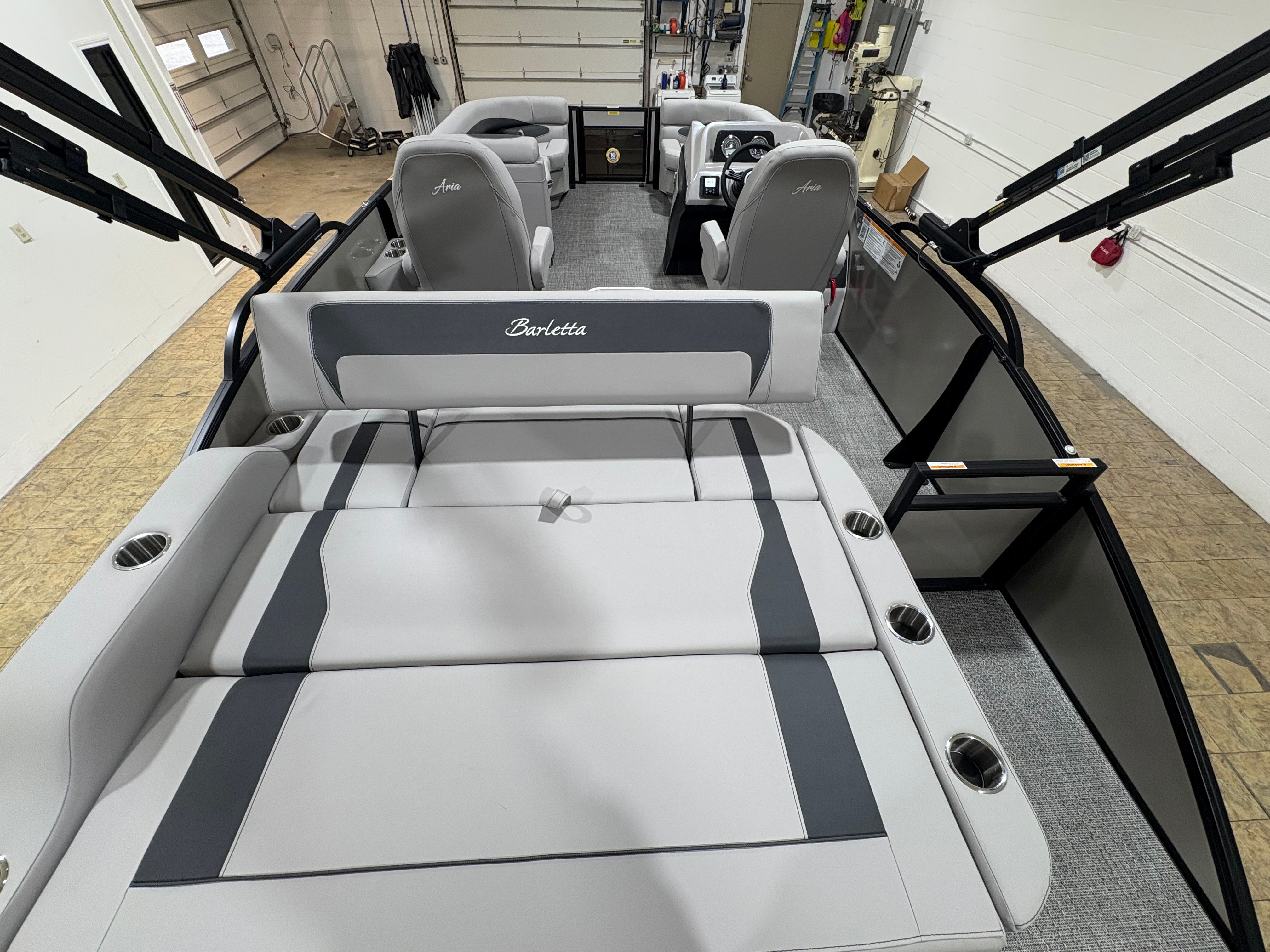 The 2026 Barletta Aria A22UC-Platinum is a brand-new pontoon boat measuring just over 21 feet in length. Its sleek design and premium build quality are immediately apparent, with the Railskin Color Aria in Champagne and the Blackout Package Aria giving it a modern, sophisticated look. The Tempest Gray furniture and Amore Gray flooring create a comfortable and inviting atmosphere, perfect for relaxing or entertaining on the water. With its triple toon package, this Barletta pontoon boat offers enhanced stability and performance, ensuring smooth cruising and a safe, enjoyable ride for everyone on board.