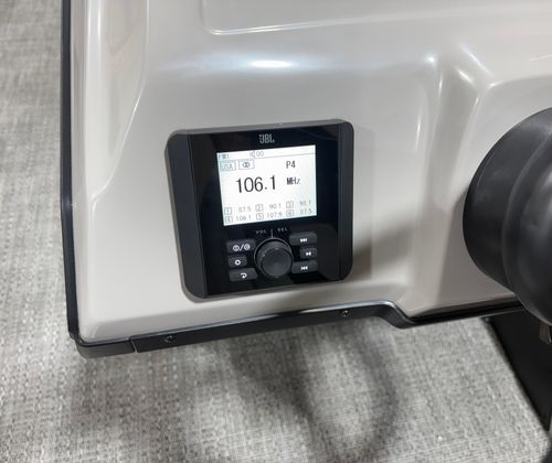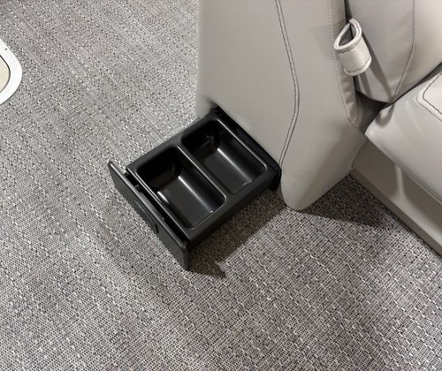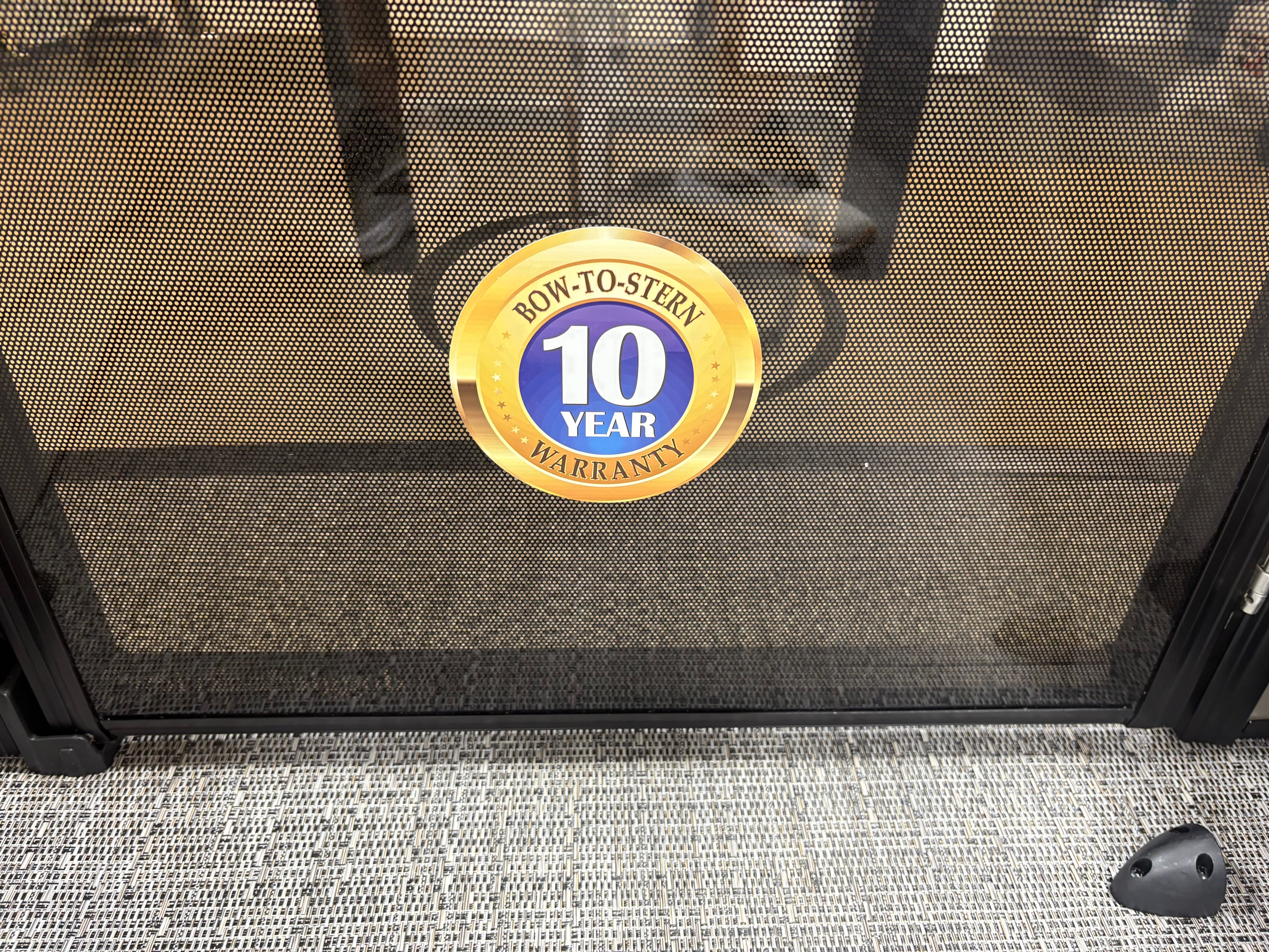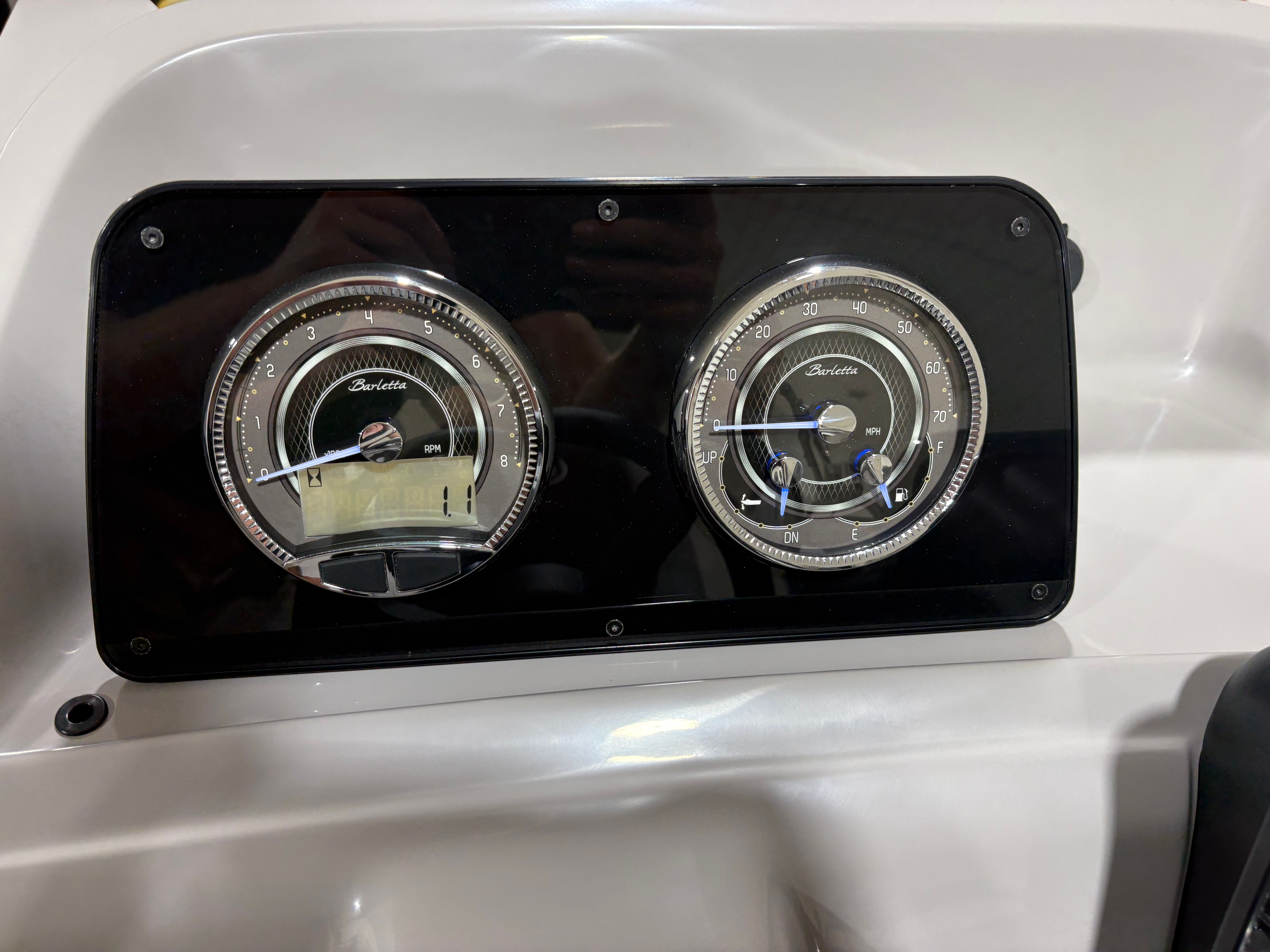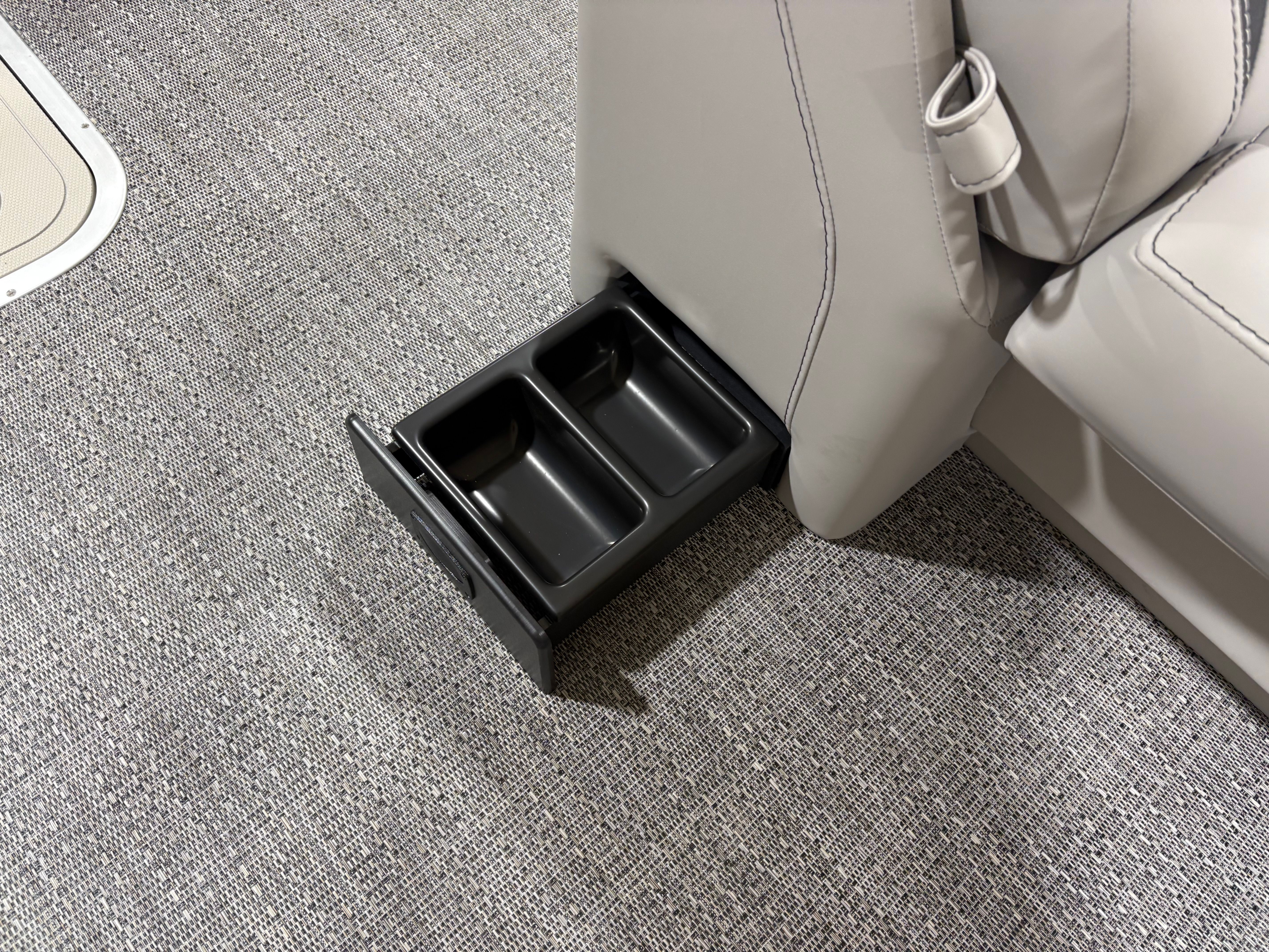 The Barletta Aria A22UC-Platinum is as practical as it is luxurious. Its manageable length makes docking and maneuvering a breeze, whether you’re at a busy marina or a quiet lakeside dock. The fuel-efficient Mercury 200L FourStroke engine helps keep operating costs low, so you can spend more time on the water and less time at the pump. The in-floor midship storage is perfect for stowing life jackets, fishing gear, or picnic supplies, keeping everything you need within easy reach. The sturdy stainless steel flag pole adds a touch of elegance and pride, while the blackout package enhances the boat’s sleek profile and protects against the elements.