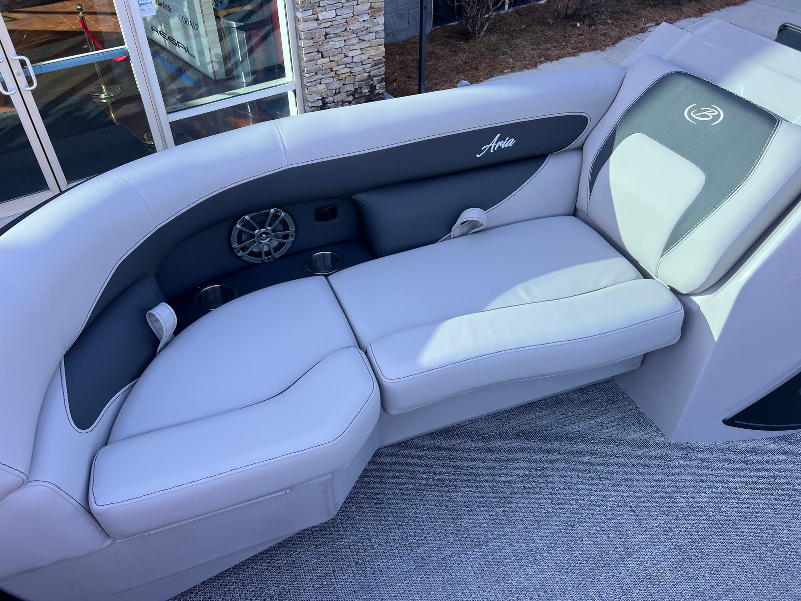 The Barletta Aria A22UC-Platinum is packed with features that elevate your time on the water. The Railskin Color Aria in Blue Sapphire, complemented by the Railskin Accent Aria in Winter White, creates a striking visual appeal that is both modern and timeless. The Blackout Package Aria adds a touch of sophistication, giving the pontoon a bold and distinctive look.Step aboard and you are greeted by Tempest Gray furniture, designed for both comfort and style. The plush seating invites you to relax and unwind, while the Amore Gray flooring provides a soft, slip-resistant surface that is easy to maintain. The Triple Toon Package Aria enhances stability and buoyancy, making this pontoon ideal for a variety of water conditions.A clipped playpen cover with poles offers protection from the elements, ensuring your boat stays in pristine condition when not in use. Every detail, from the railskin accents to the flooring, is thoughtfully chosen to create an inviting and luxurious environment.