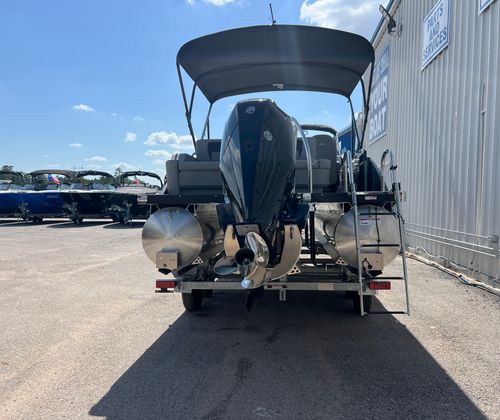 Practicality meets luxury in the Aria A22UC-Platinum. The generous deck space allows for easy movement and storage of gear, coolers, and water toys. Docking is a breeze thanks to the responsive Mercury engine and the sturdy triple toon design, which provides excellent maneuverability and stability. The fuel-efficient FourStroke engine means you can spend more time on the water and less time at the pump, maximizing your enjoyment and minimizing your operating costs.The double bimini canvas offers flexible shade options, so you can adapt to changing weather conditions and keep everyone comfortable. The durable flooring and high-quality furniture are built to withstand the rigors of regular use, ensuring your pontoon boat remains in top condition for years to come. Whether you’re planning a day of fishing, swimming, or simply relaxing with loved ones, this Barletta boat for sale is equipped to handle it all with ease.