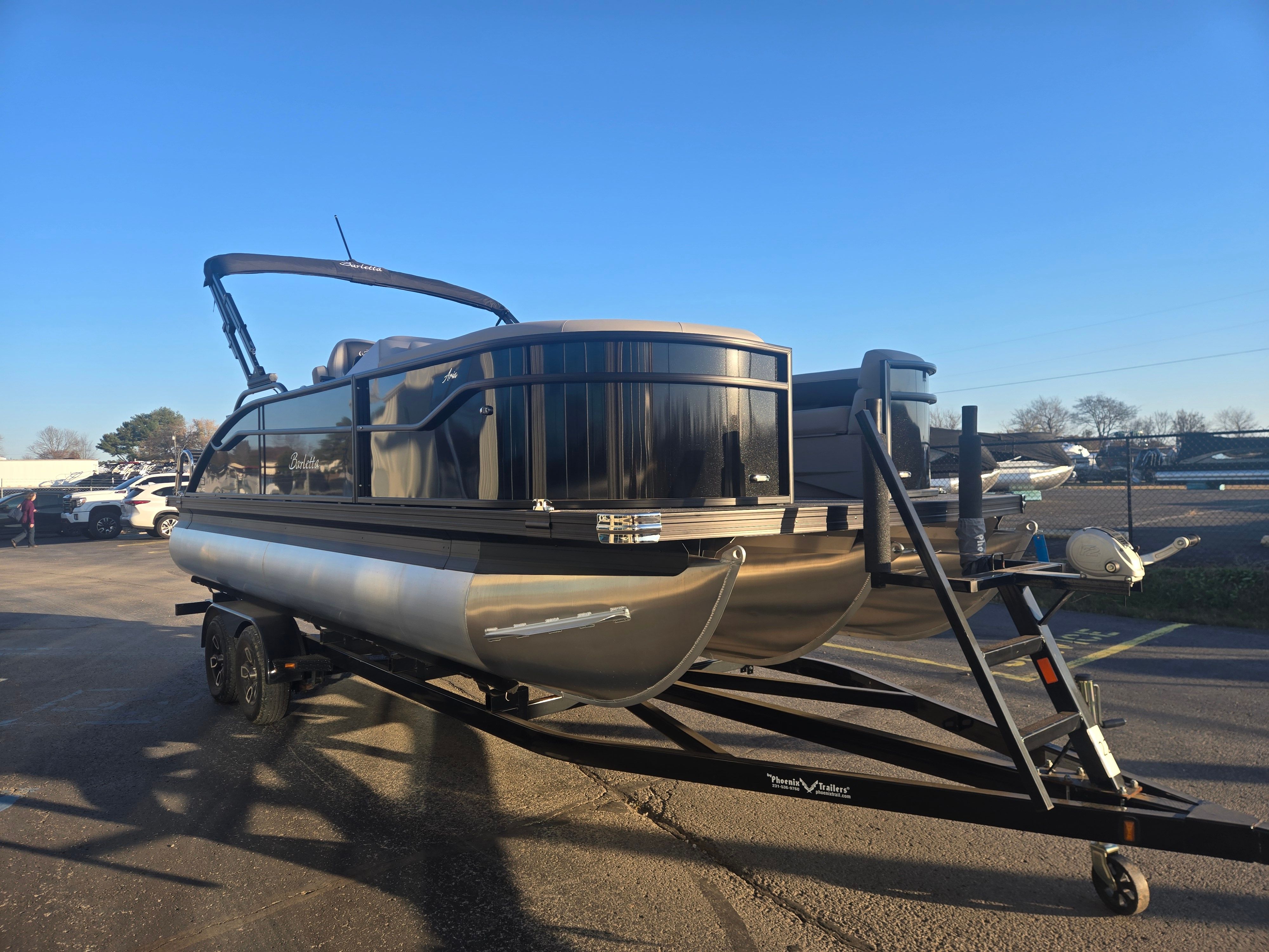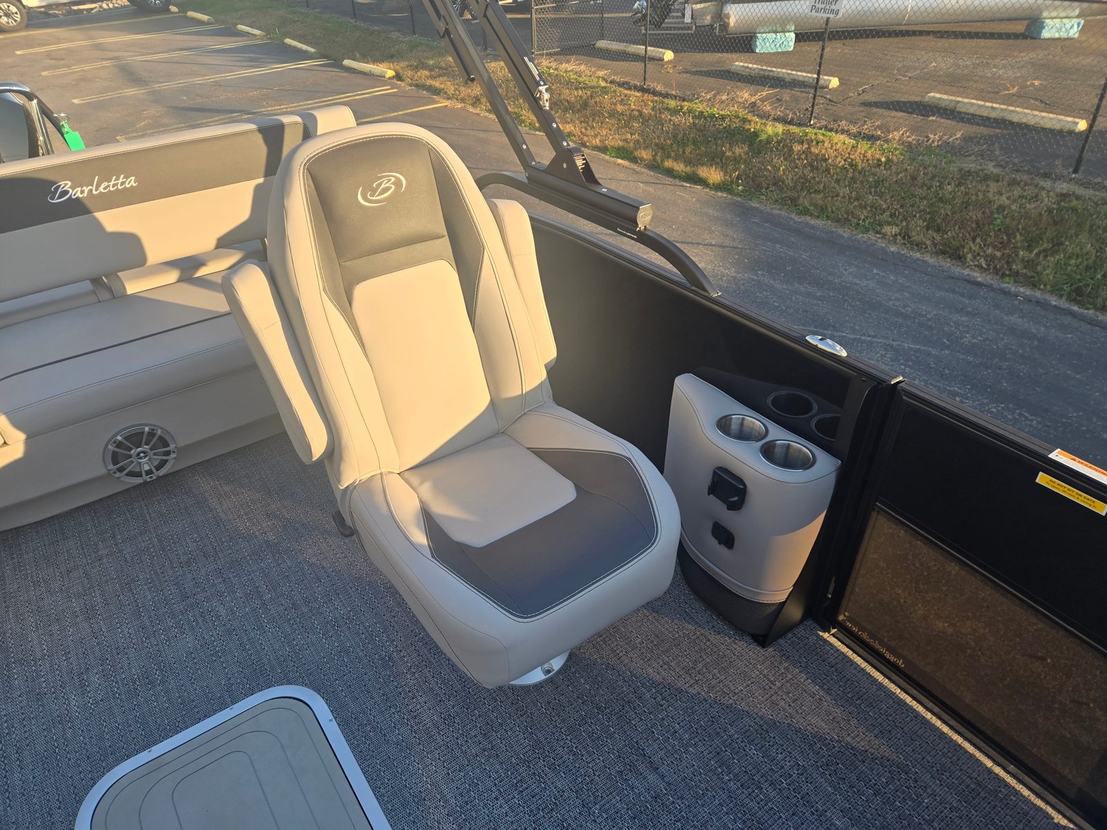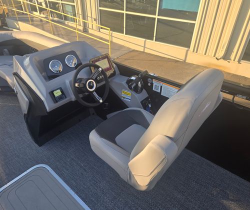 The 2026 Barletta Aria A22UC-Platinum is loaded with special features that set it apart from other pontoon boats for sale. The Railskin Color Aria in Black Diamond, paired with the Blackout Package Aria, creates a sleek, modern aesthetic that turns heads at every dock. Inside, the Tempest Gray furniture offers plush seating and a sophisticated look, while the Amore Gray flooring provides both comfort and durability underfoot. The Triple Toon Package Aria enhances stability and performance, ensuring a smooth ride even in choppy conditions.For added convenience, the onboard battery charger keeps your single battery powered up and ready for every adventure. The stainless steel flag pole with an American flag adds a patriotic touch, making this Barletta boat for sale a true standout on the water.