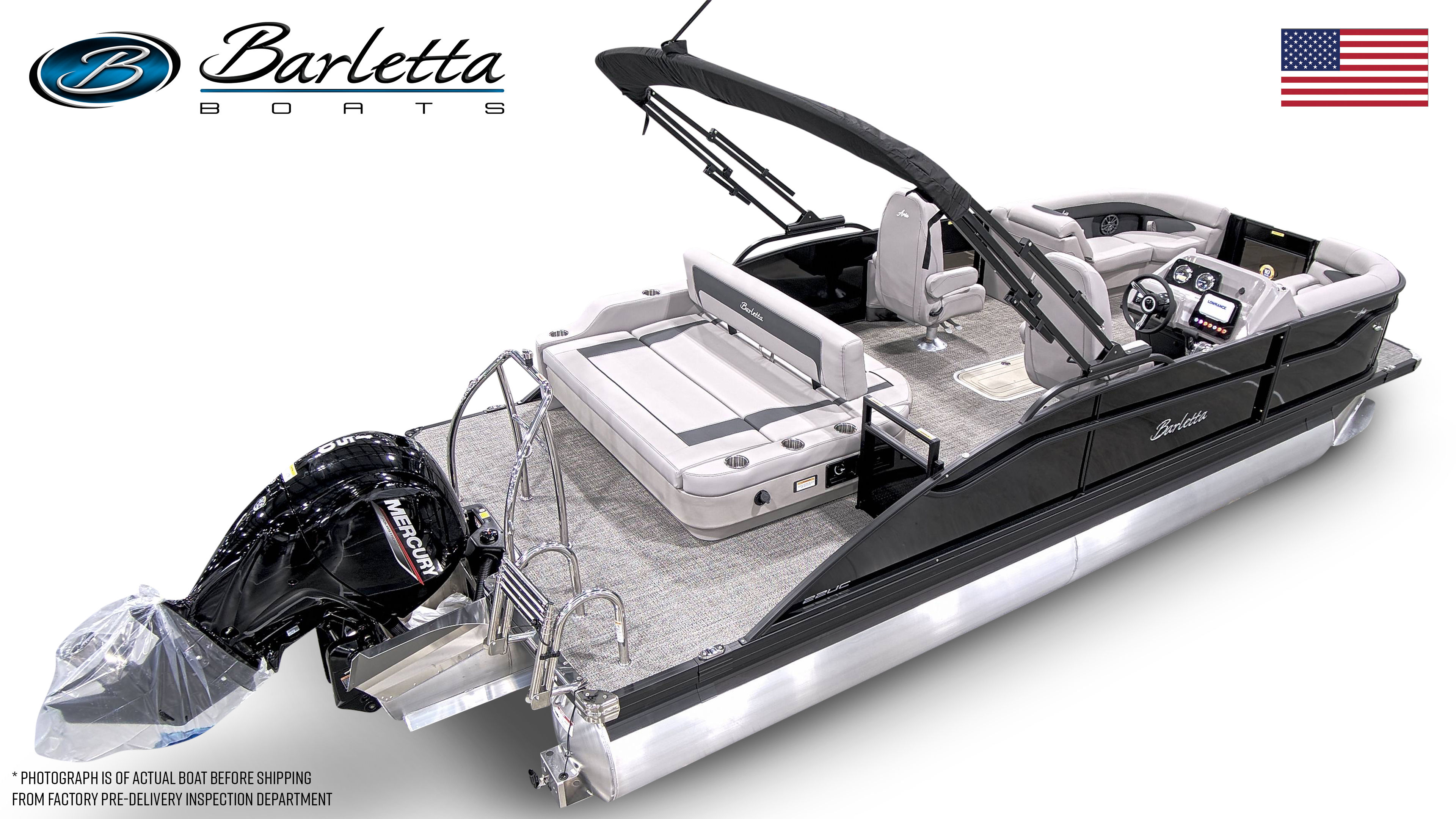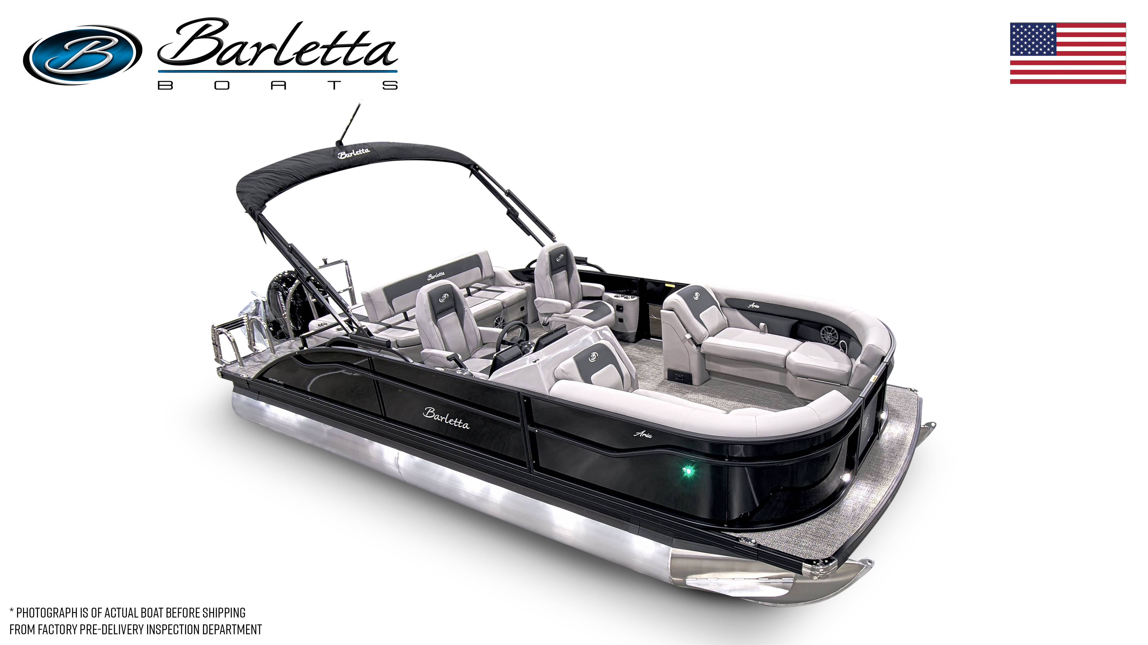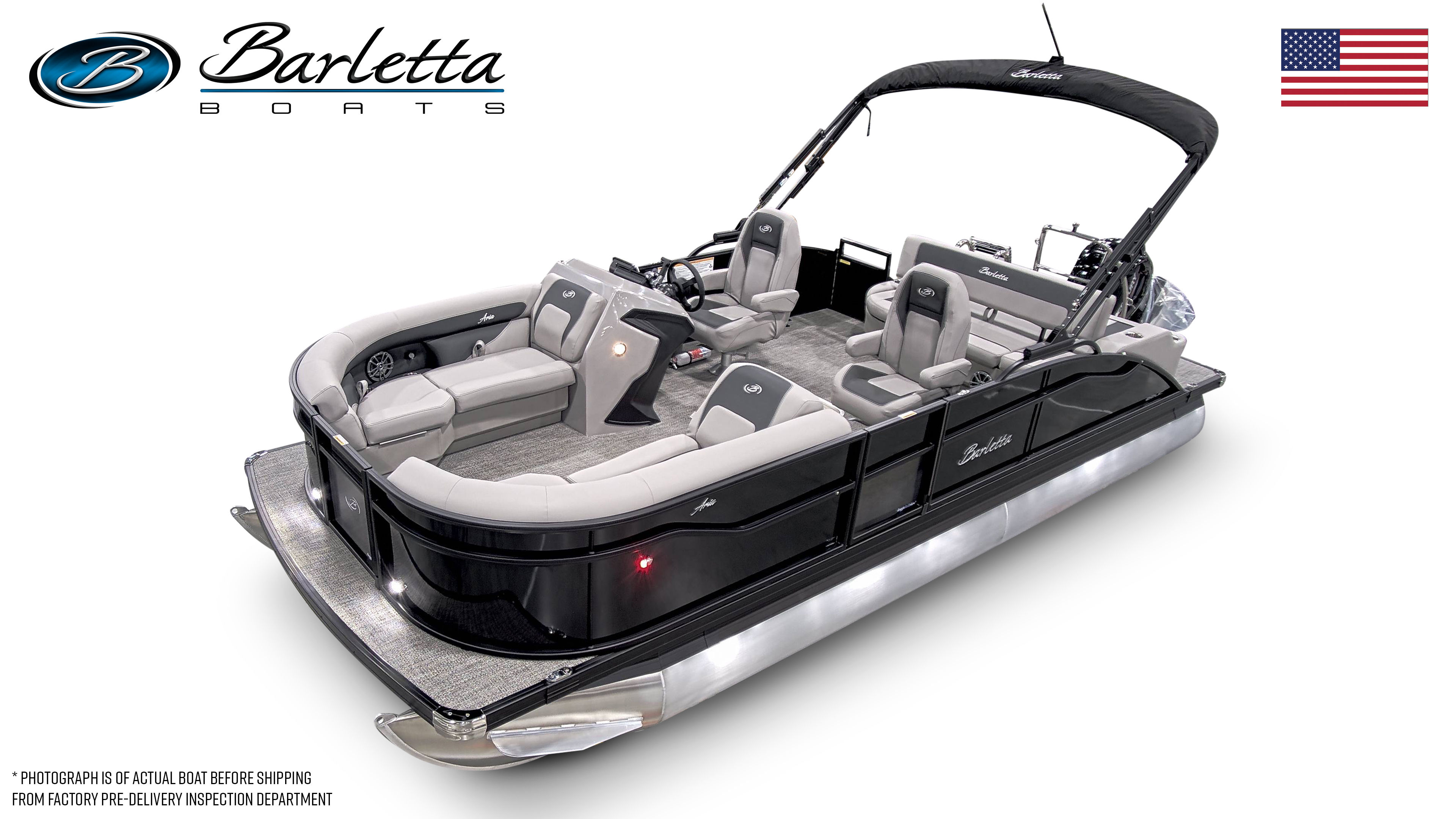 The 2026 Barletta Aria A22UC comes loaded with special features designed to enhance your time on the water. The striking Black Diamond Railskin and Blackout Package Aria give the exterior a bold, modern look that is sure to turn heads at the marina. Inside, the Tempest Gray furniture provides plush seating and a contemporary aesthetic, while the Amore Gray flooring offers both style and durability underfoot.The Triple Toon Package Aria adds an extra level of stability and buoyancy, making this pontoon boat perfect for larger groups and active days on the water. The onboard battery charger for the single battery ensures you are always ready to go, while the stainless steel flag pole with an American flag adds a patriotic touch to your boating experience. Every detail of the Barletta Aria A22UC is crafted with quality and convenience in mind, making it a top choice for those seeking a new pontoon boat for sale.