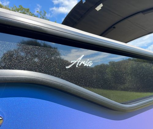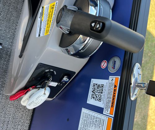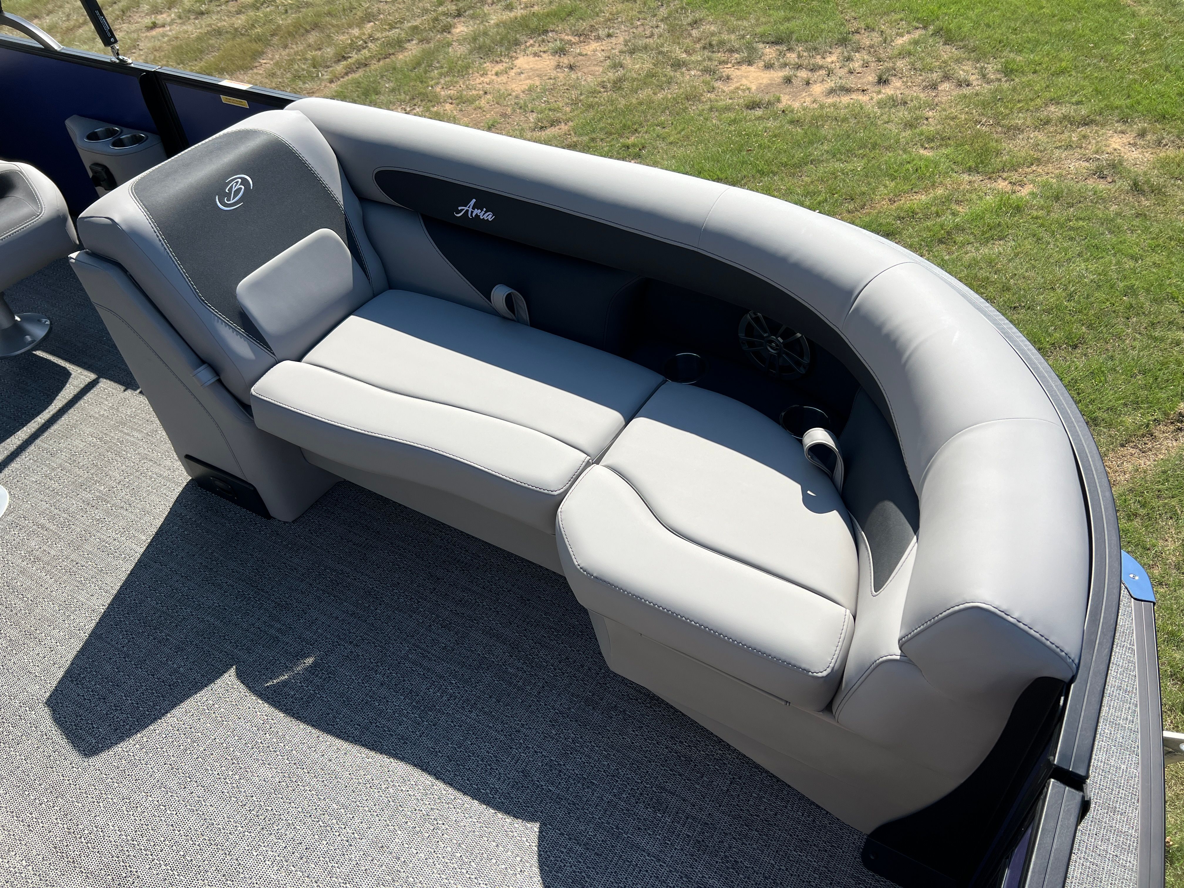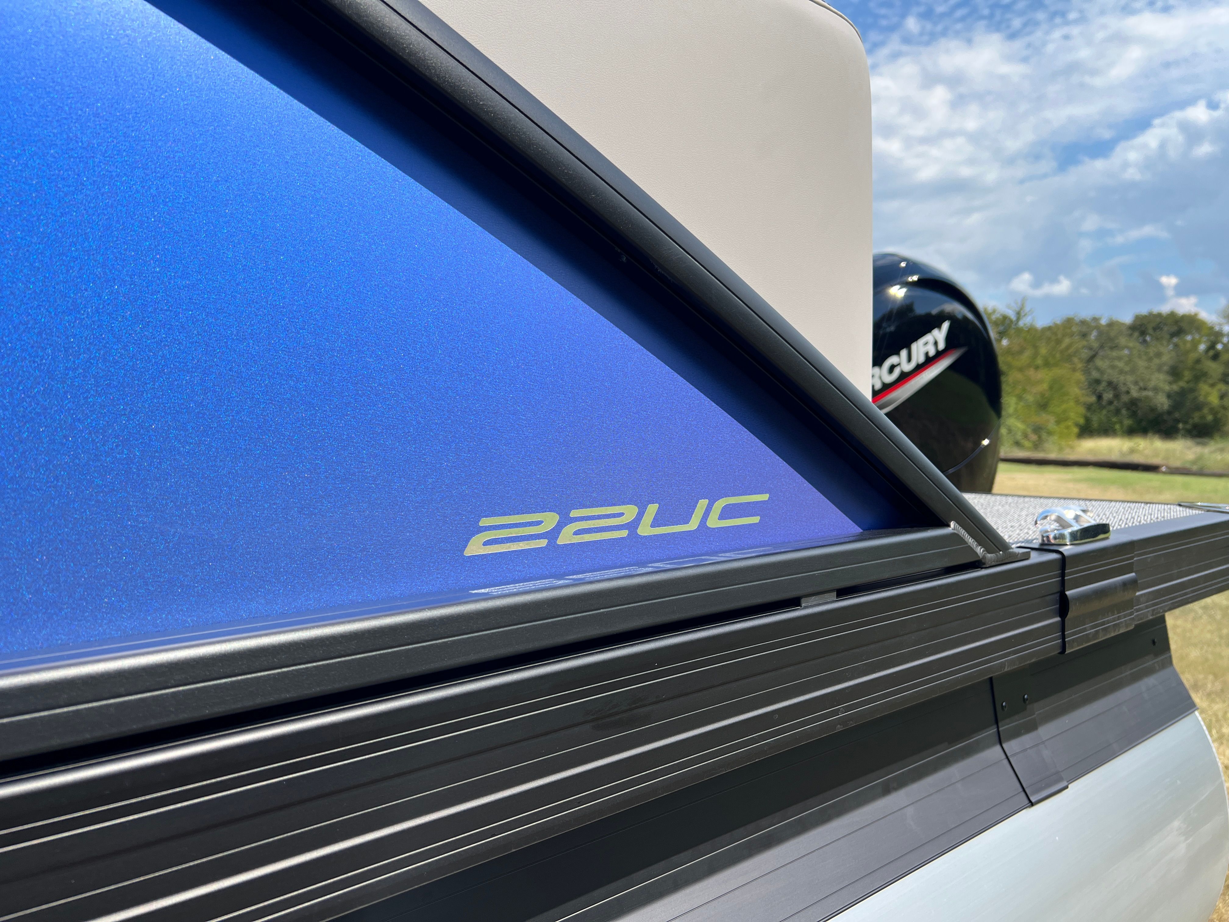 The Barletta Aria A22UC is packed with features designed to elevate your boating experience. The Pacific Matte Blue Railskin, complemented by Black Diamond accents and the Blackout Package Aria, creates a striking visual impression. Inside, the Tempest Gray furniture offers a plush, inviting atmosphere, while the Amore Gray flooring is both stylish and easy to maintain. The Triple Toon Package Aria enhances buoyancy and stability, making this pontoon perfect for larger groups or those who want extra peace of mind on the water. The Mercury 150L Four Stroke engine, paired with a stainless steel prop, ensures reliable performance and longevity. A stainless steel flag pole with an American flag adds a patriotic touch, making this boat a true standout.