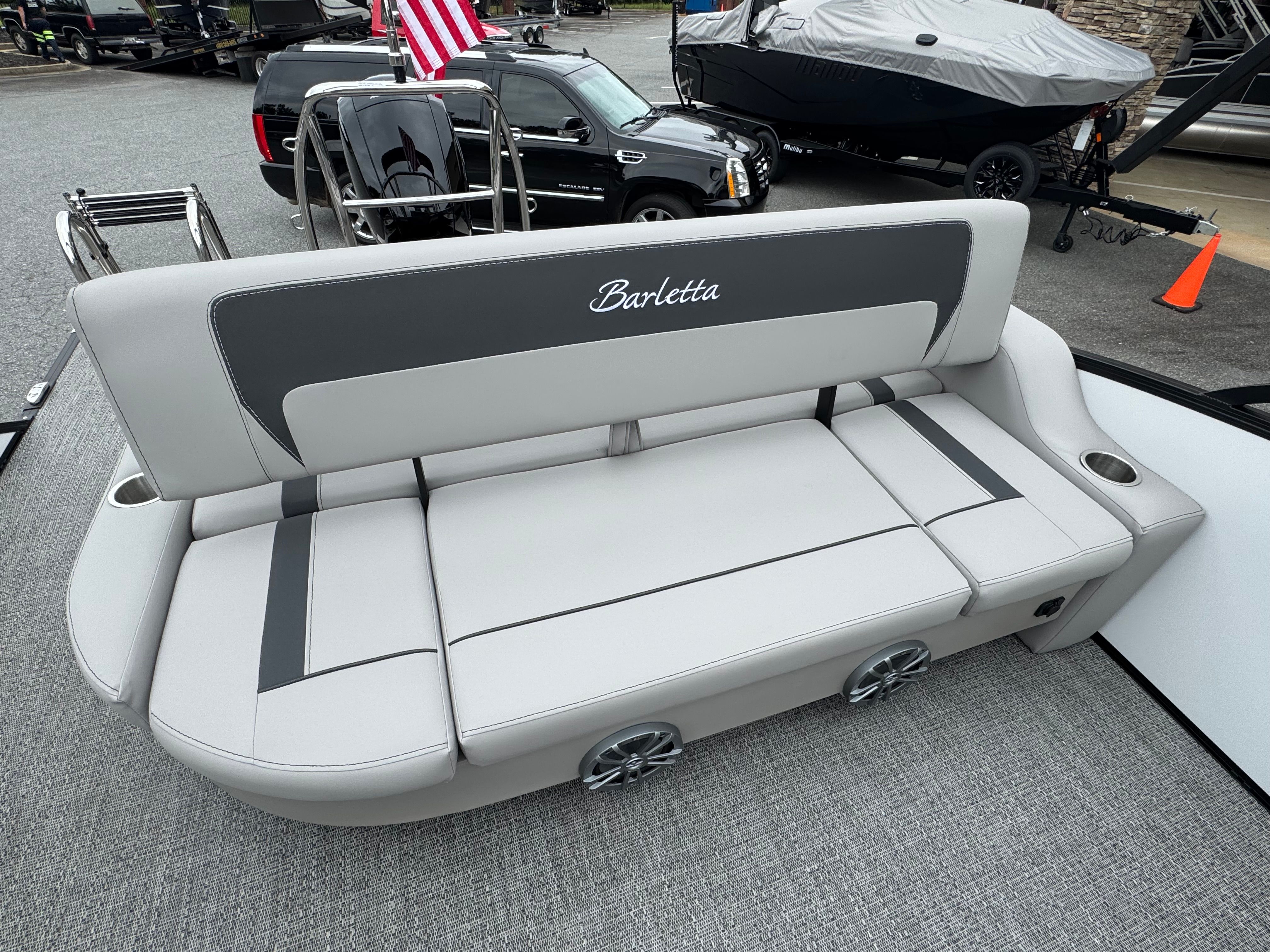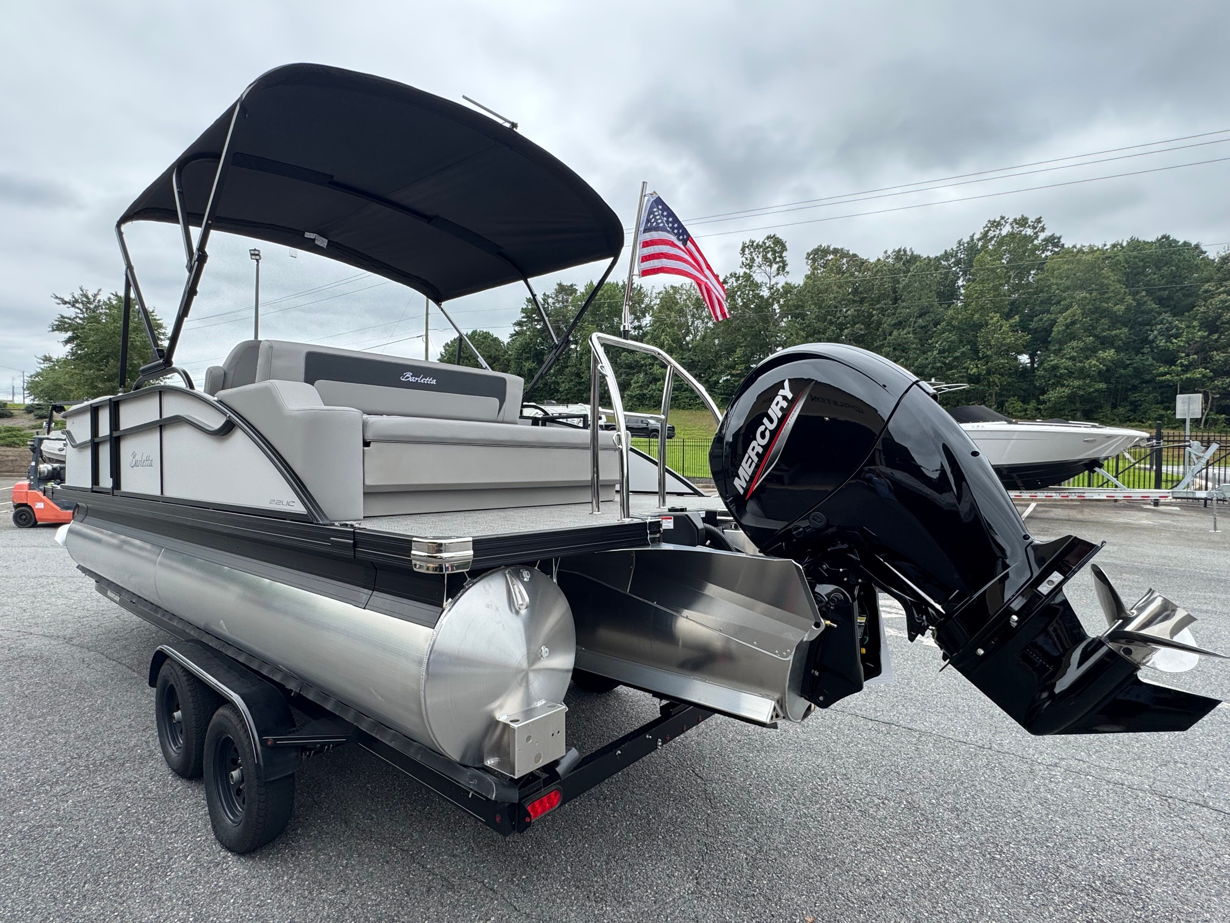 The Barletta Aria A22UC is packed with premium features designed to enhance your time on the water. The Triple Toon Package Aria ensures superior stability and buoyancy, allowing for a smoother ride even when the water gets choppy. The in-floor midship storage offers ample space to stow away gear, water toys, and personal items, keeping the deck clutter-free and organized.Step aboard and you will immediately notice the luxurious Tempest Gray furniture, which provides both comfort and style for you and your guests. The flooring, finished in Amore Gray, is not only visually appealing but also durable and easy to maintain. The Blackout Package Aria and Winter White railskin color create a sophisticated and modern look that is sure to turn heads at the marina.For those who appreciate attention to detail, the stainless steel flag pole with an American flag adds a patriotic touch, while the pre-rig Mercury mechanical setup ensures seamless integration with the powerful Mercury engine. Every feature has been thoughtfully selected to maximize comfort, convenience, and enjoyment.