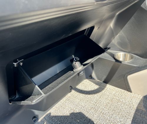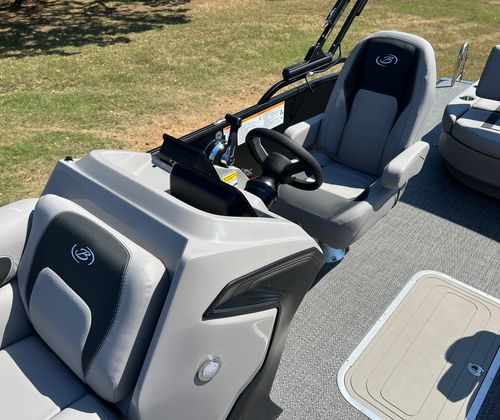 The 2026 Barletta Aria A22UC is loaded with features that set it apart from other pontoon boats for sale. The Railskin Color Aria in Matte Black, complemented by the Blackout Package Aria, gives this pontoon a striking and contemporary appearance that is sure to turn heads at the dock. The Tempest Gray furniture provides a sophisticated and inviting atmosphere, while the Amore Gray flooring is both stylish and easy to maintain. The in-floor midship storage offers a convenient solution for stowing away gear, water toys, and personal items, keeping the deck clutter-free and organized. A stainless steel flag pole with an American flag adds a patriotic touch, perfect for celebrating holidays or simply showing your pride on the water.