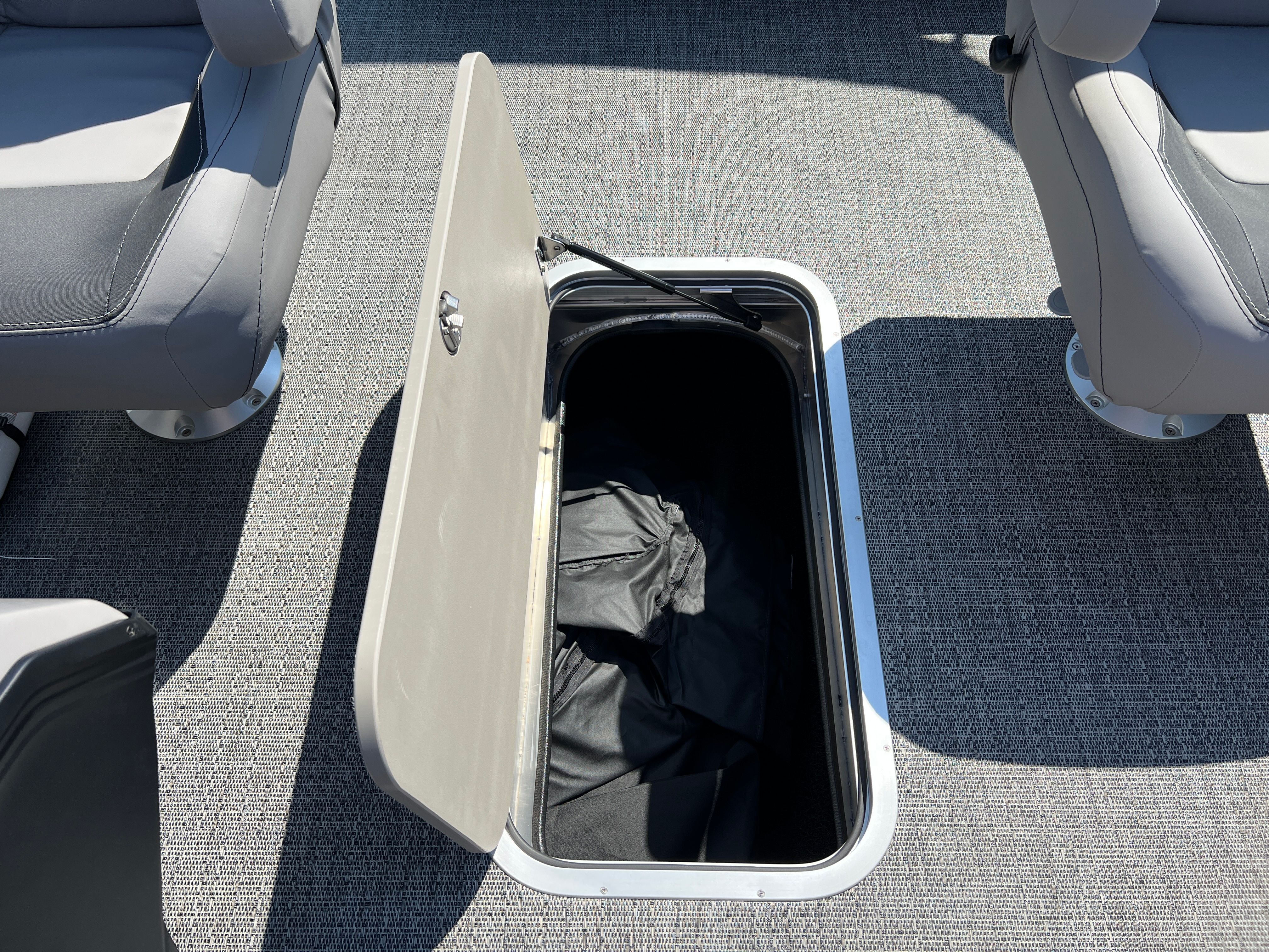 The Barletta Aria A22UC is designed with practicality in mind, making every aspect of ownership enjoyable and stress-free. The in-floor midship storage is perfect for keeping your essentials organized and out of the way, whether you are storing life jackets, fishing gear, or picnic supplies. The sturdy construction and thoughtful design make docking and maneuvering a breeze, even for less experienced boaters. The efficient Mercury engine ensures you spend more time on the water and less time at the fuel dock, while the easy-to-clean flooring and durable upholstery mean your pontoon will look great season after season. The stainless steel flag pole with American flag adds a touch of elegance and pride, making every outing feel special.