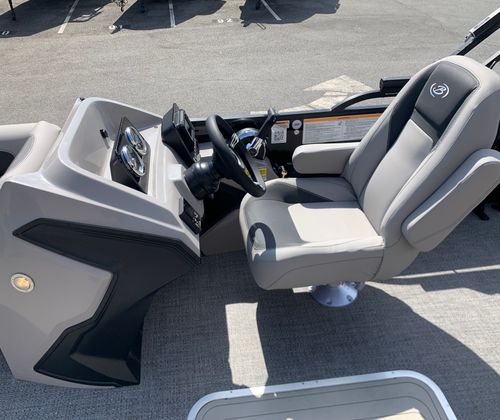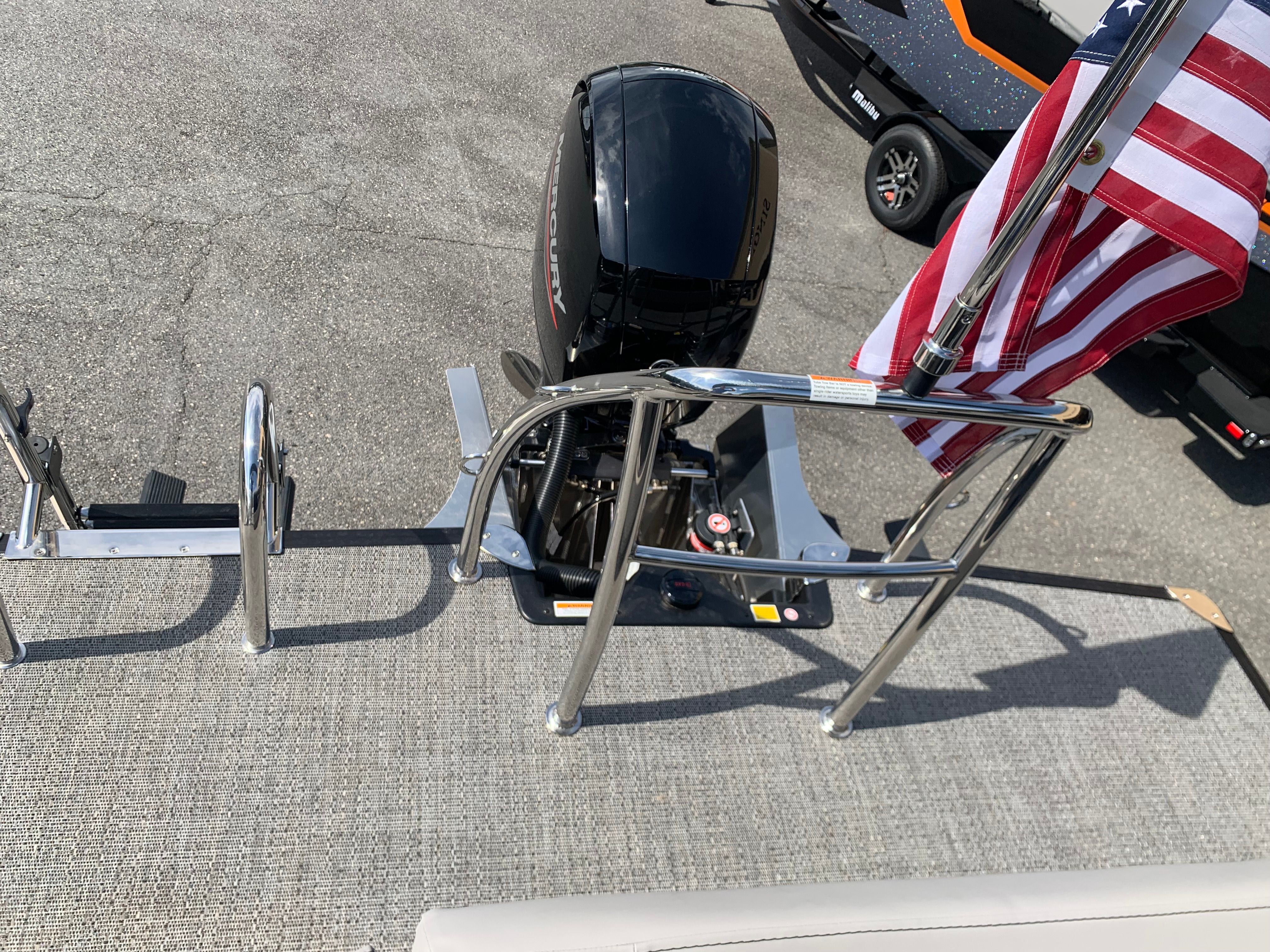 The Barletta Aria A22UC comes loaded with special features that set it apart from other pontoon boats for sale. The Railskin Color Aria in Black Diamond and the Railskin Accent Aria in Gray Moonstone create a striking visual appeal, while the Blackout Package Aria adds a touch of sophistication and modern flair. The Tempest Gray furniture offers plush seating and a contemporary look, complemented by the Amore Gray flooring that’s both stylish and easy to maintain.For those who appreciate attention to detail, the rigging includes a Rig Engine with Stainless Steel Prop, ensuring optimal performance and durability. The Pre-Rig: Mercury - Mechanical setup streamlines the engine installation for hassle-free operation. On the exterior, the Stainless Steel Flag Pole with an American Flag adds a patriotic touch and a sense of pride to your boating experience.